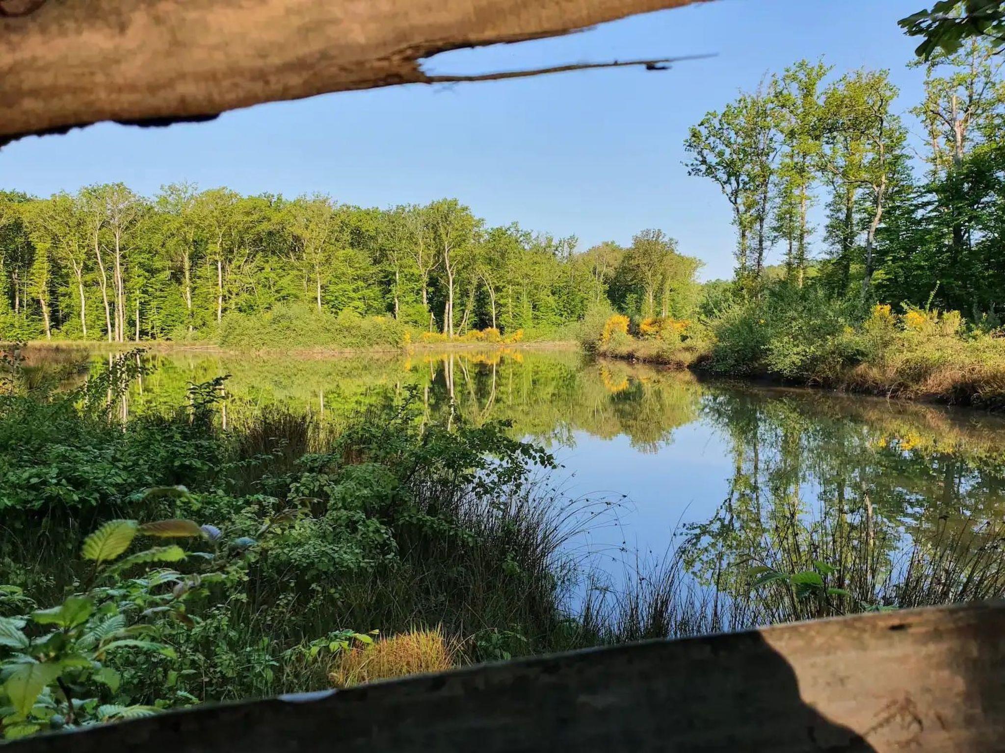 La maison est située dans un environnement très naturel et calme. Le jardin arboré et clôturé s'opens onto the pastures, with cows in the summer in front of the house. A pretty water lily pond adorns the garden. You can enjoy your meals on the terrace with its pleasant view of the surrounding countryside, cook with the aromatic plants in the garden, sunbathe after a walk in the woods, or relax on the hammock.