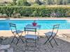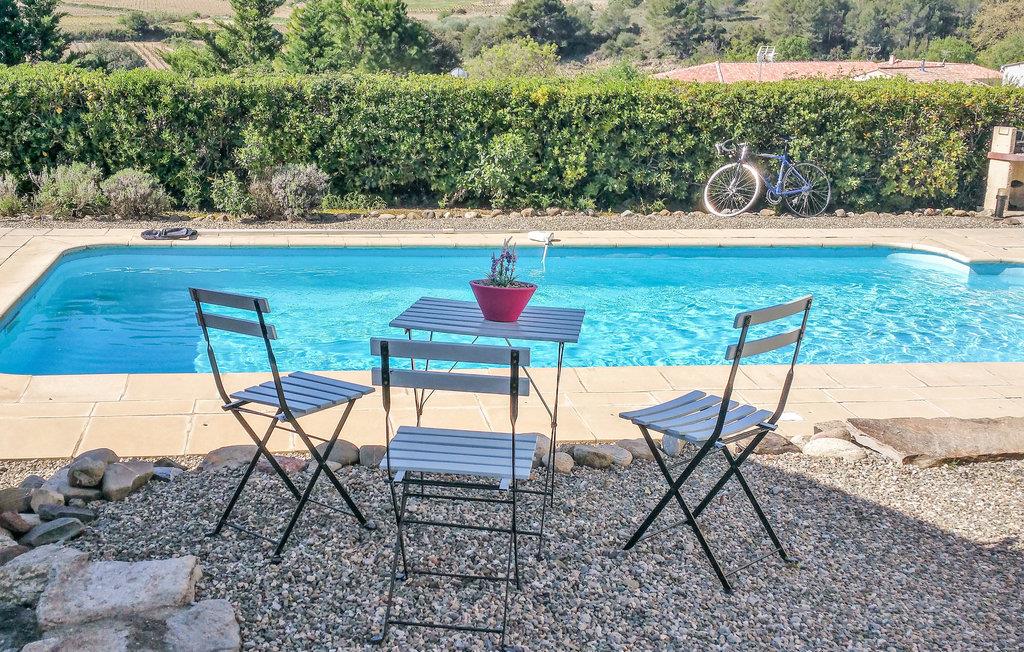 Poolen ligger lidt lavere end huset og en romersk trappe fører ned i vandet. Tæt ved poolen ligger der en lille overdækket terrasse, hvor I kan nyde et glas frugtsaft eller et glas Chinian-vin, som er lokale produkter.