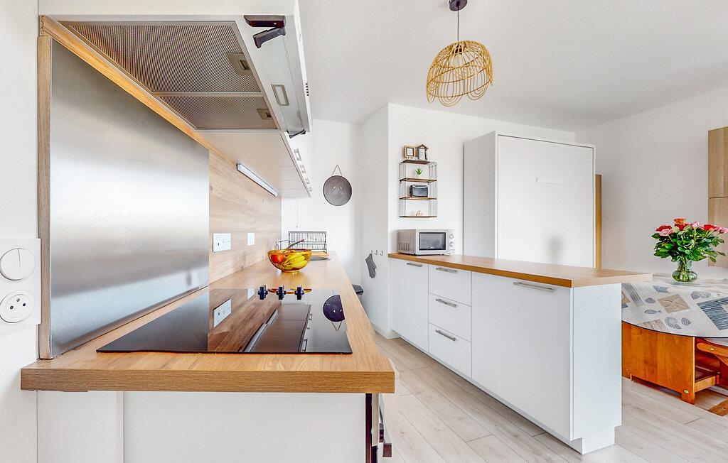 Den moderne bolig giver jer en stilfuld, hyggelig atmosfære, mens altanen byder på en vidunderlig udsigt over klitterne. Nyd direkte adgang til diget og fyld lungerne med den friske havluft. Den lyse, moderne etværelseslejlighed er ideel til afslappende dage ved havet, og den gennemtænkte indretning vil straks få jer til at føle jer hjemme. Her kan I se frem til høj komfort og havudsigt.