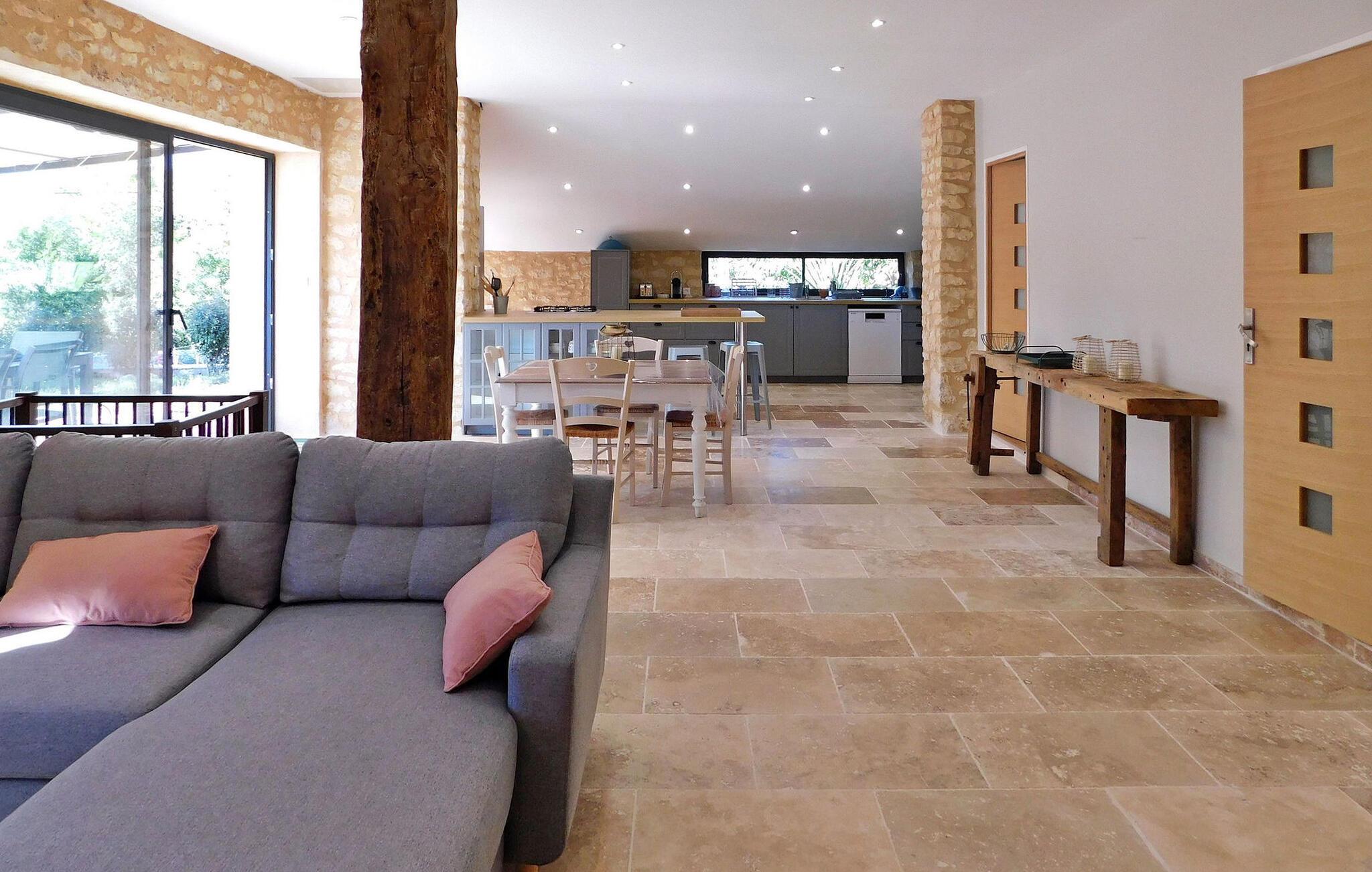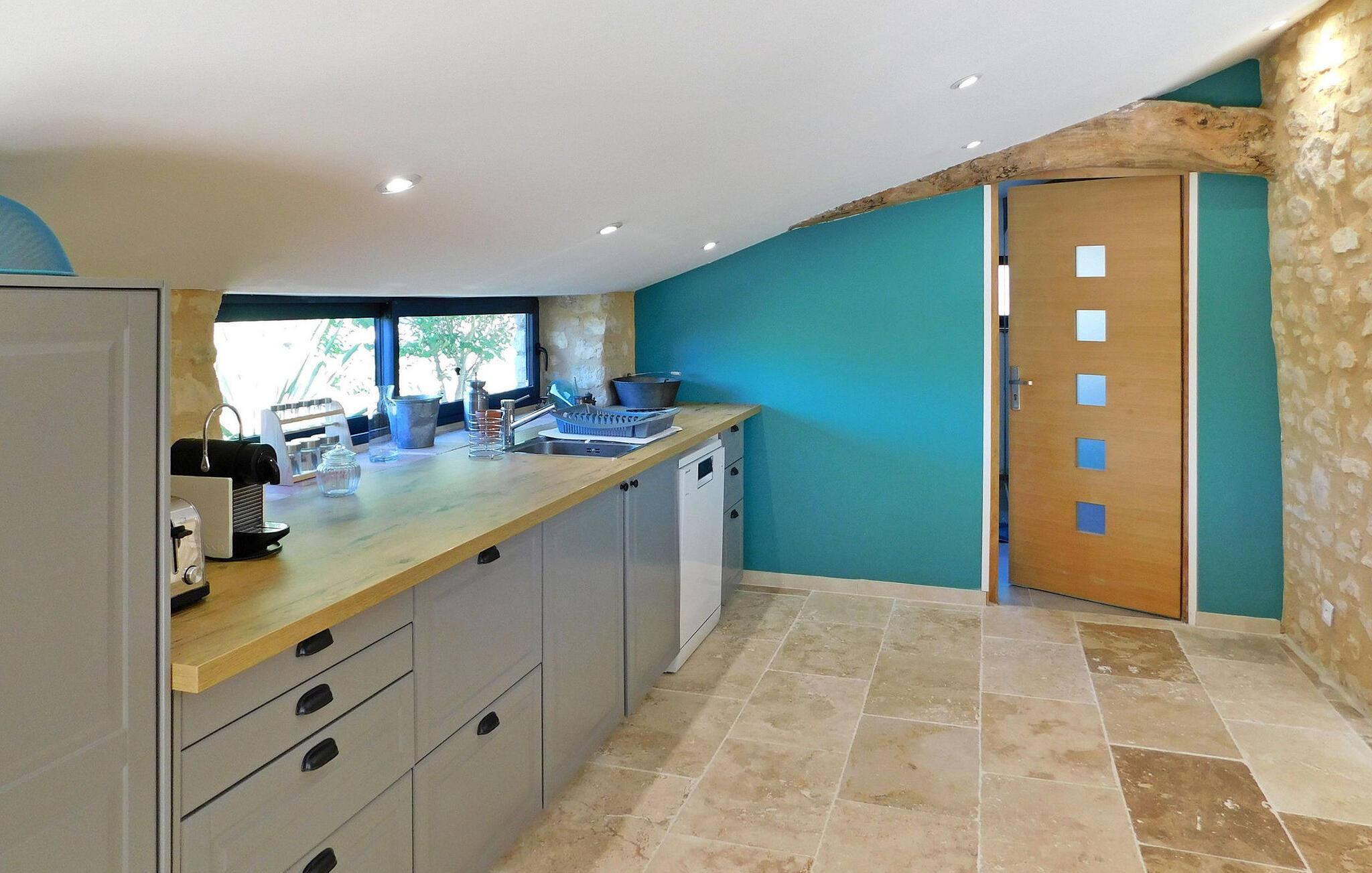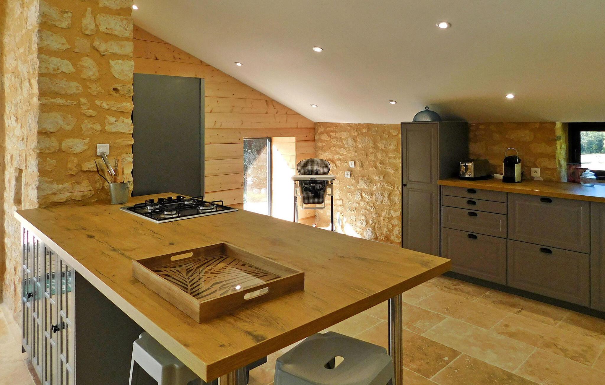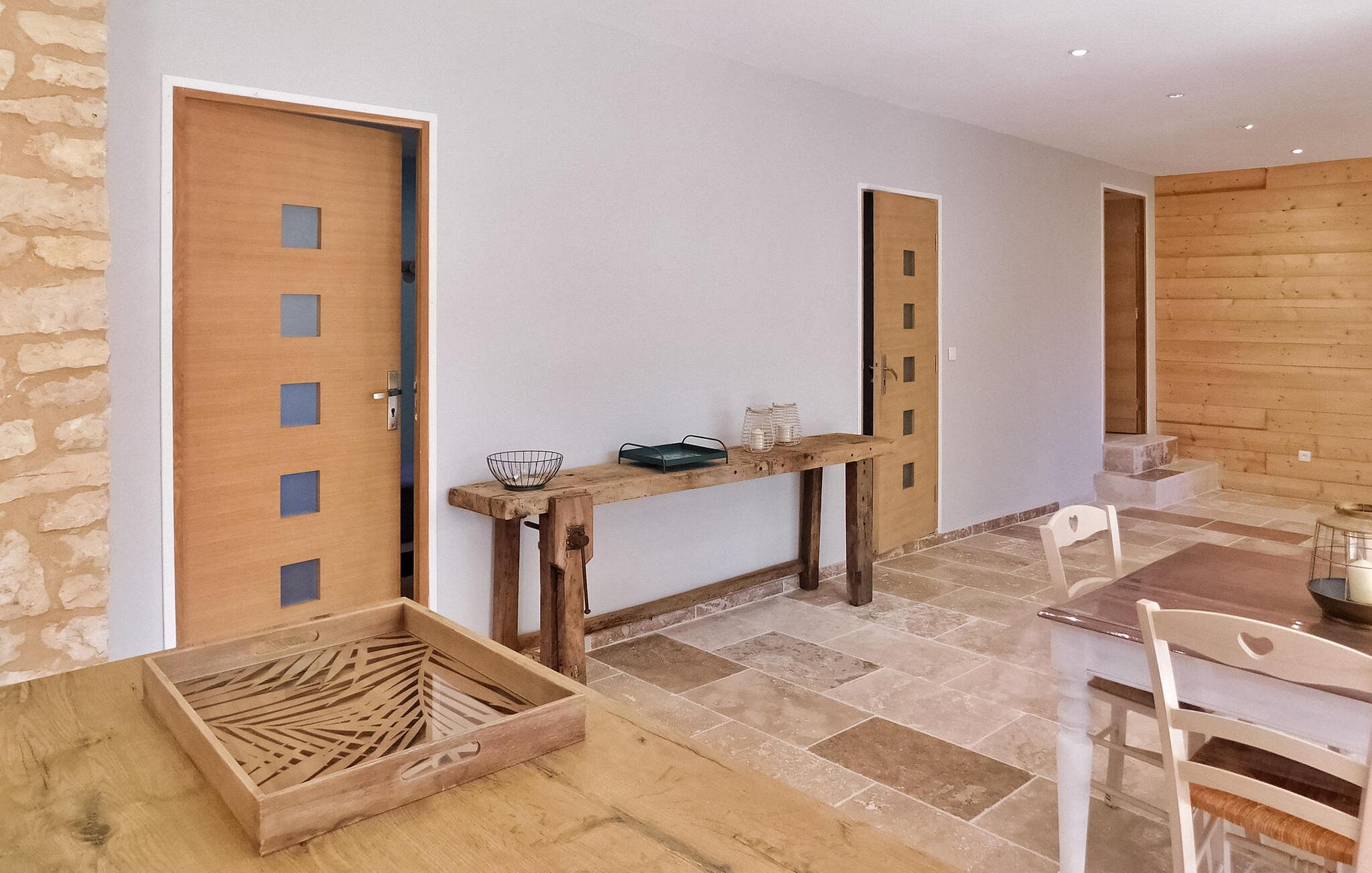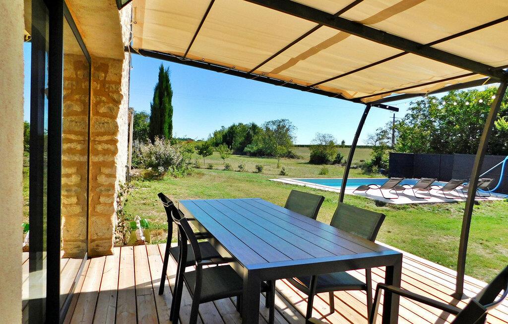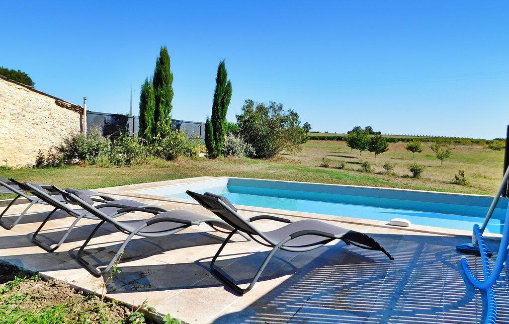 Ferieboligen, beliggende i en fredfyldt landsby cirka 2 km fra landsbyen Cunèges, tilbyder et komfortabelt opholdsrum med aircondition. Ejendommen omfatter et rummeligt køkken udstyret med de nødvendige faciliteter, en spiseplads og et hyggeligt opholdsområde med en behagelig chaiselong-sofa. Udenfor har ejendommen en overdækket træterrasse med en grill med udsigt og en privat swimmingpool på 8m x 4m, komplet med hjørnetrapper og udendørs møbler. Nyd den fredelige udsigt over landskabet, mens du nyder frokost udendørs. Ferieboligen ligger i en landsby på landet, landsbyen Cunèges inden for 200 m. Ejendommen er beliggende i hjertet af Bergerac-vinmarkerne, på vinruten med berømte appellationsslotte og vinkældre i Purple Perigord.