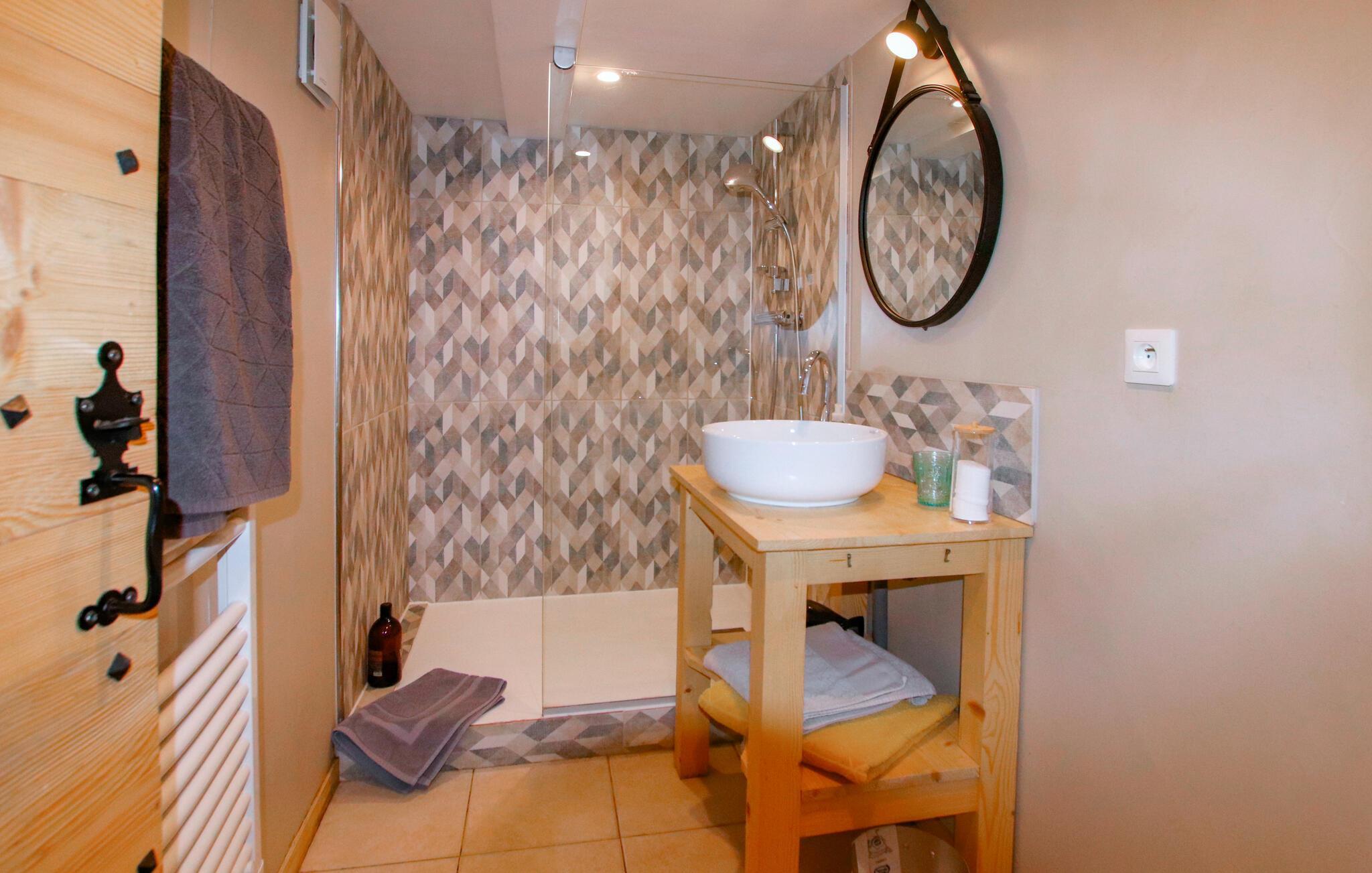 Velkommen til det nænsomt restaurerede interiør i jeres feriehus fra det 19. århundrede, som tilbyder jer en rolig pause ved de smukke franske alpine foden. Brug det moderne, åbne køkken til at tilberede jeres livretter og tilbring hyggelige aftener ved spisebordet eller afslappende timer med en god bog på den komfortable sofa.