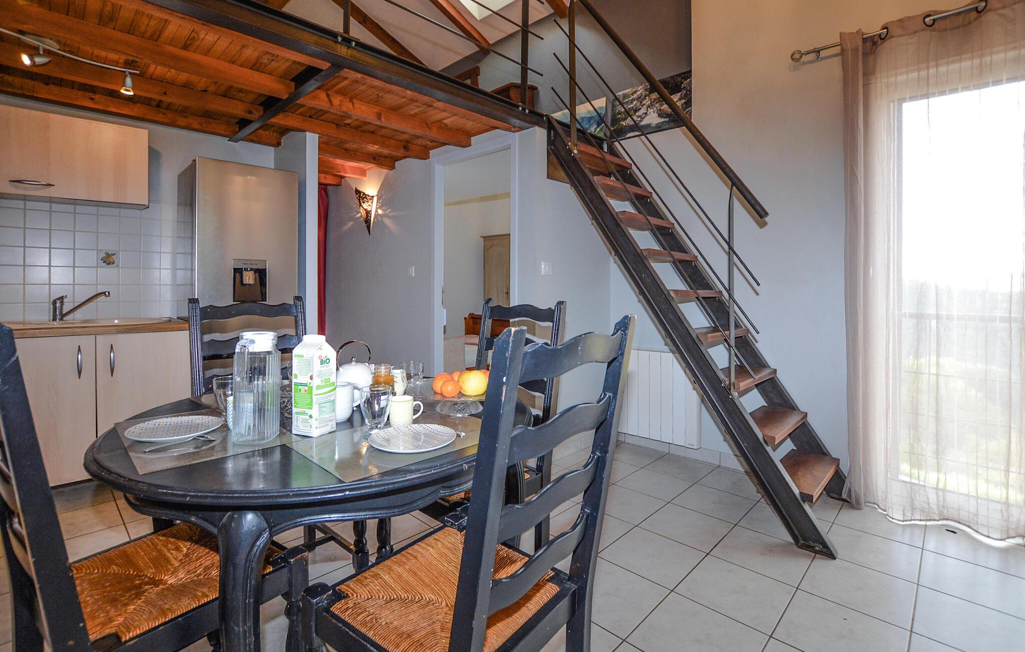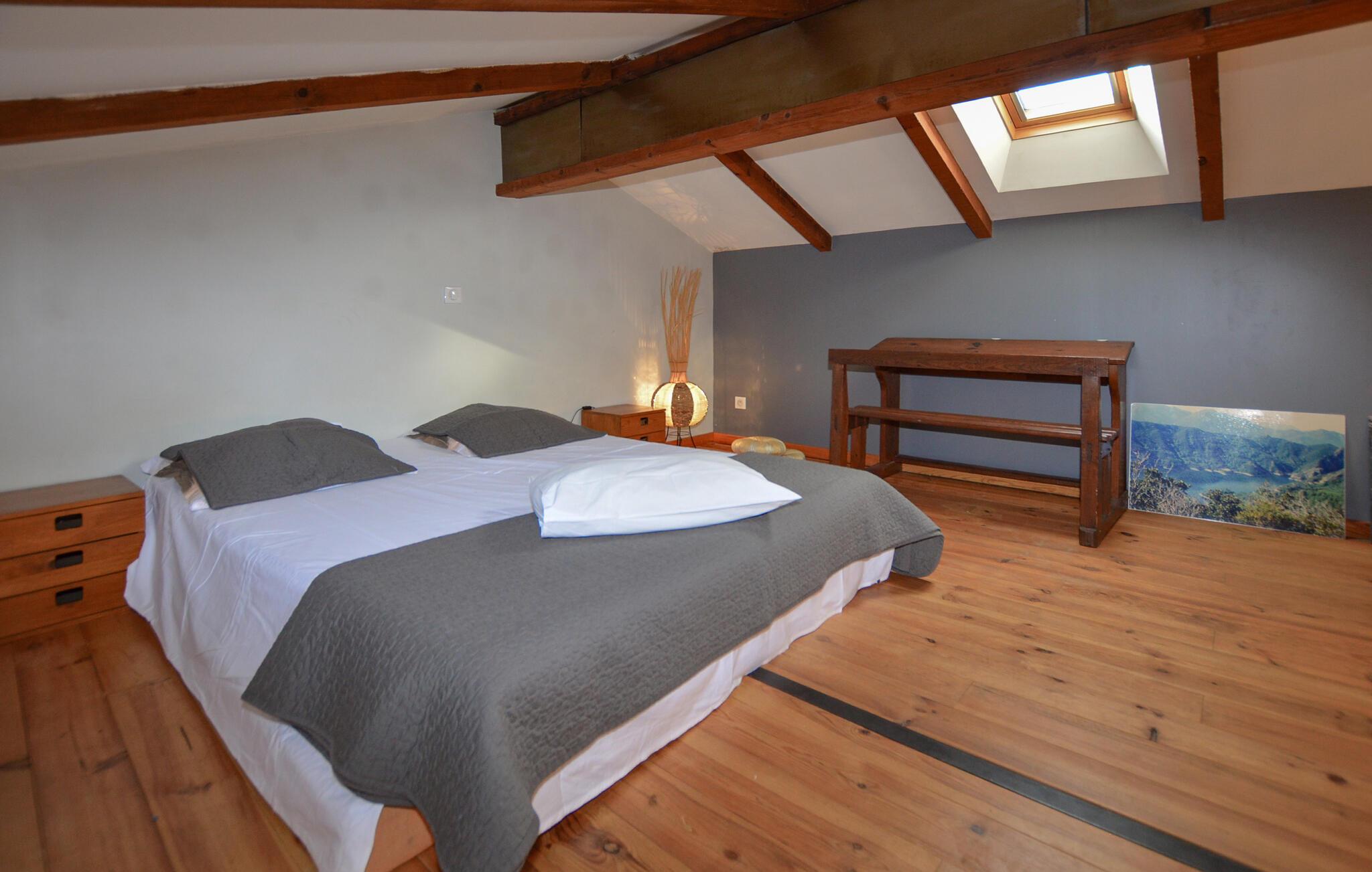 Tilbring dejlige dage i denne charmerende ferielejlighed med udsigt over bjergene og tæt på havet. Denne lejlighed byder jer velkommen med en venlig og afslappet atmosfære. Smukke trædetaljer, rustikke møbler og landlig charme sikrer, at I hurtigt kan slappe af. Uanset om I nyder en afslappet snak, lytter til jeres yndlingsmusik eller tilbereder lækre måltider sammen, vil I hurtigt glide ind i ferietilstand her. Fra den dejlige terrasse kan I nyde udsigten over bjergene når som helst på dagen og se solen bade landskabet i evigt skiftende farver. Nyd en afslappet morgenmad her og fordyb jer derefter i en god bog. Om aftenen kan I bruge grillen til at tilberede frisk fisk eller en saftig bøf. Beliggenheden er højt oppe i det korsikanske bagland og fortryller besøgende med en storslået udsigt over Gravona-dalen. Tag naturskønne vandreture eller cykelture gennem de bølgende bakker og frodige dale. Fordyb jer i den pulserende kultur: lokale producenter tilbyder korsikansk charcuteri, hjemmelavet marmelade, olivenprodukter og traditionel keramik. Og hvis I er i humør til havet, kulturen og en pulserende byatmosfære, kan I besøge det nærliggende Ajaccio. Der finder I smukke strande, en charmerende havneatmosfære, en historisk gammel bydel og museer.