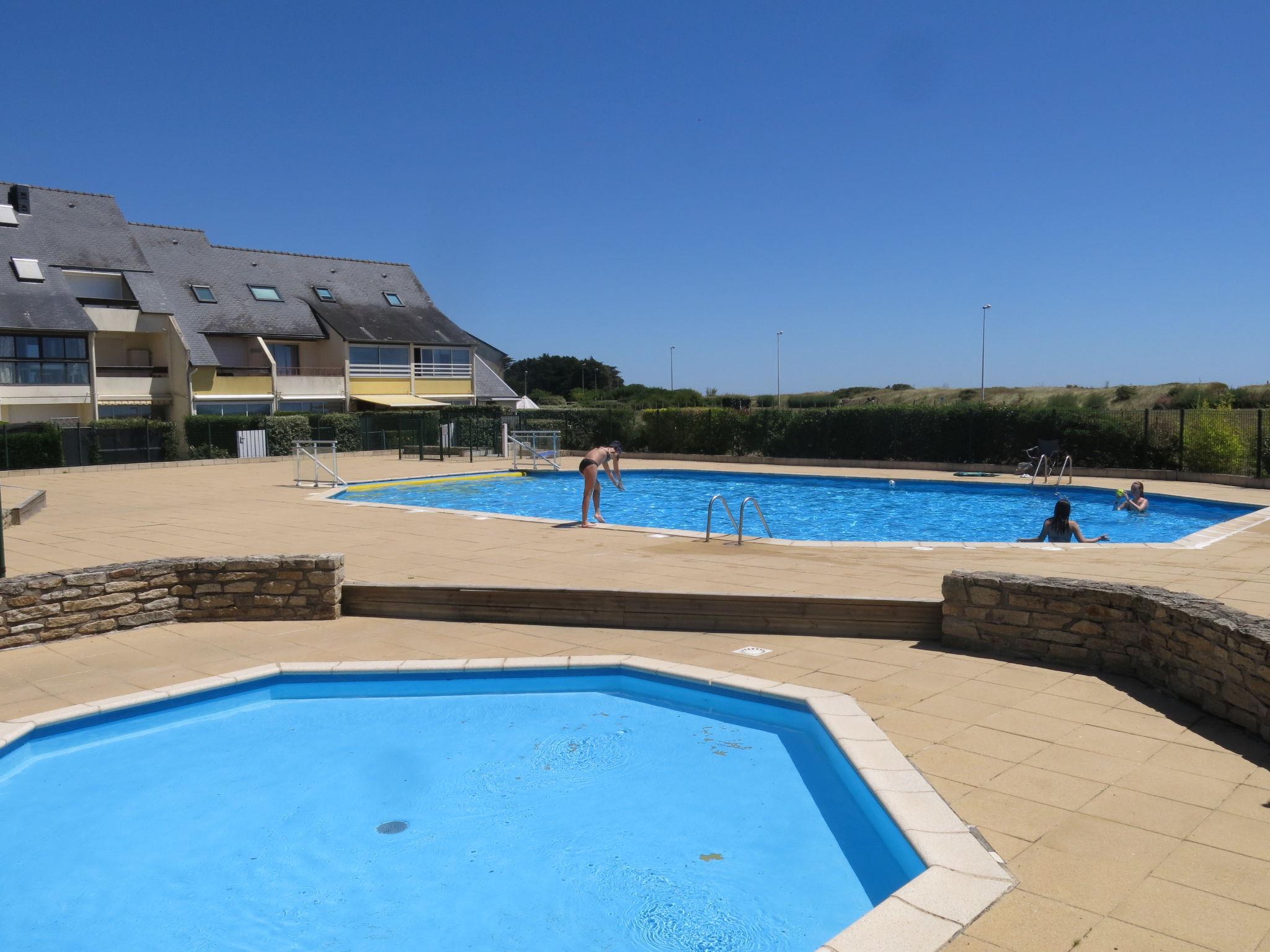 Resort "Les Océanes", 3 storeys. 100 apartments in the residence. 500 m from the centre of Damgan, 100 m from the sea. For shared use: property with lawn, swimming pool fenced (15 x 8 m, depth 50 - 200 cm, seasonal availability: 15.Jun. - 15.Sep. pool opening hours: 09:00-22:00). Children's pool, tennis, boccia, parking space n 336. Shop 500 m, restaurant 100 m, bus stop 500 m, sandy beach "Grande Plage" 100 m. Nearby attractions: Zoo (Parc animalier) de Branféré 20 km, Vannes et Golfe du Morbihan 24 km, Pemestin 28 km, Rochefort-en-Terre 32 km, Arzon et départs vers les Iles 34 km, Guérande (Parc régional de Brière) 46 km. Hiking paths: GR34. Residence with electric gates.
