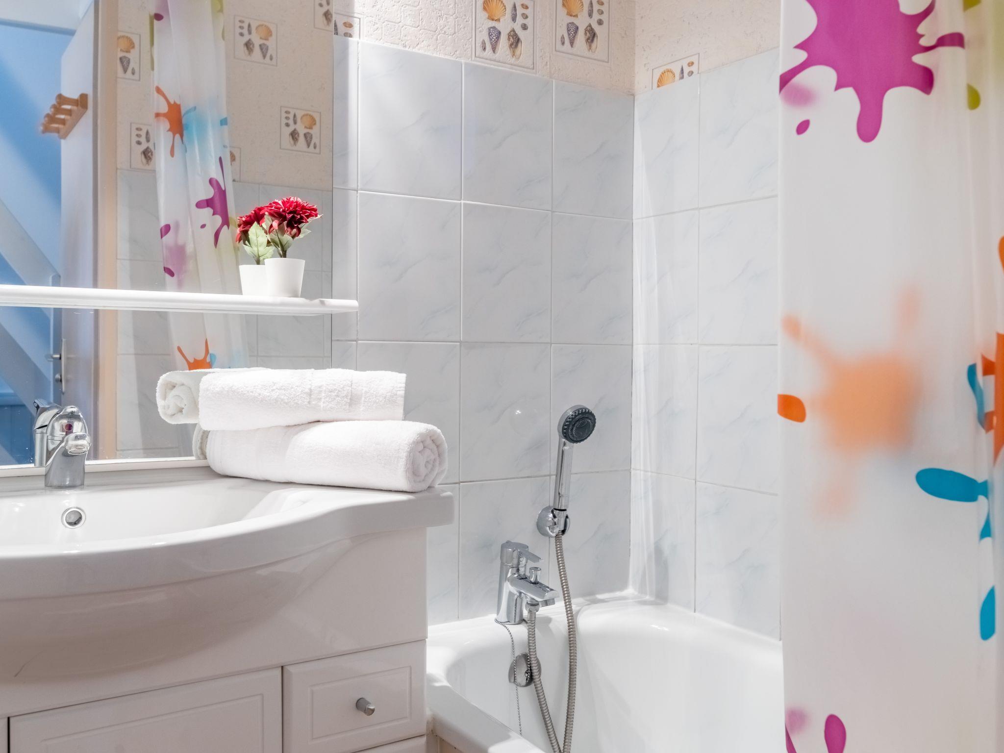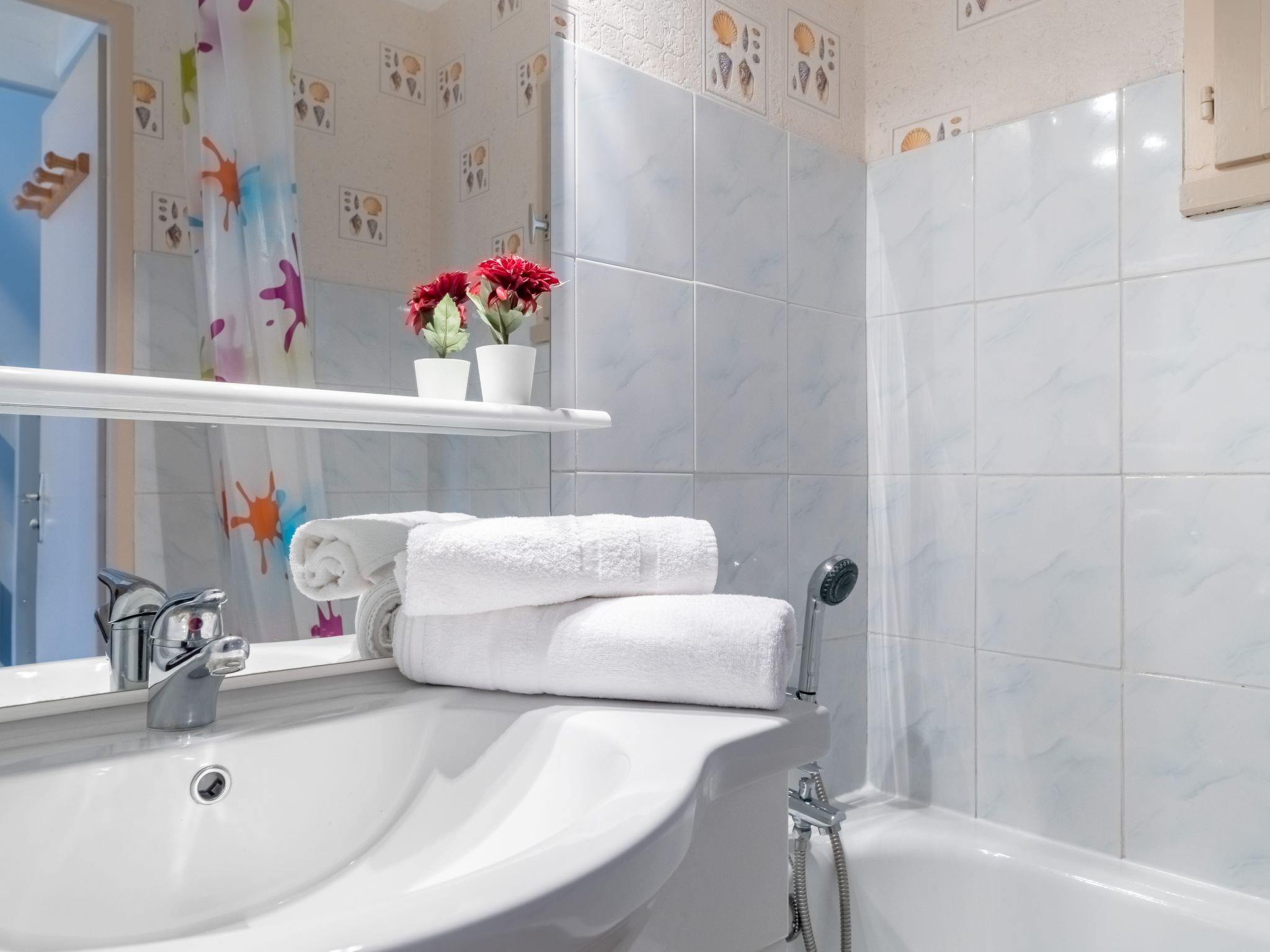"Belle vue Mer et Piscine", 2-room maisonette 30 m2 on 1st floor, south-west facing position. Object suitable for 2 adults + 2 children. Bright, renovated, beautiful furnishings: living room with TV (flat screen). Open kitchen (mini-oven, dishwasher, 2 ceramic glass hob hotplates, toaster, kettle, microwave, electric coffee machine). Bath/WC. Upper floor: interconnecting room with 2 beds (90 cm, length 190 cm). 1 room with sloping ceilings with 1 french bed (140 cm, length 190 cm). Electric heating. View of the sea. Facilities: washing machine, iron. Internet (WiFi, free). Please note: non-smokers only. Smoke alarm. Offer by a private individual according to Art. 155, IV of CGI.