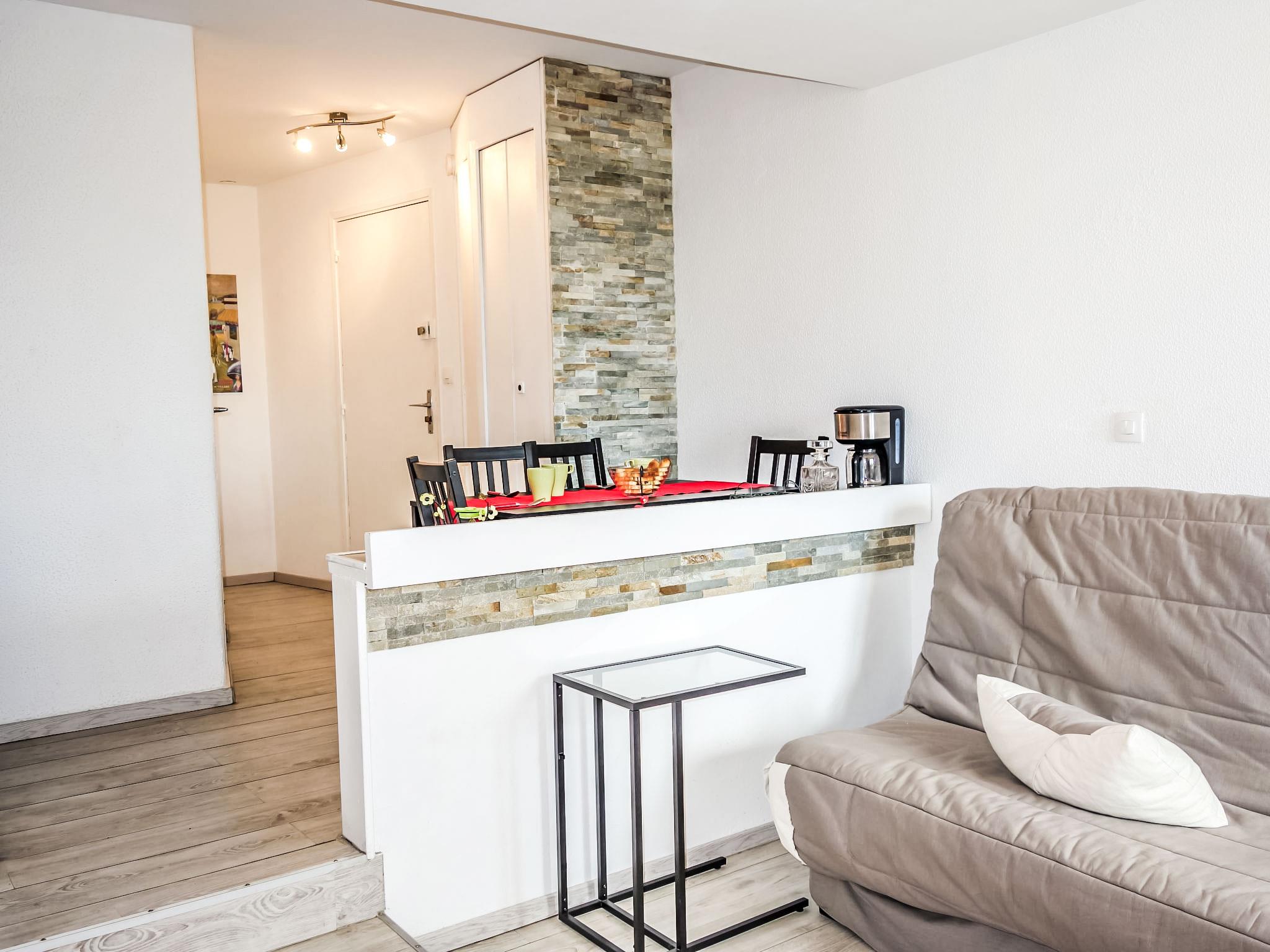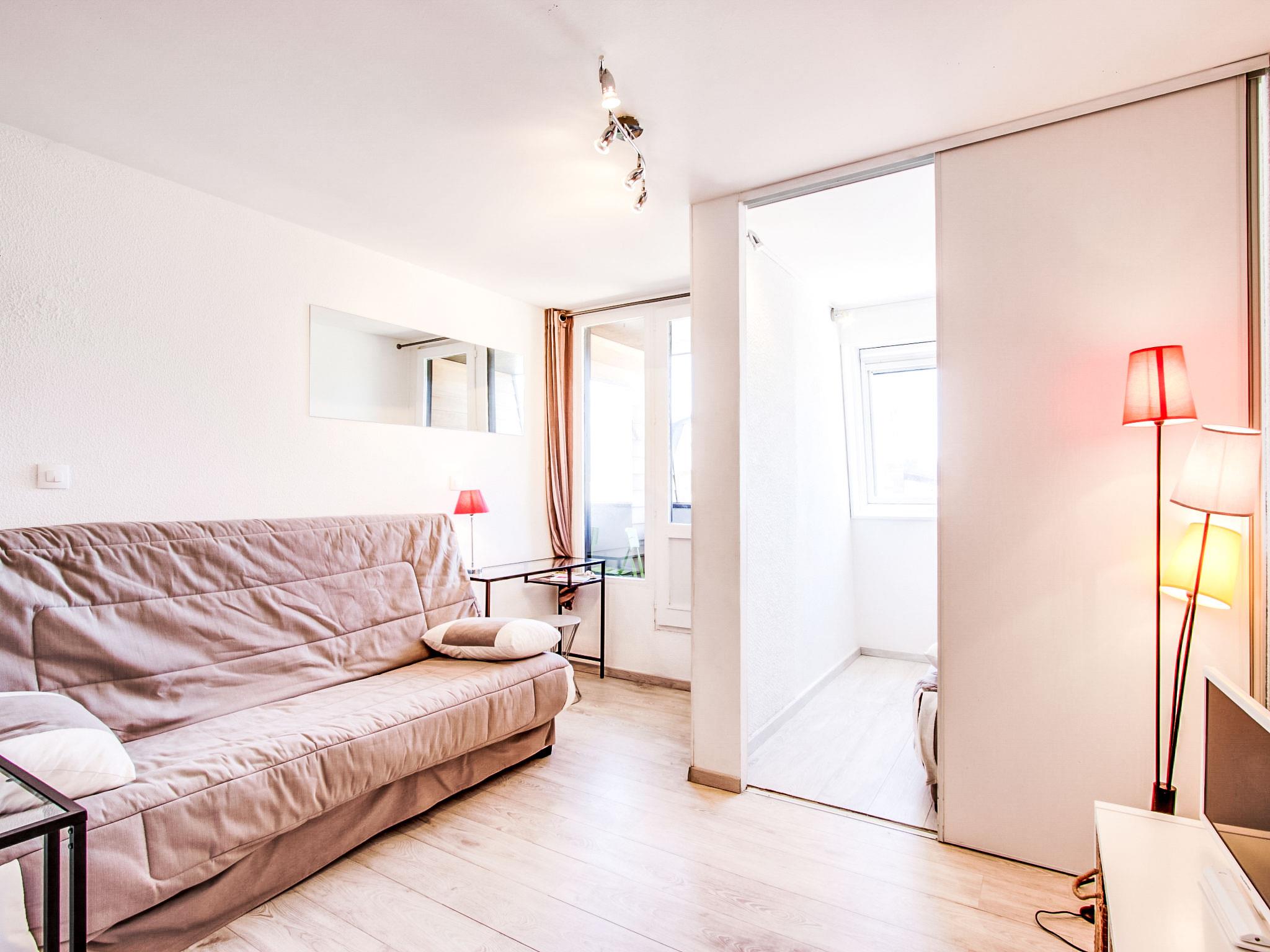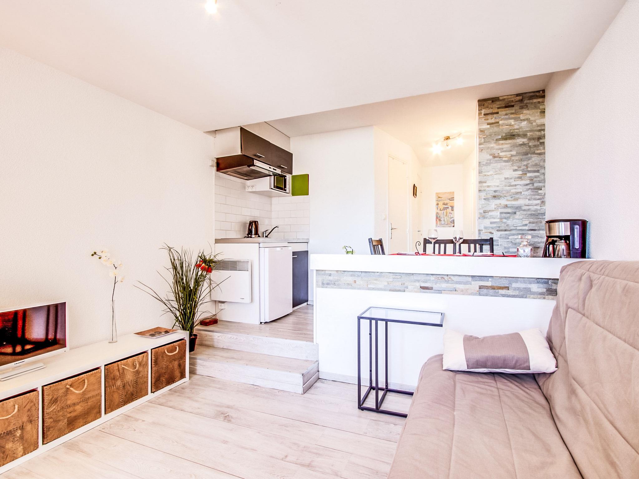 1-room studio 23 m2 on 5th floor, west facing position. Object suitable for 2 adults + 1 child. Living/dining room with 1 double sofabed (1 x 140 cm, length 190 cm), TV (flat screen). Alcove with 1 double sofabed (1 x 140 cm, length 190 cm). Kitchenette (2 hot plates, toaster, kettle, microwave, electric coffee machine). Bathroom, sep. WC. Electric heating. Small balcony 1 m2. Balcony furniture. Facilities: Internet (WiFi, free). Please note: non-smokers only. Smoke alarm. Instead of an enclosed bedroom, some sleeping areas are located in an open-plan area (gallery, alcove, etc.). 14220000114 OU