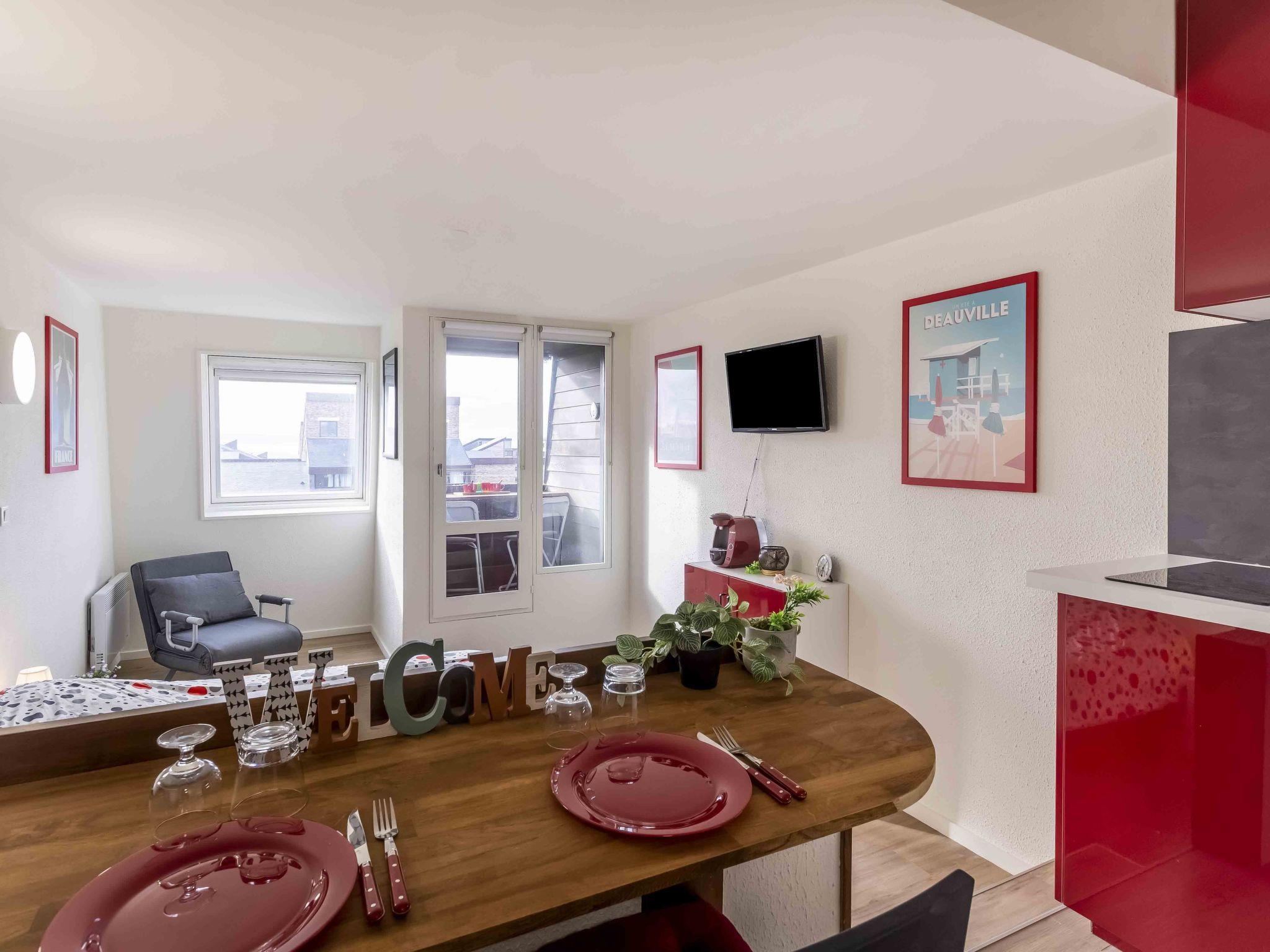 Deauville: Residence "Les Marinas". In the district of Port Deauville, 800 m from the centre, 500 m from the sea, 500 m from the beach. In the complex: lift. (20 steps). Public parking on the road. Shop 650 m, grocery, supermarket 950 m, restaurant 650 m, bus stop 400 m, railway station "Deauville-Trouville" 1.2 km, indoor swimming pool 1.1 km, thermal baths "Deauville" 1.1 km. Golf course (18 hole) 4.1 km, tennis, riding stable 750 m. Nearby attractions: Centre International Deauville - CID 900 m, Hippodrome Deauville-La Touques 1.3 km, Mémorial de Caen 55 km, Plage du débarquement d'Arromanches 87 km. Please note: Additional accommodations can be booked.