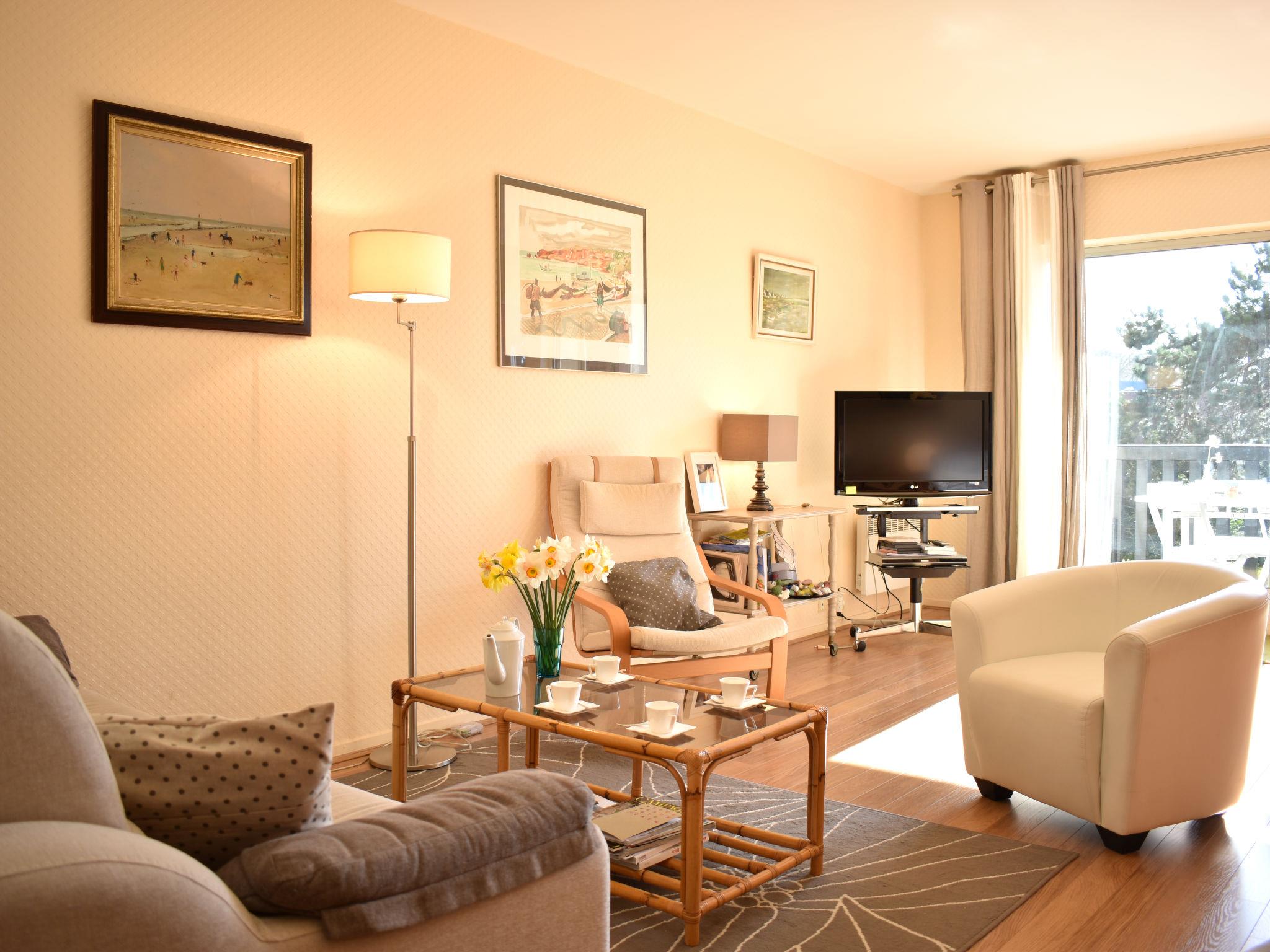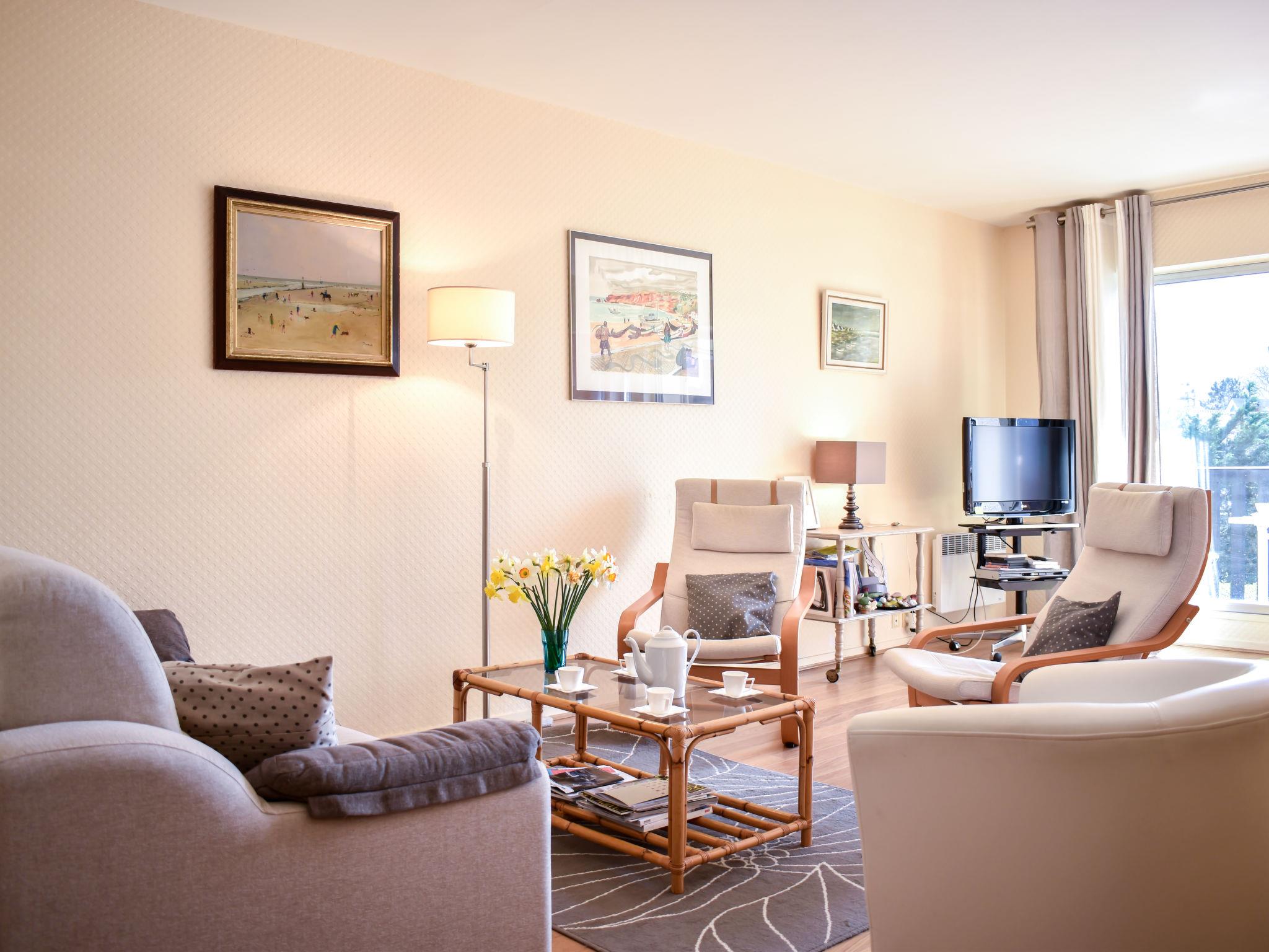 Tourgeville 2 km from Deauville: Residence "Les Terrasses de Tourgeville", 3 storeys. Outside the resort, 2 km from the centre of Deauville, 150 m from the sea, 150 m from the beach. For shared use: tennis. In the complex: lift. Parking space or garage only for small to medium-sized cars. Dimension: height 170 cm width 254 cm. Shop 1.5 km, supermarket 450 m, restaurant 750 m, bus stop "1 rue de gheest" 700 m, railway station "Deauville-Trouville" 2.6 km, sandy beach 150 m, indoor swimming pool 1.5 km, thermal baths "Deauville" 1.5 km. Golf course (18 hole) 8.4 km, riding stable 1.8 km. Nearby attractions: Hippodrome de Clairefonfaine 1.7 km, Centre International Deauville - CID 2.1 km, Mémorial de Caen 51 km, Plages du Débarquement d'Arromanches 84 km, Casino de Deauville 1.5 km. The keys‘ handover takes place by the agency Interhome in Deauville.