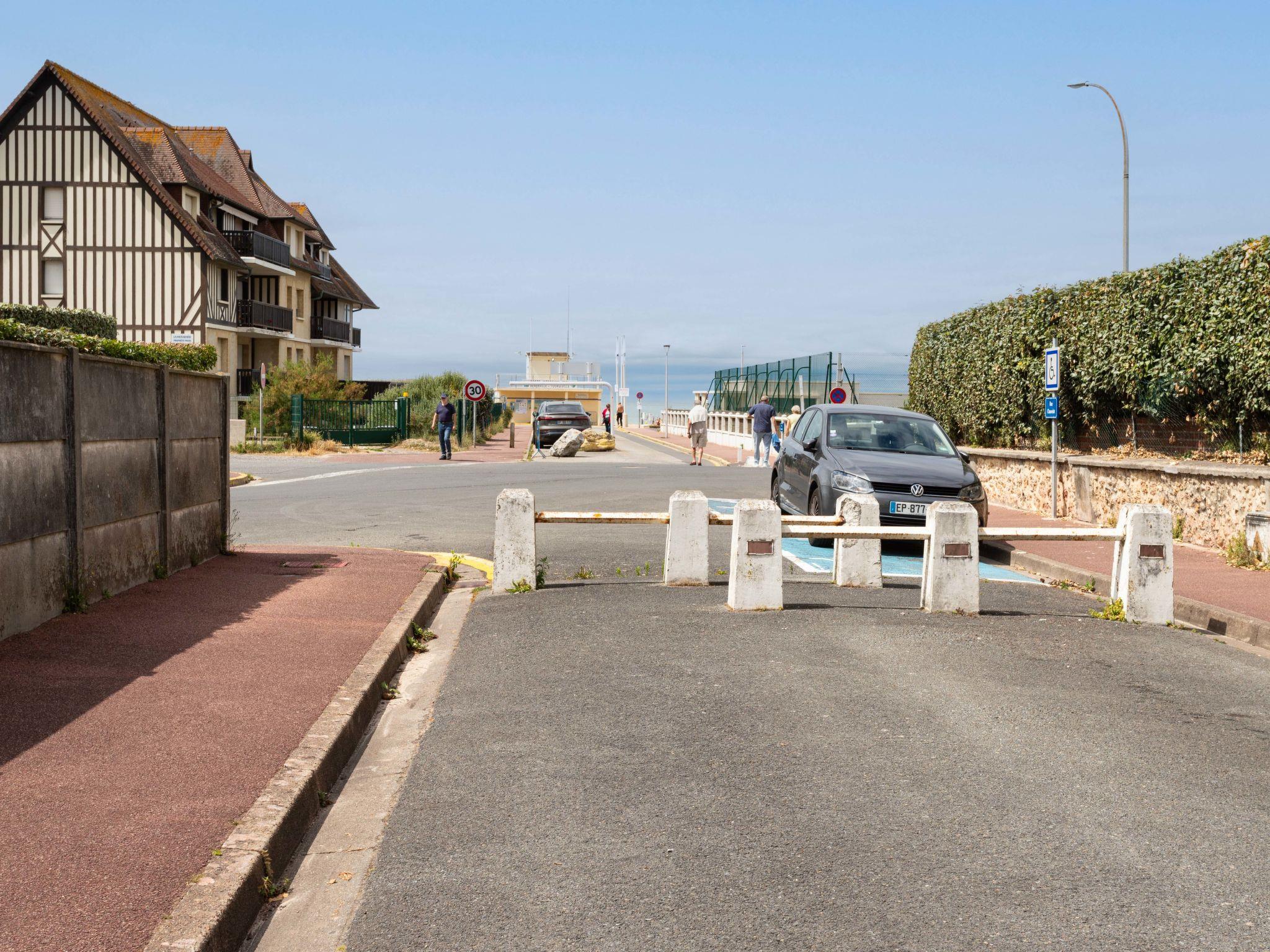 Tourgeville 2 km from Deauville: Residence "Les Terrasses de Tourgeville", 3 storeys. Outside the resort, 2 km from the centre of Deauville, 150 m from the sea, 150 m from the beach. For shared use: tennis. In the complex: lift. Parking space or garage only for small to medium-sized cars. Dimension: height 170 cm width 254 cm. Shop 1.5 km, supermarket 450 m, restaurant 750 m, bus stop "1 rue de gheest" 700 m, railway station "Deauville-Trouville" 2.6 km, sandy beach 150 m, indoor swimming pool 1.5 km, thermal baths "Deauville" 1.5 km. Golf course (18 hole) 8.4 km, riding stable 1.8 km. Nearby attractions: Hippodrome de Clairefonfaine 1.7 km, Centre International Deauville - CID 2.1 km, Mémorial de Caen 51 km, Plages du Débarquement d'Arromanches 84 km, Casino de Deauville 1.5 km. The keys‘ handover takes place by the agency Interhome in Deauville.