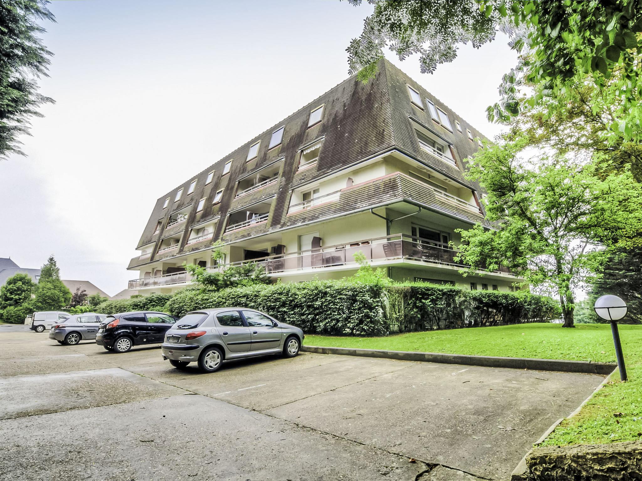 Trouville sur Mer: Residence "Les Flots Bleus", 4 storeys. Outside the resort, on top of a hill, 900 m from the sea, 900 m from the beach. In the complex: lift. (5 steps). Shop 2 km, grocery 2.1 km, supermarket 2.1 km, bus stop "Trouville Prémanoir" 300 m, railway station "Deauville-Trouville" 2.4 km, sandy beach "Trouville-sur-mer" 1 km, indoor swimming pool 2 km, thermal baths "Trouville sur Mer" 2 km. Golf course (18 hole) 6.1 km, sailing school 1.5 km, tennis 1.5 km. Nearby attractions: Honfleur 13 km, Mémorial de Caen 64 km, Plage du débarquement d'Arromanches 97 km. Please note: car recommended. The keys‘ handover takes place by the agency Interhome in Deauville. Additional accommodations can be booked.