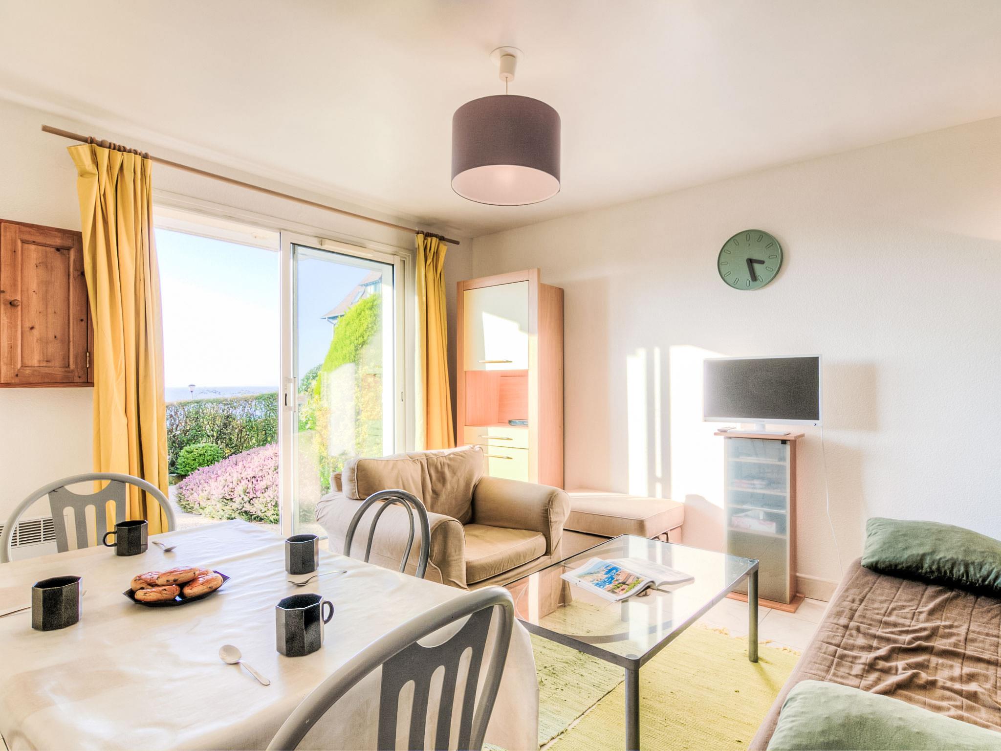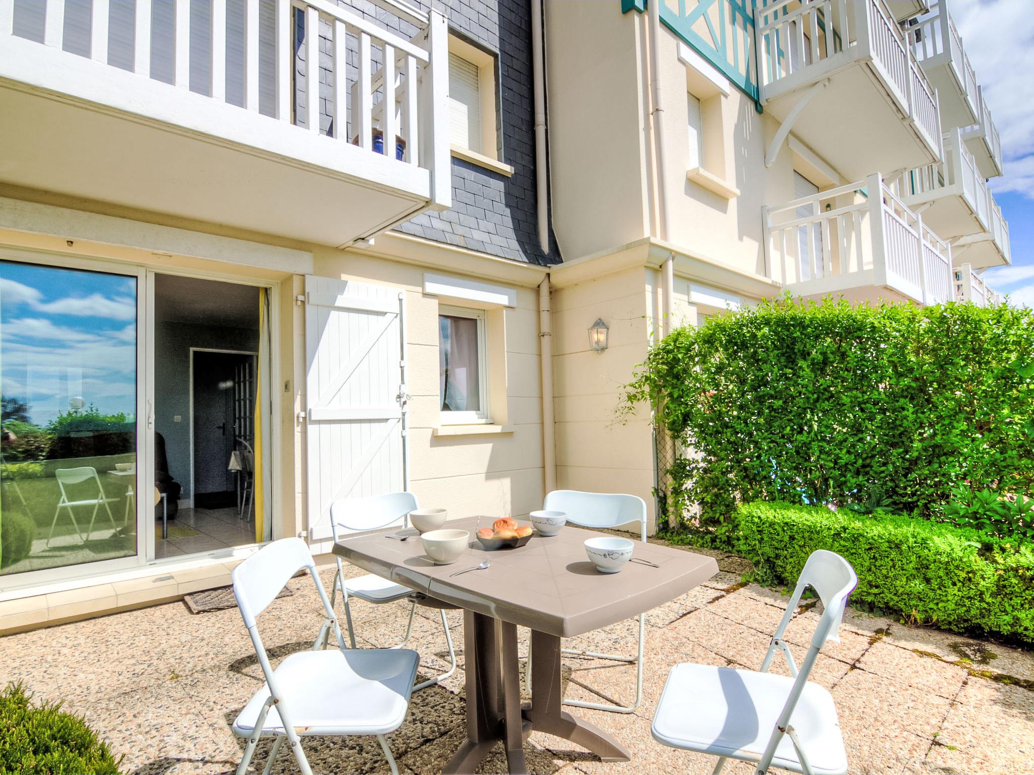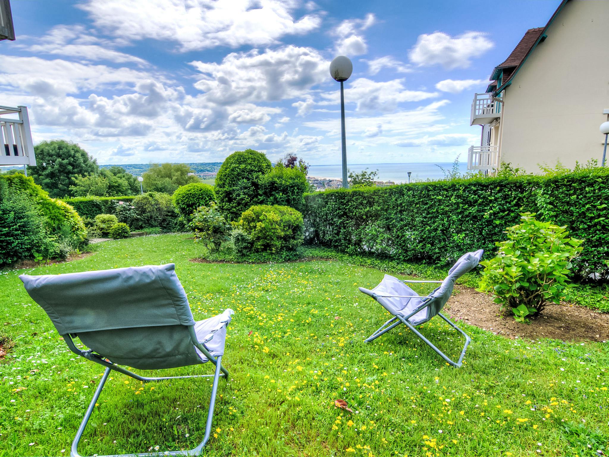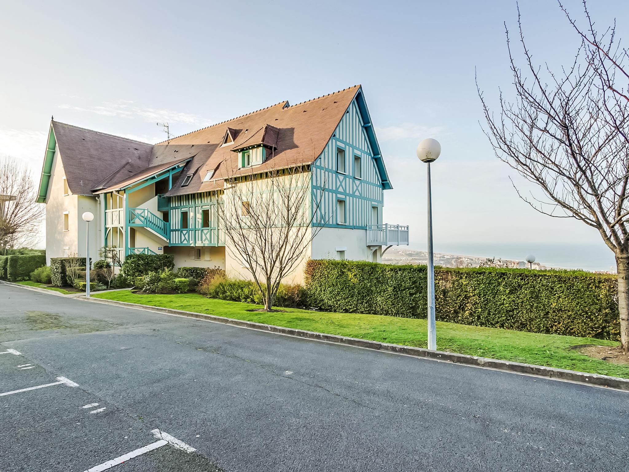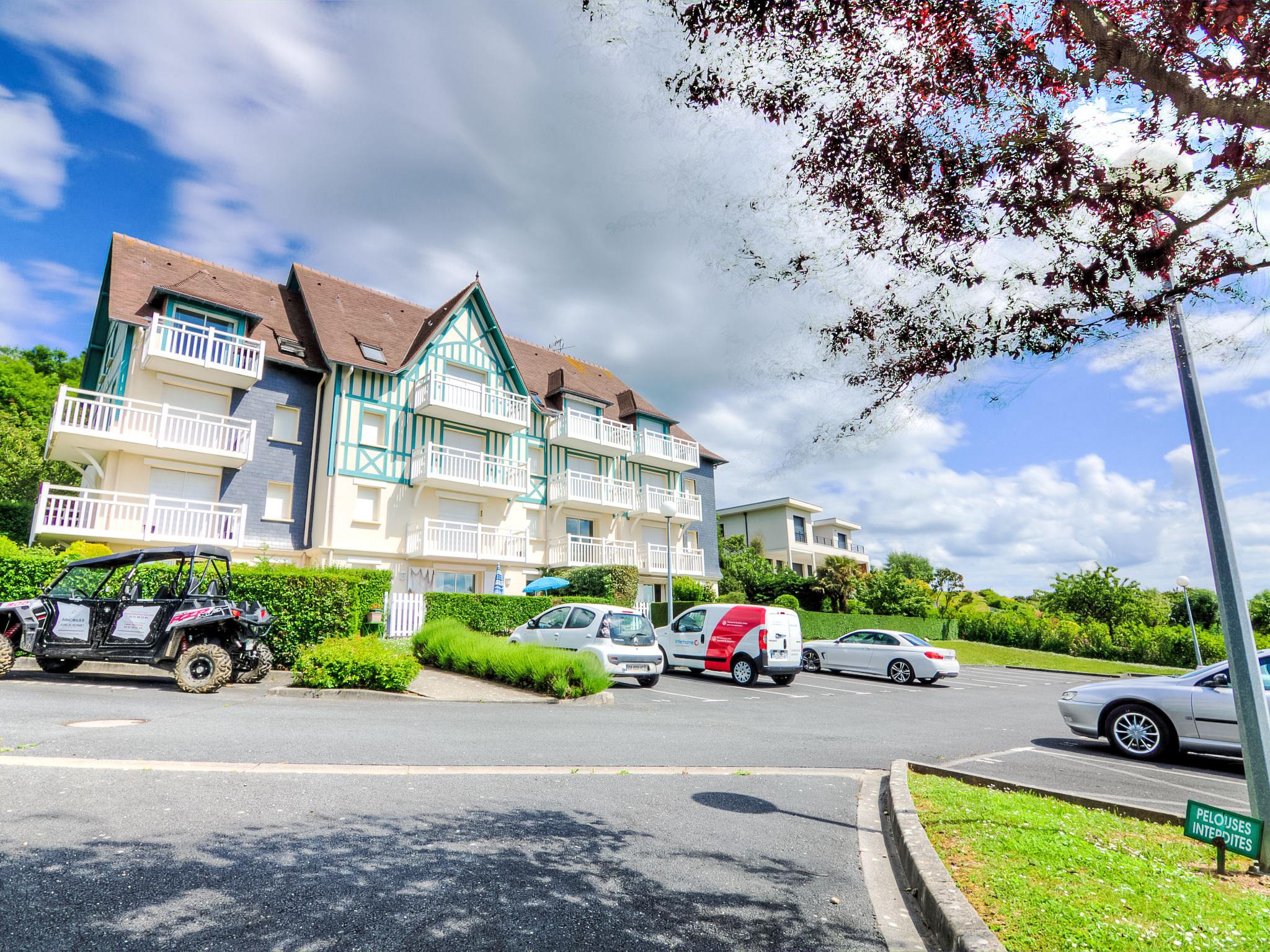 Blonville sur Mer 4 km from Deauville: Residence "Le Cap Bleu", 3 storeys. Outside the resort, on top of a hill, 1.1 km from the sea, 1.1 km from the beach. In the complex: storage room for bicycles. Shop 1.1 km, grocery 1.1 km, supermarket 2.3 km, restaurant 1.1 km, bus stop "Blonville plage" 1 km, railway station "Deauville-Trouville" 4.5 km, indoor swimming pool 3.5 km, thermal baths "Deauville" 3.5 km. Golf course (18 hole) 5.9 km, tennis 1.3 km, riding stable 1.4 km. Nearby attractions: Hippodrome de Clairefontaine 2.6 km, Mémorial de Caen 44 km, Plage du débarquement d'Arromanches 75 km. Please note: car recommended. The keys‘ handover takes place by the agency Interhome in Deauville.