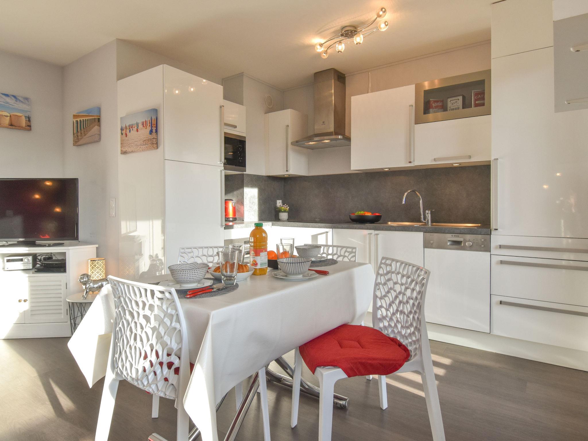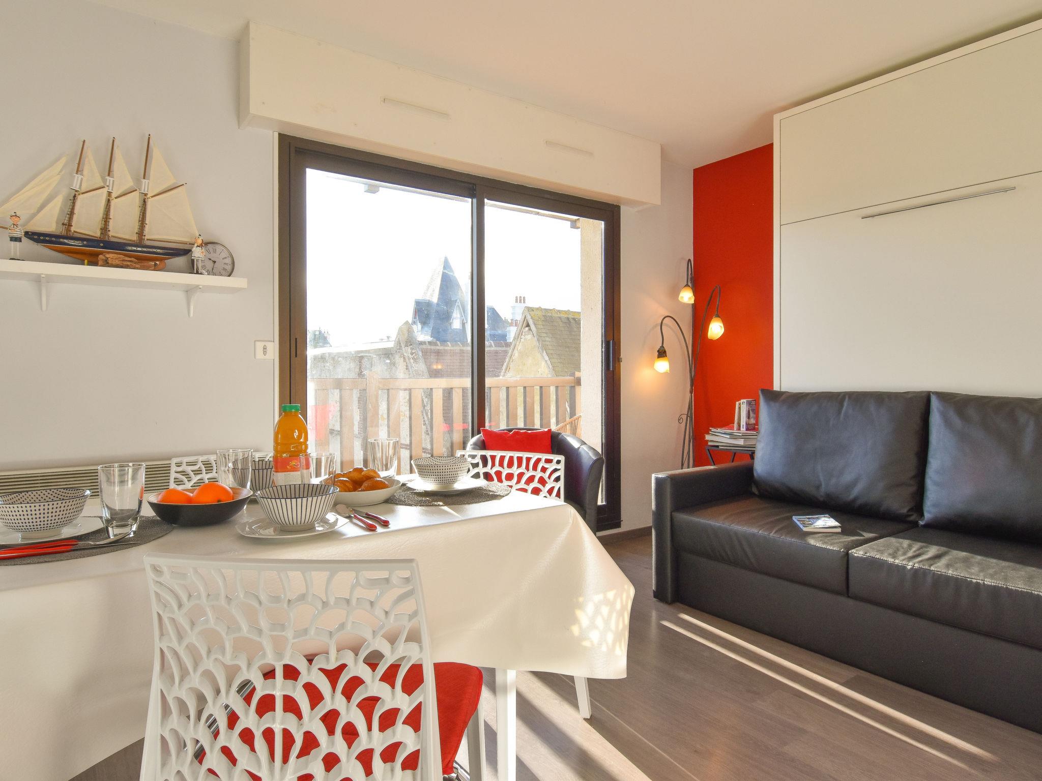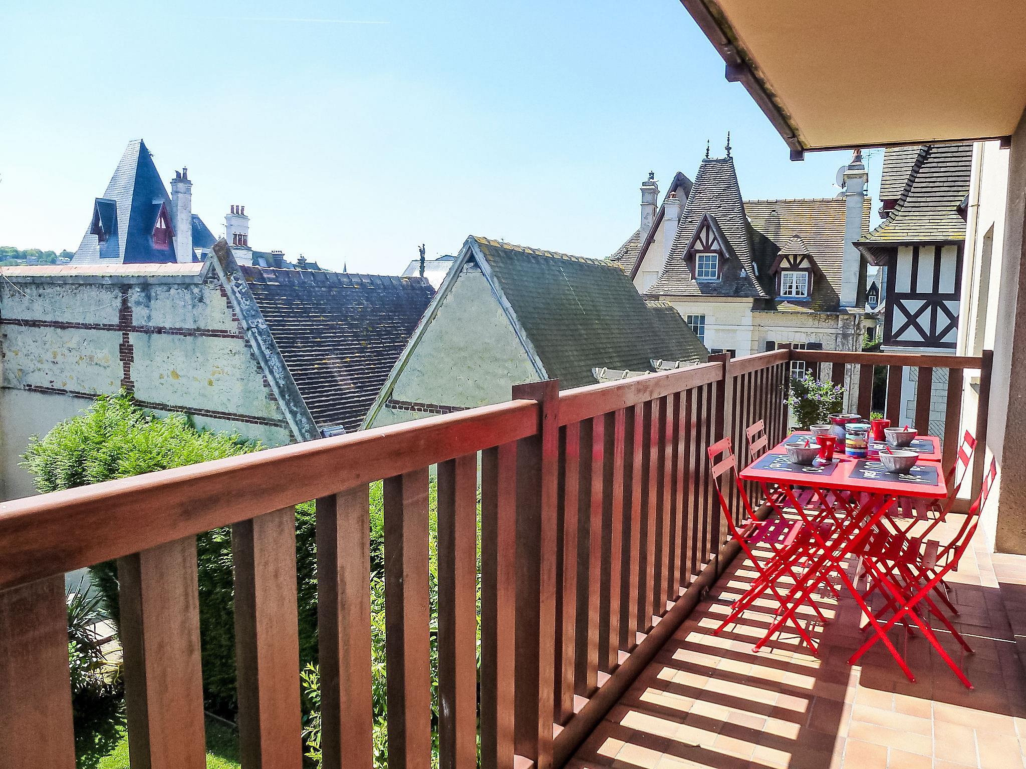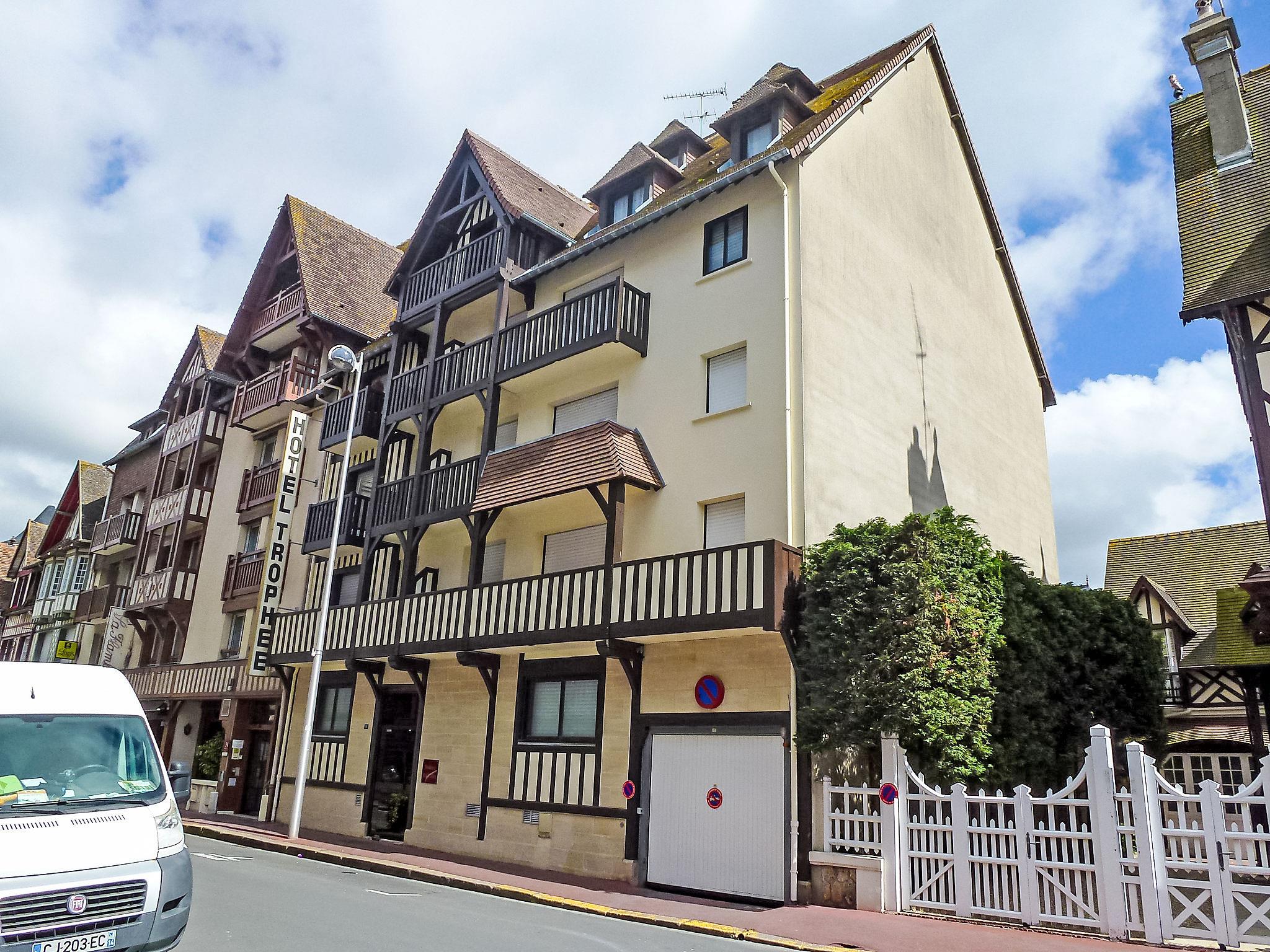 Deauville: Residence "Baccara". Excellent location: right in the centre but still quiet, 450 m from the sea, 450 m from the beach. In the complex: lift. (6 steps). Shop 100 m, grocery 500 m, supermarket 1.3 km, restaurant 50 m, bus stop "Franciscaines" 750 m, railway station "Deauville-Trouville" 950 m, indoor swimming pool 500 m, thermal baths "Deauville" 500 m. Golf course (18 hole) 3.2 km, tennis 350 m, riding stable 350 m. Nearby attractions: Centre International Deauville - CID 300 m, Hippodrome Deauville-La Touques 500 m, Mémorial de Caen 54 km, Plage du débarquement d'Arromanches 83 km. The keys‘ handover takes place by the agency Interhome in Deauville.