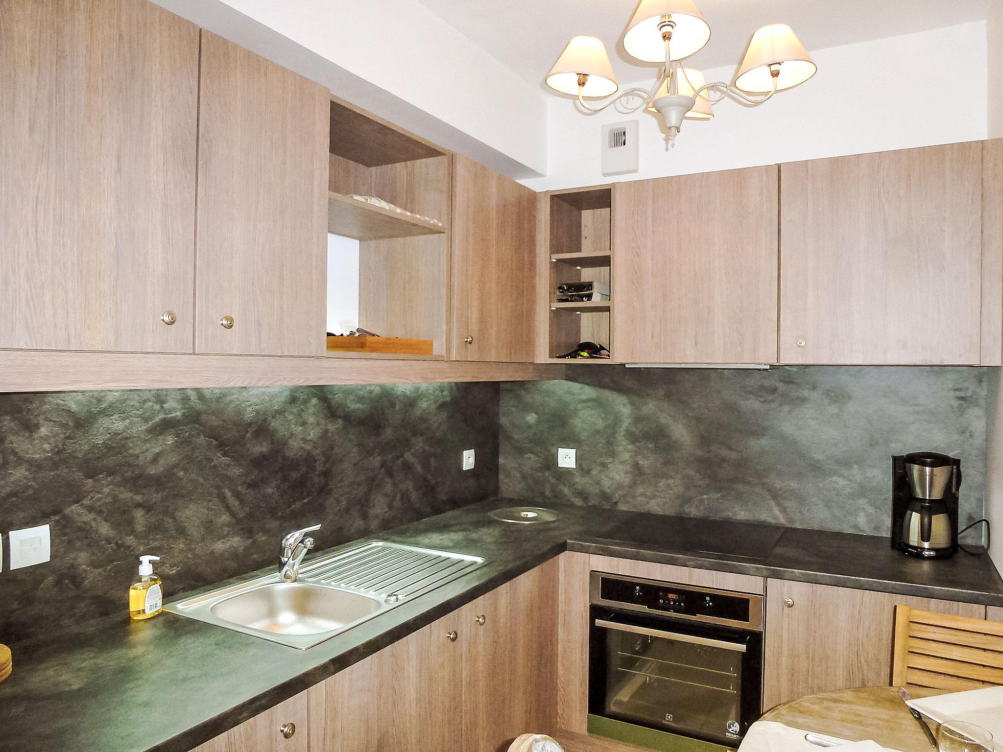4-room semi-detached house 81 m2 on 2 levels, north facing position. Tasteful furnishings: entrance hall. Living/dining room. 1 room 12 m2 with 1 french bed (1 x 140 cm). Kitchenette (oven, dishwasher, 3 induction hot plates, toaster, kettle, microwave, electric coffee machine). Shower/WC. Electric heating. Upper floor: open office. 1 room with 1 french bed (1 x 160 cm). 1 room with 2 beds (80 cm). Bathroom, sep. WC. Patio, north facing position. Facilities: washing machine, hair dryer. Internet (WiFi, free). Parking (roofed, 1 car), height 210 cm, width 234 cm. Please note: suitable for families. Non-smokers only, parking space for small car only. Smoke alarm. 14220 000133 VZ