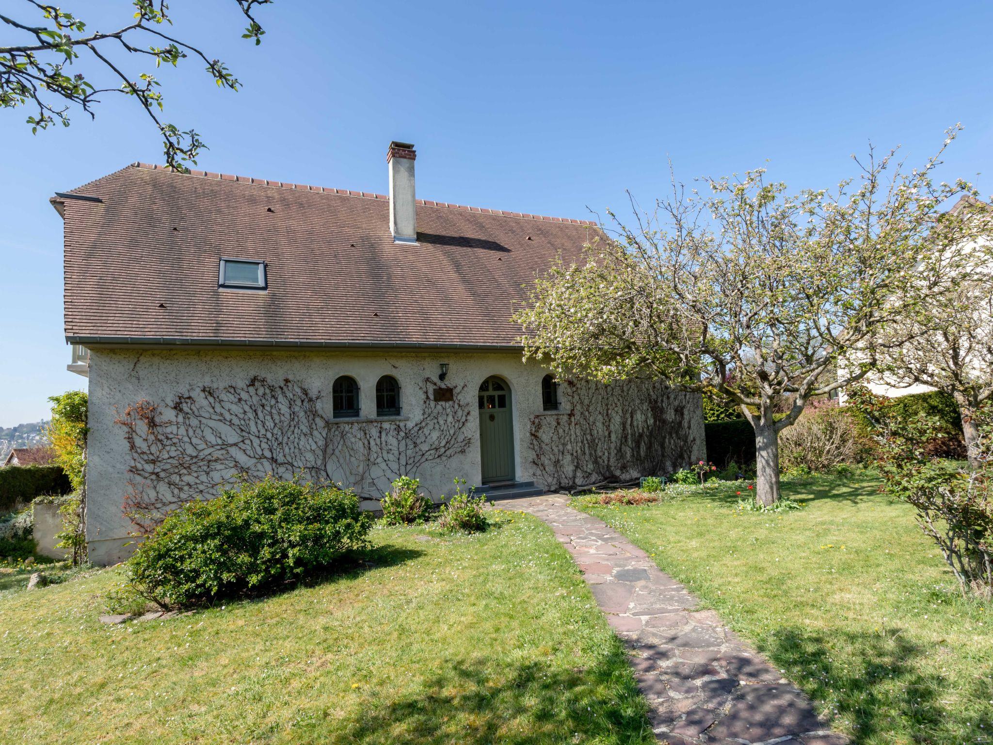 Touques: Very beautiful, cosy, comfortable country house "Les Jonquilles", 2 storeys. In the resort, 1.7 km from the centre, in a sunny position, 3 km from the sea, 3 km from the beach, south-west facing position. Private: property (fenced) with lawn 700 m2, parking. Shop 1.7 km, grocery 1 km, supermarket 1 km, bakery 1.5 km, 20 minute walk to the centre, bus stop "Rue du haut bois" 600 m, railway station "de Deauville Trouville sur Mer" 1.9 km, sandy beach 2.5 km, thermal baths "cures marines de Trouville" 2.4 km. Golf course (18 hole) 5 km, sailing school 4.3 km, tennis 2.6 km. Nearby attractions: casino de Trouville sur Mer 2.4 km, hippodrome de Deauville Clairefontaine 4.2 km, Honfleur, village normand 14 km. Please note: suitable for families. The keys‘ handover takes place by the agency Interhome in Deauville, 3 km.