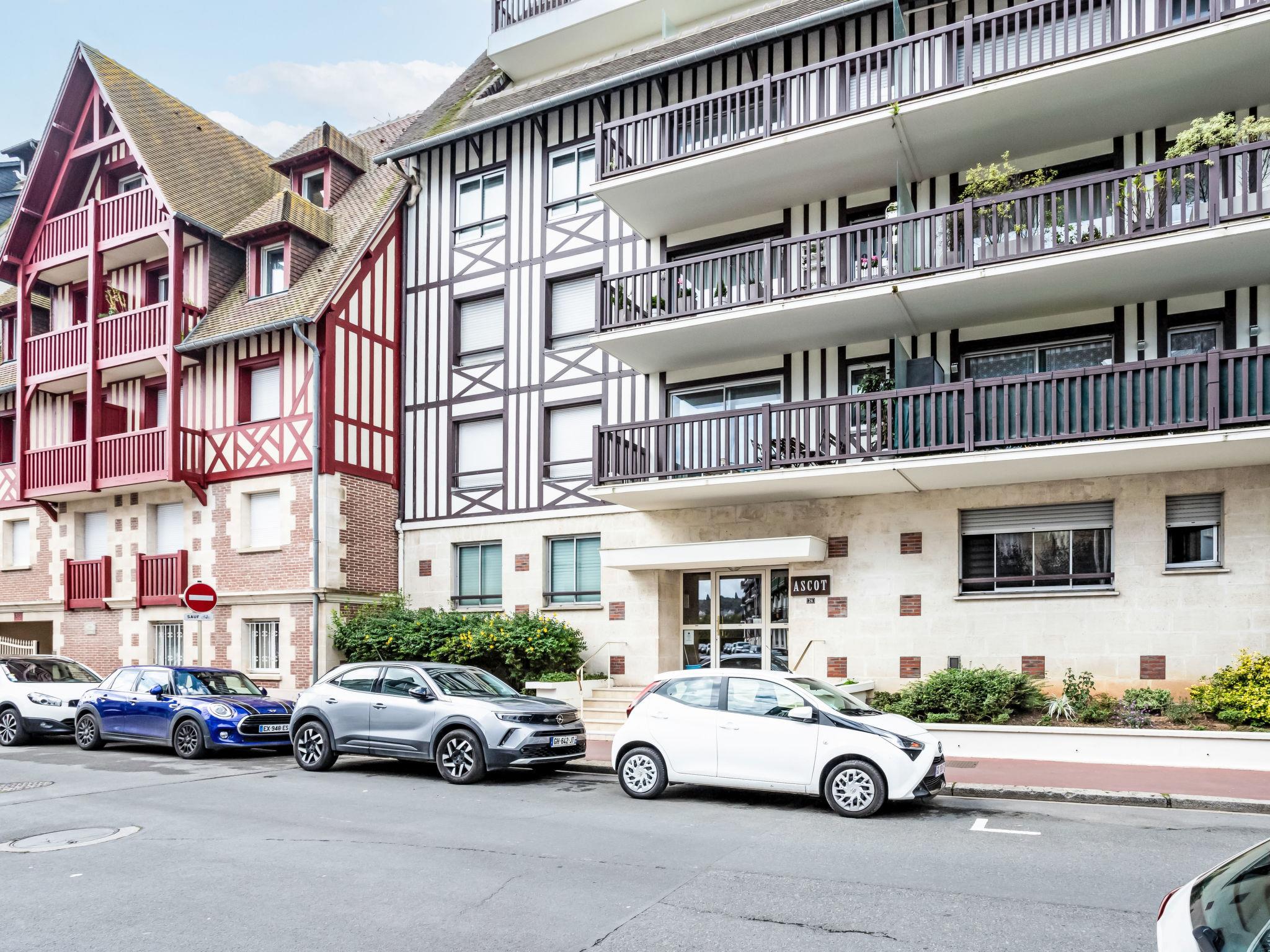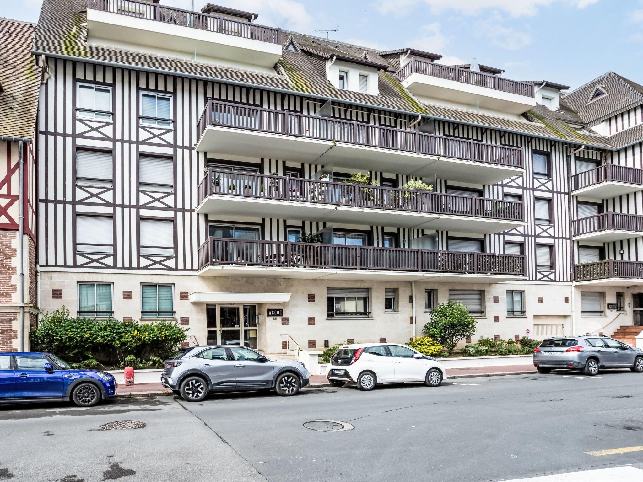 Deauville: Residence "Ascot", 4 storeys, terraced. In the resort, 350 m from the centre, in a quiet position, 1.4 km from the sea, 1.4 km from the beach, east facing position. In the complex: lift. (6 steps). Shop 350 m, supermarket 280 m, restaurant 100 m, bakery 60 m, 4 minute walk to the centre, bus stop "Gare routière" 500 m, railway station "Deauville-Trouville" 500 m, sandy beach "les planches de Deauville" 1.4 km, indoor swimming pool 1.1 km, thermal baths "thalasso de Deauville" 1.1 km. Golf course (18 hole) 3.7 km. Nearby attractions: casino de Deauville 1 km, hippodrome Deauville La Touques 1.2 km, Honfleur village normand 16 km, Mémorial de Caen 54 km, Arromanches plage du débarquement 80 km. The keys‘ handover takes place by the agency Interhome in Deauville.