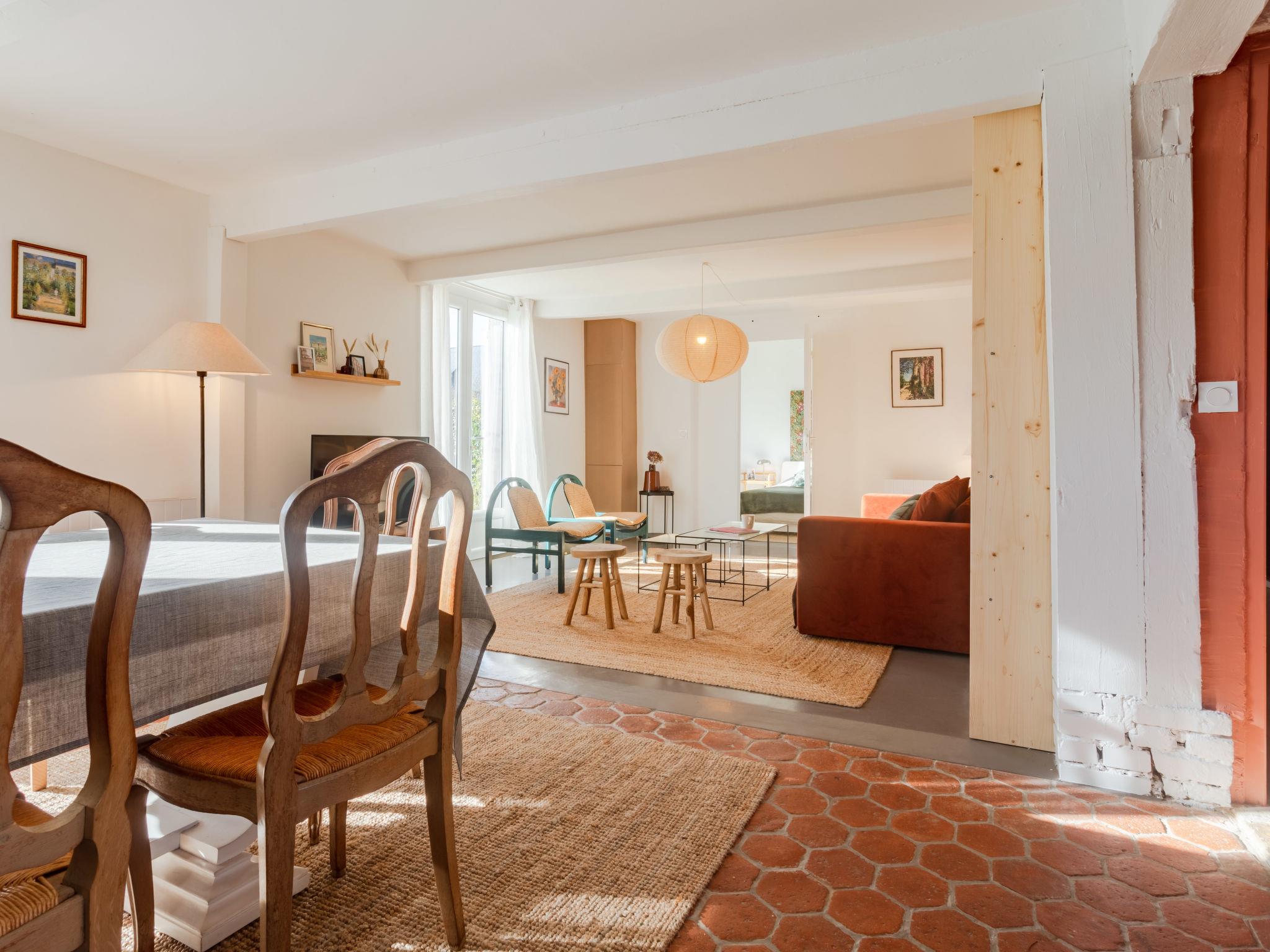 Canapville 6 km from Deauville: Very beautiful country house "L'albizia", 2 storeys. In a quiet position, 7.2 km from the sea, 7.2 km from the beach. Private: large garden 850 m2 (fenced), parking (for 3 cars) on the premises. Shop 4.3 km, supermarket 4.3 km, restaurant 4.3 km, bus stop "PONT-L'EVEQUE - COUDRAY-RABUT" 4.7 km, railway station "Deauville - Trouville" 6.5 km, thermal baths "Cures-Marines de Trouville" 8.4 km. Golf course (18 hole) 7 km, sailing school 10 km, tennis 5 km. Nearby attractions: Casino de Trouville sur Mer 8.2 km, Hippodrome Deauville - La Touques 7 km, Centre International Deauville - CID 9 km, Honfleur 15 km, Plage du débarquement d'Arromanches 90 km. Please note: car recommended. The owner does not accept any youth groups.
