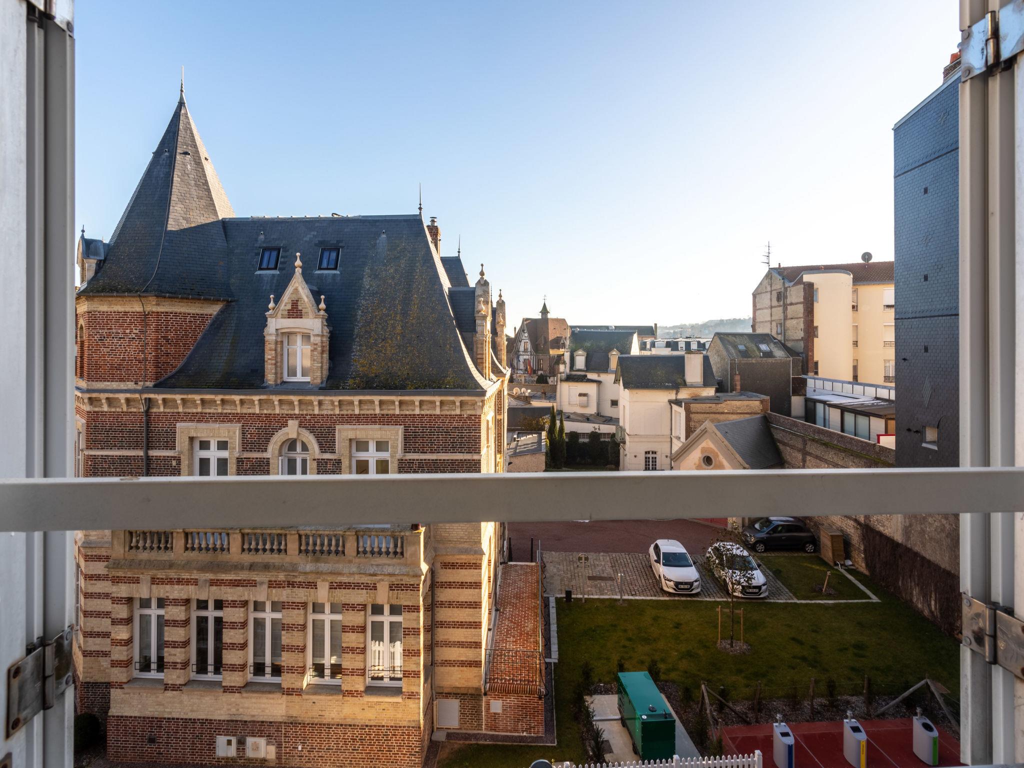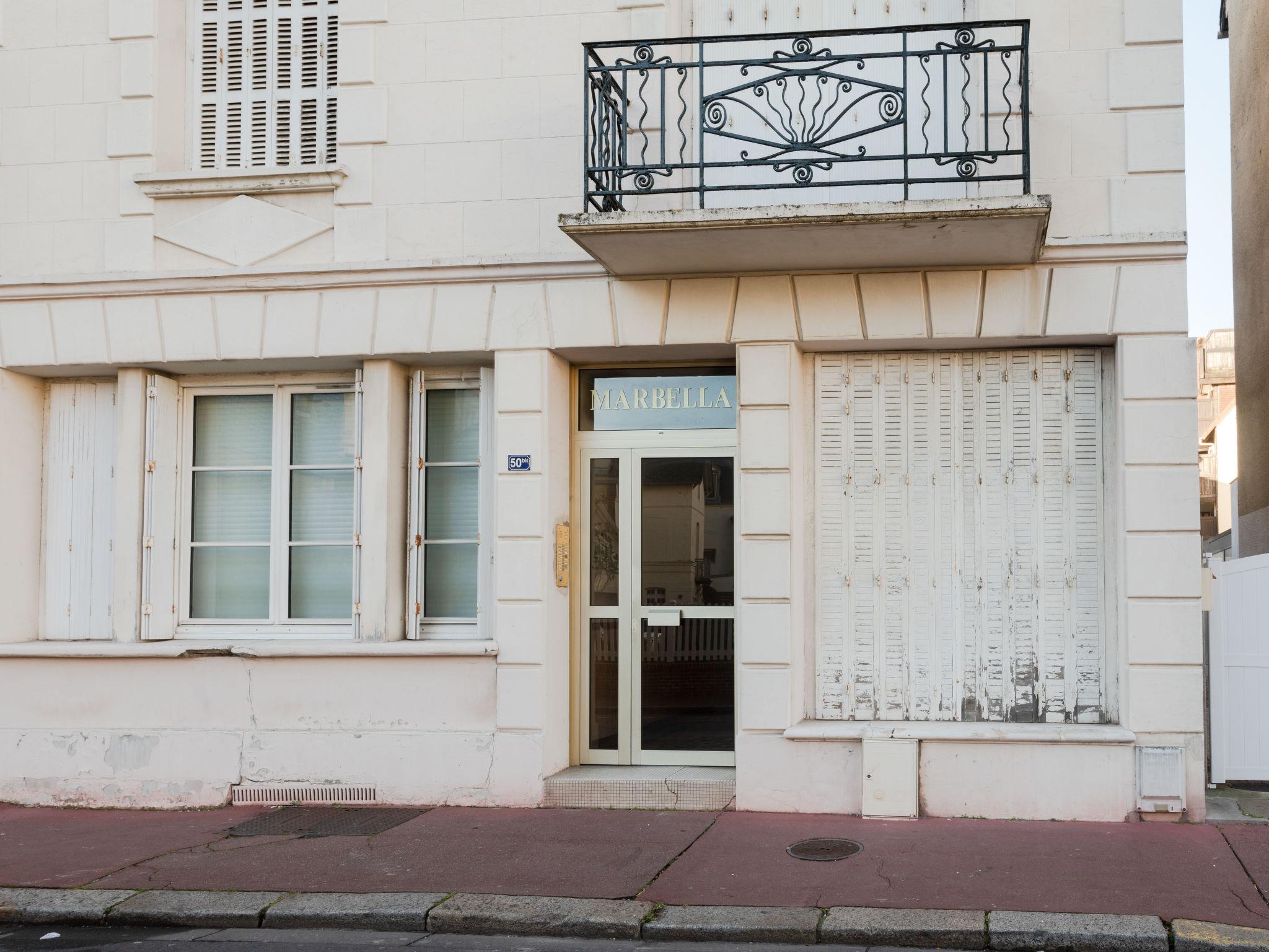 Deauville: Residence "Marbella", 3 storeys. In a central position, 500 m from the sea. Shop 200 m, supermarket 450 m, restaurant 130 m, bakery 400 m, pedestrian zone 200 m, bus stop "Yacht Club - Marché" 500 m, railway station "Deauville - Trouville" 850 m, thermal baths "Thalasso de Deauville" 550 m. Golf course (18 hole) 3 km, minigolf 450 m, riding stable 450 m. Nearby attractions: Hippodrome Deauville La Touques 600 m, Casino de Deauville 350 m, CID Centre Internationale de Deauville 600 m, Honfleur village normand 17 km, Mémorial de Caen 54 km, Plage du débarquement Arromanche 85 km. The keys‘ handover takes place by the agency Interhome in Deauville.
