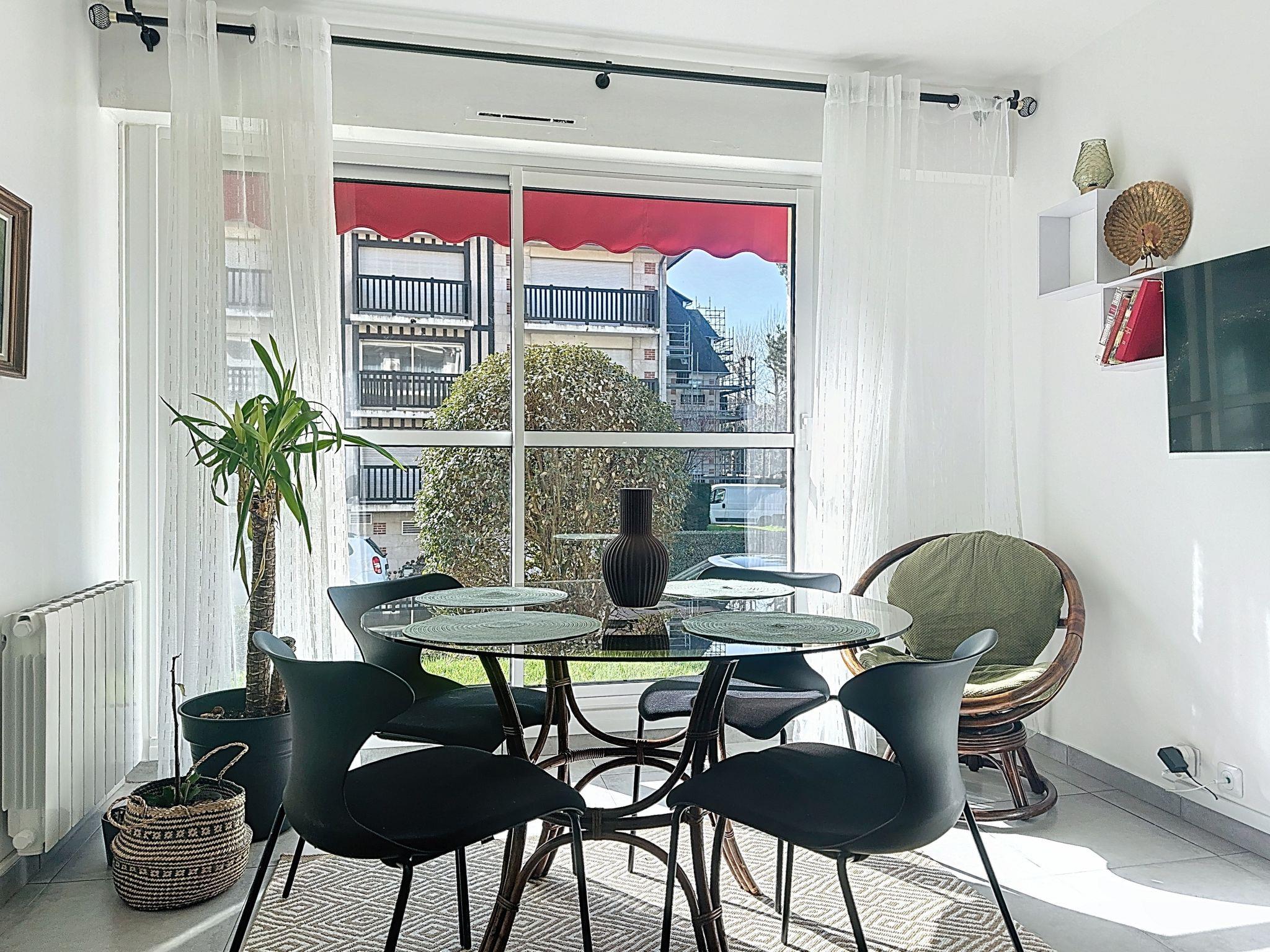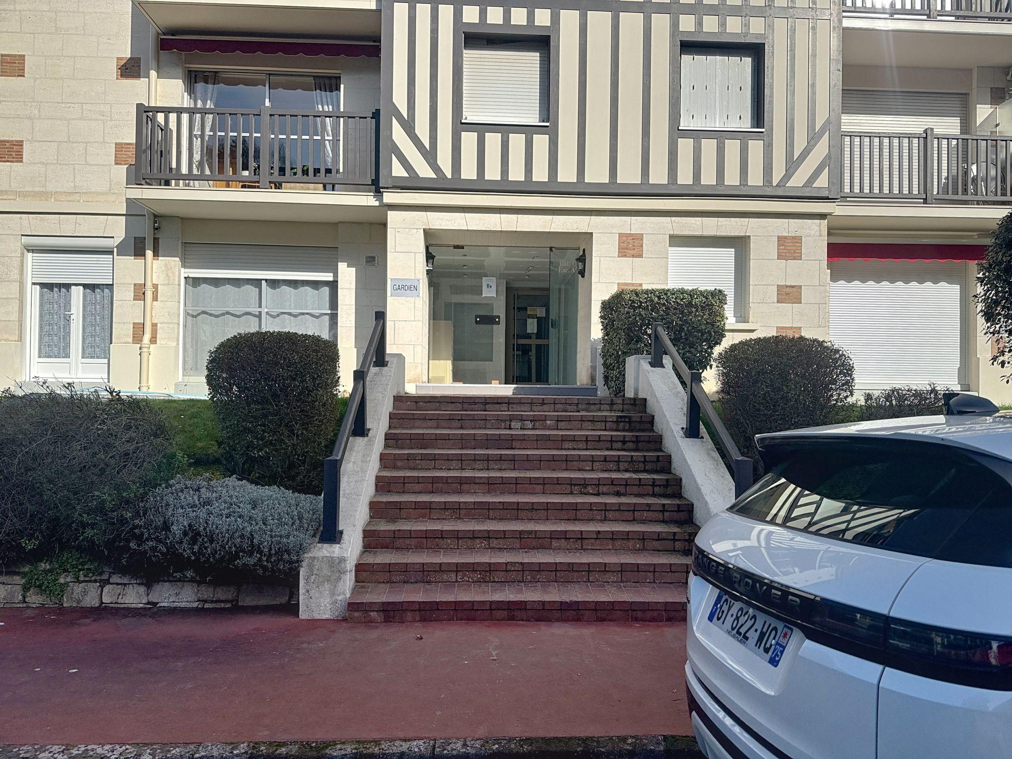 Deauville: Residence "Sand". 450 m from the sea, 450 m from the beach. In the complex: lift. (4 steps). Shop 600 m, grocery, supermarket 350 m, restaurant 600 m, bus stop "Carrefour Tourgéville" 450 m, railway station "Deauville-Trouville" 1.7 km, indoor swimming pool 1 km, thermal baths "Deauville" 1 km. Golf course (18 hole) 3.2 km, tennis 1.3 km, riding stable 1.3 km. Nearby attractions: Centre International Deauville - CID 1.2 km, Hippodrome de Clairefontaine 1.5 km, Mémorial de Caen 51 km, Plage du débarquement d'Arromanches 77 km. The keys‘ handover takes place by the agency Interhome in Deauville.