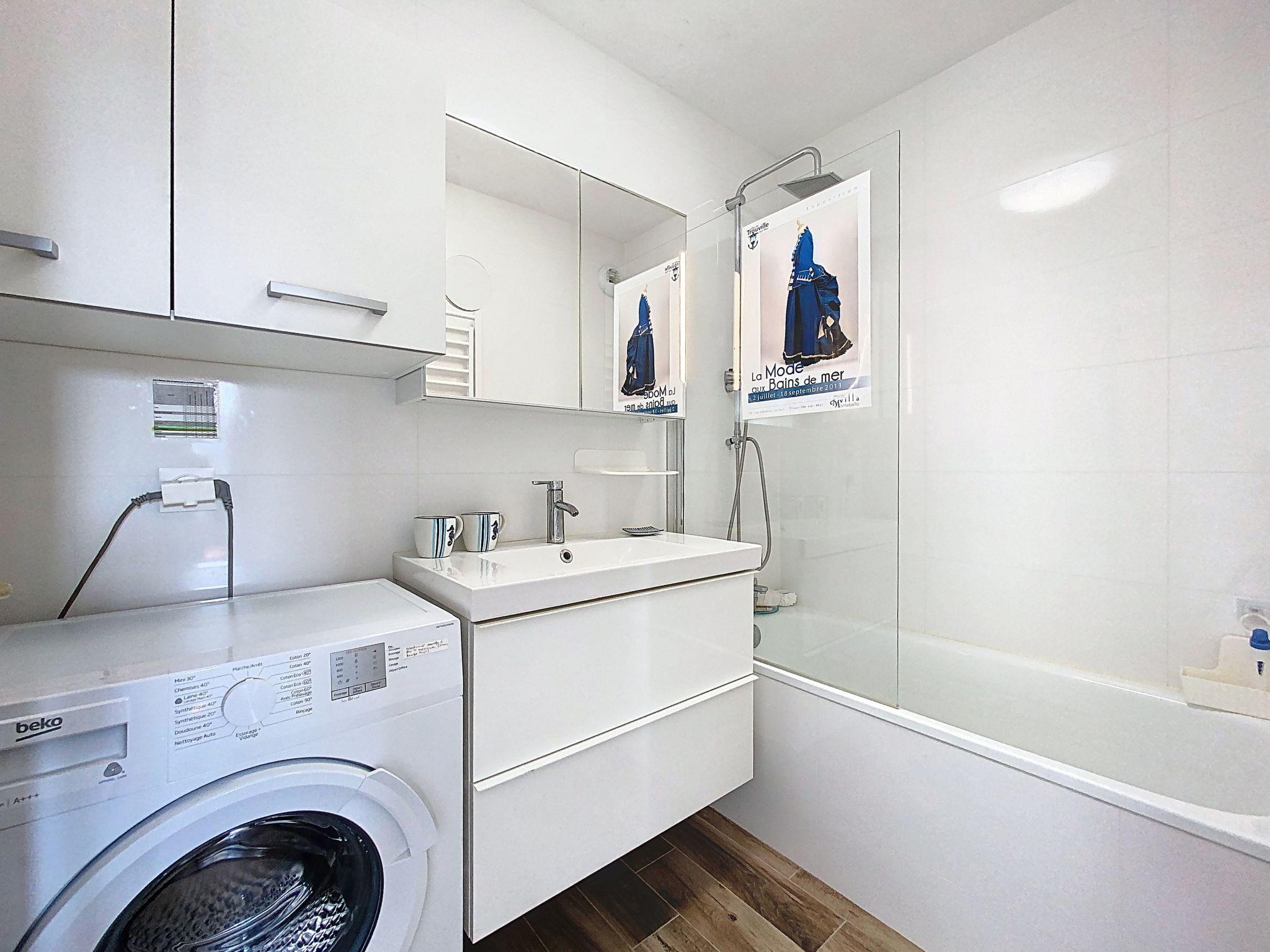 Deauville: Residence "Le Jumping", 5 storeys. In the resort, 1.2 km from the sea, 1.2 km from the beach, south-west facing position. In the house: lift. Grocery 500 m, supermarket 2.4 km, 5 minute walk to the centre, bus stop "Gare routière" 300 m, railway station "Deauville-Trouville" 300 m. Nearby attractions: Yacht Club Deauville 500 m, Centre International Deauville - CID 1.9 km, Hippodrome Deauville - La Touques 1.3 km, Plage du Débarquement d'Arromanches 94 m, Honfleur 16 m. The keys‘ handover takes place by the agency Interhome in Deauville. Offer by a private individual according to Art. 155, IV of CGI.