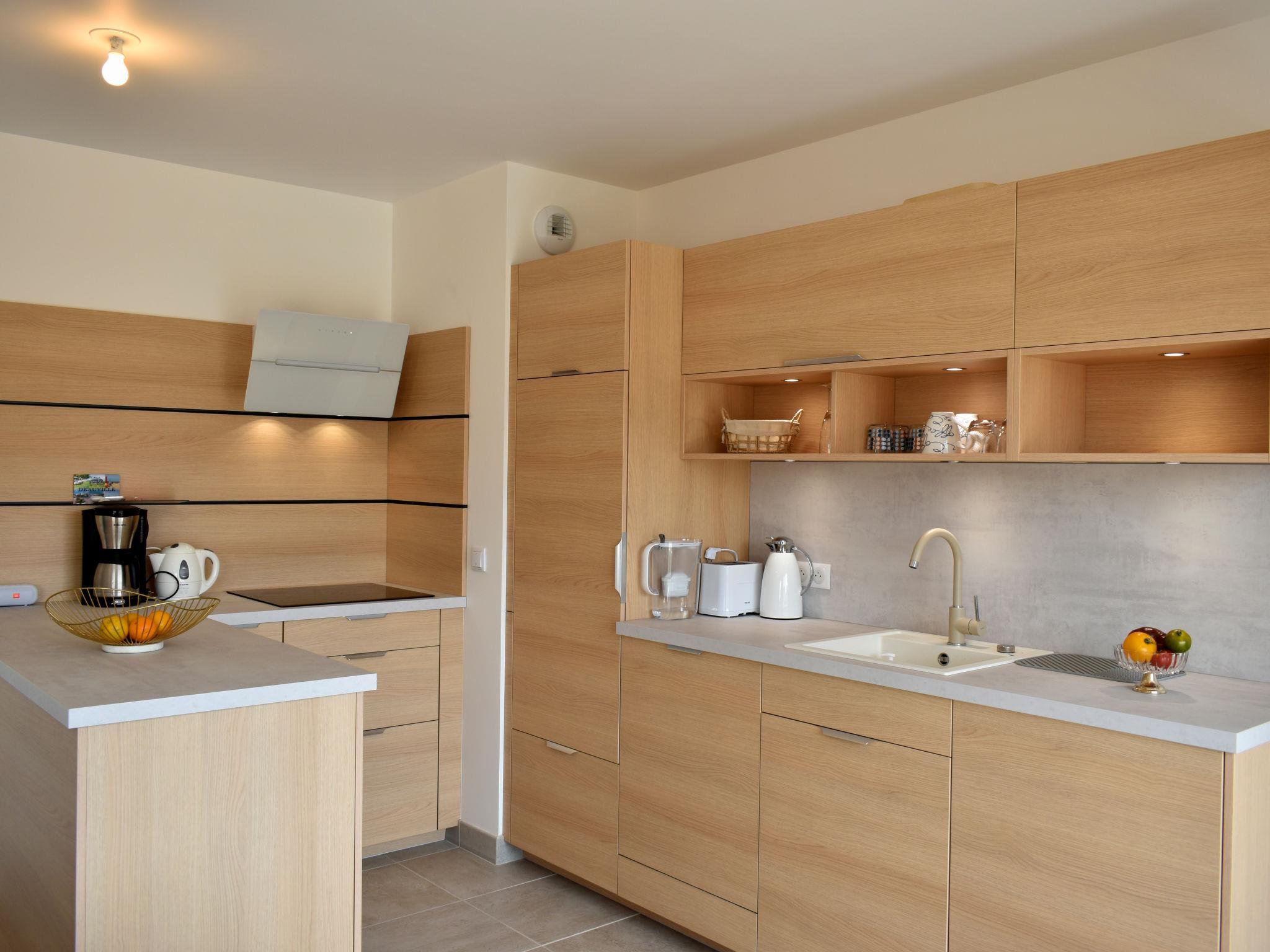 Deauvile: Residence "Les Arts", 4 storeys, built in 2019. In the resort, residential area (villas), 750 m from the sea, 750 m from the beach. In the complex: lift. Supermarket 750 m, restaurant 450 m, bakery 300 m, 5 minute walk to the centre, bus stop "Franciscaines" 150 m, railway station "Deauville-Trouville" 1.4 km, sandy beach 600 m, indoor swimming pool 700 m, thermal baths "Thalasso de Deauville" 700 m. Golf course (18 hole) 2.8 km, tennis 1.3 km. Nearby attractions: Centre Culturel 150 m, Casino de Deauville 1.3 km, CID centre de congrès 850 m, Hippodrome de Deauville La Touques 1.1 km, Mémorial de Caen 43 km, Honfleur village Normand 17 m. The keys‘ handover takes place by the agency Interhome in Deauville.