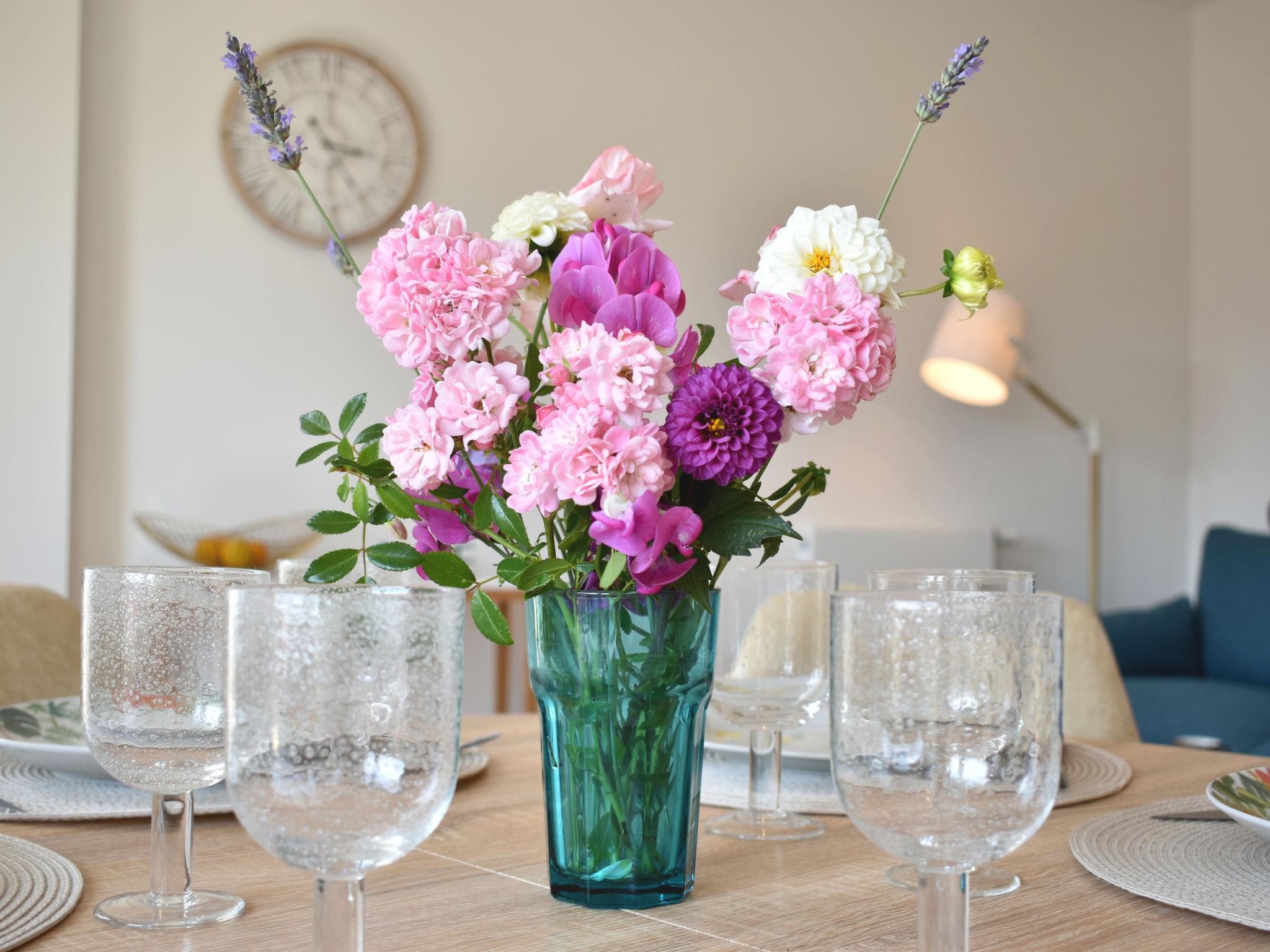 3-room apartment 62 m2 on 2nd floor. Entrance hall. Living/dining room with 1 double sofabed (1 x 140 cm, length 190 cm), TV (flat screen). Exit to the balcony, west facing position. 1 room with 1 french bed (1 x 160 cm, length 200 cm). 1 room with 1 french bed (1 x 140 cm, length 190 cm). Open kitchen (dishwasher, 3 induction hot plates, toaster, kettle, electric coffee machine, combination microwave). Shower, sep. WC. Heating. Balcony furniture. Facilities: washing machine, iron, hair dryer. Internet (WiFi, free). Garage (1 car), height 200 cm, width 280 cm. Please note: non-smokers only. Smoke alarm. 14220000125KB