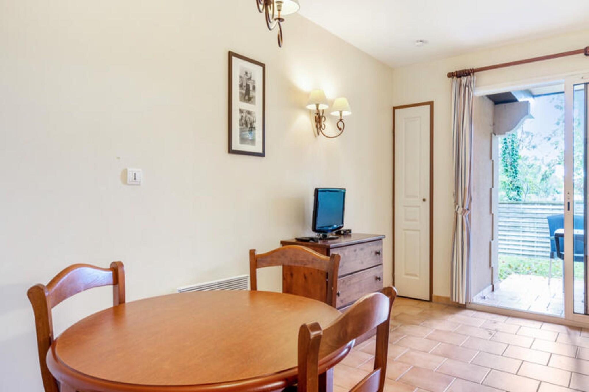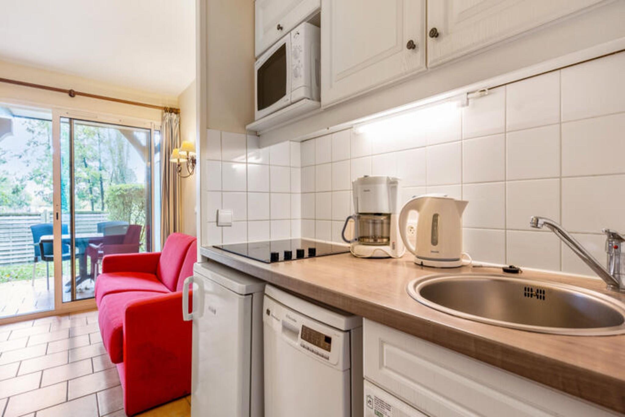 Denne dejlige lejlighed tilbyder et fredfyldt tilflugtssted med sin traditionelle normanniske arkitektur og moderne bekvemmeligheder. Den kan rumme op til fire gæster og har et soveværelse med to enkeltsenge og et opholdsområde med en sovesofa til to. Ejendommen er kæledyrsvenlig mod et ekstra gebyr, hvilket gør det til et godt valg for rejsende med lodne ledsagere. Gæsterne kan nyde en privat balkon, gratis overdækket parkering og adgang til en opvarmet swimmingpool og soppebassin, som er tilgængelig fra 1. maj til 15. september. Beliggende i et roligt, grønt miljø støder boligen op til den prestigefyldte Lucien Barrière-golfbane og byder på maleriske omgivelser. Gæsterne er kun 2,5 km fra det ikoniske Deauville "Planches" og det pulserende Casino Barrière, hvor de kan nyde spil, shows eller en livlig atmosfære. Deauville-La Touques Hippodrome er i nærheden, hvilket giver en unik mulighed for at overvære hestevæddeløb, især om sommeren. Udforsk Deauvilles charmerende caféer, markeder og kulturelle steder, alle inden for rækkevidde. Lejligheden er omhyggeligt designet med et åbent køkken udstyret med moderne apparater, herunder køleskab og madlavning, der problemfrit smelter ind i stue og spisestue. Badeværelset har badekar, og der er separat toilet for ekstra bekvemmelighed. Yderligere tjenester såsom Wi-Fi, babyudstyr og sengetøj er tilgængelige mod et ekstra gebyr, hvilket sikrer et behageligt og problemfrit ophold.