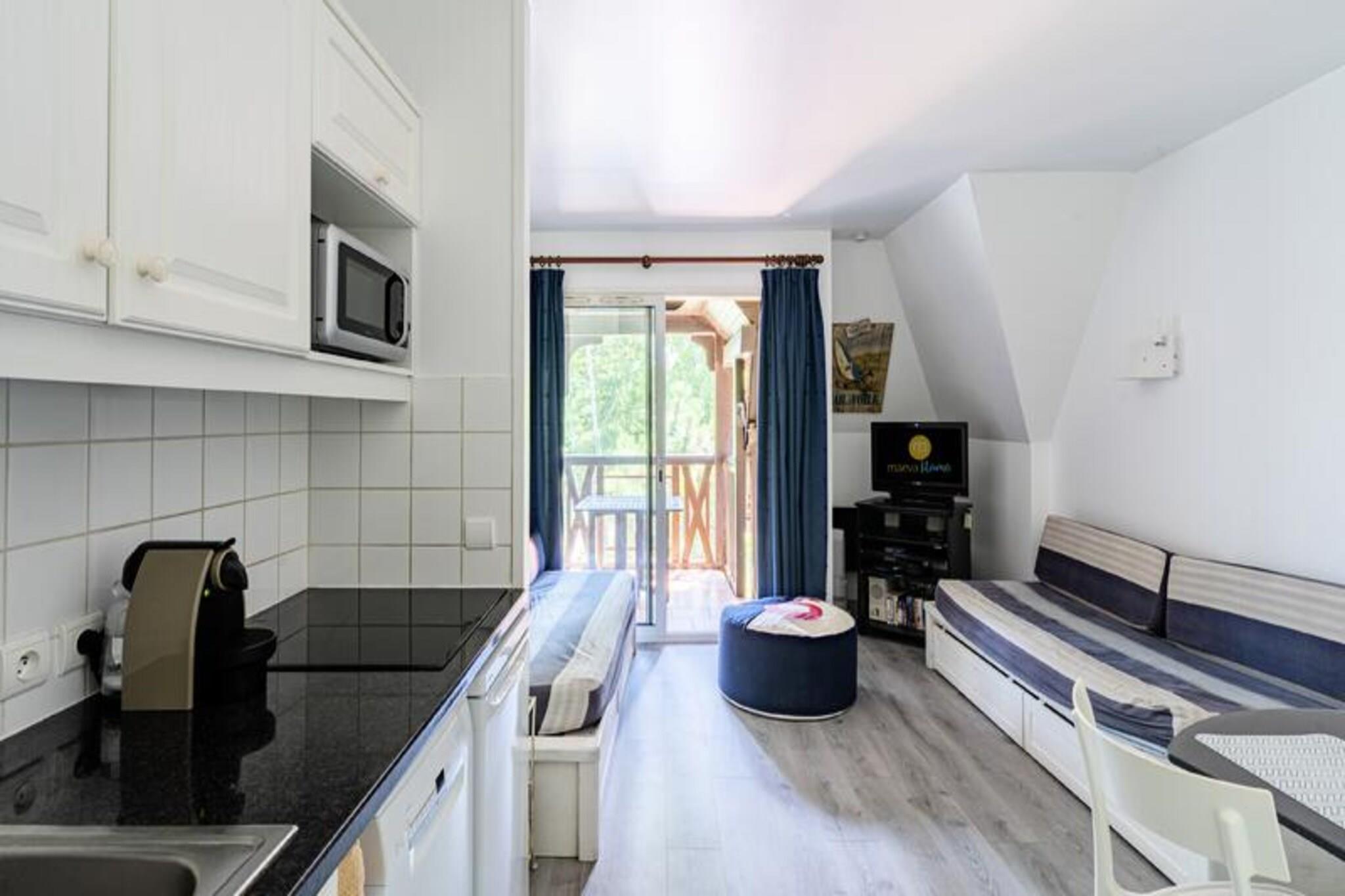 Denne charmerende lejlighed er beliggende i rolige og grønne omgivelser på højderne af Deauville, og tilbyder et behageligt ophold for op til 4 personer. Ejendommen har et soveværelse med en dobbeltseng og en stue med en trilleseng og en enkelt sovesofa. Gæsterne kan nyde bekvemmeligheden ved en balkon, privat overdækket parkering og nem adgang til den opvarmede udendørs swimmingpool (åben fra 1. maj til 15. september). Boligen er kæledyrsvenlig, så du kan tage dine lodne ledsagere med dig. Beliggende kun 2,5 km fra den berømte Deauville "Planches", er ejendommen ideelt placeret til at udforske området. Besøg det ikoniske Casino Barrière for underholdning, spil og shows, eller nyd hestevæddeløbene på den nærliggende Deauville-La Touques Hippodrome. Byens centrum, med dets charmerende caféer, butikker og markeder, er en kort køretur væk, og tilbyder en blanding af kultur og afslapning. Til en stranddag eller udendørsaktiviteter er beliggenheden også inden for rækkevidde af kysten. Lejligheden er fuldt udstyret med et køkken i amerikansk stil, herunder en spiseplads med plads til 4, perfekt til hjemmelavede måltider. Badeværelset er komplet med badekar, elektrisk håndklædetørrer, hårtørrer og et separat toilet for ekstra komfort. Yderligere faciliteter inkluderer muligheden for at leje babyudstyr, Wi-Fi-adgang (mod et tillæg) og en obligatorisk slutrengøring. Uanset om du er her for fritid eller forretning, tilbyder denne lejlighed en hyggelig og veludstyret base for dit ophold.