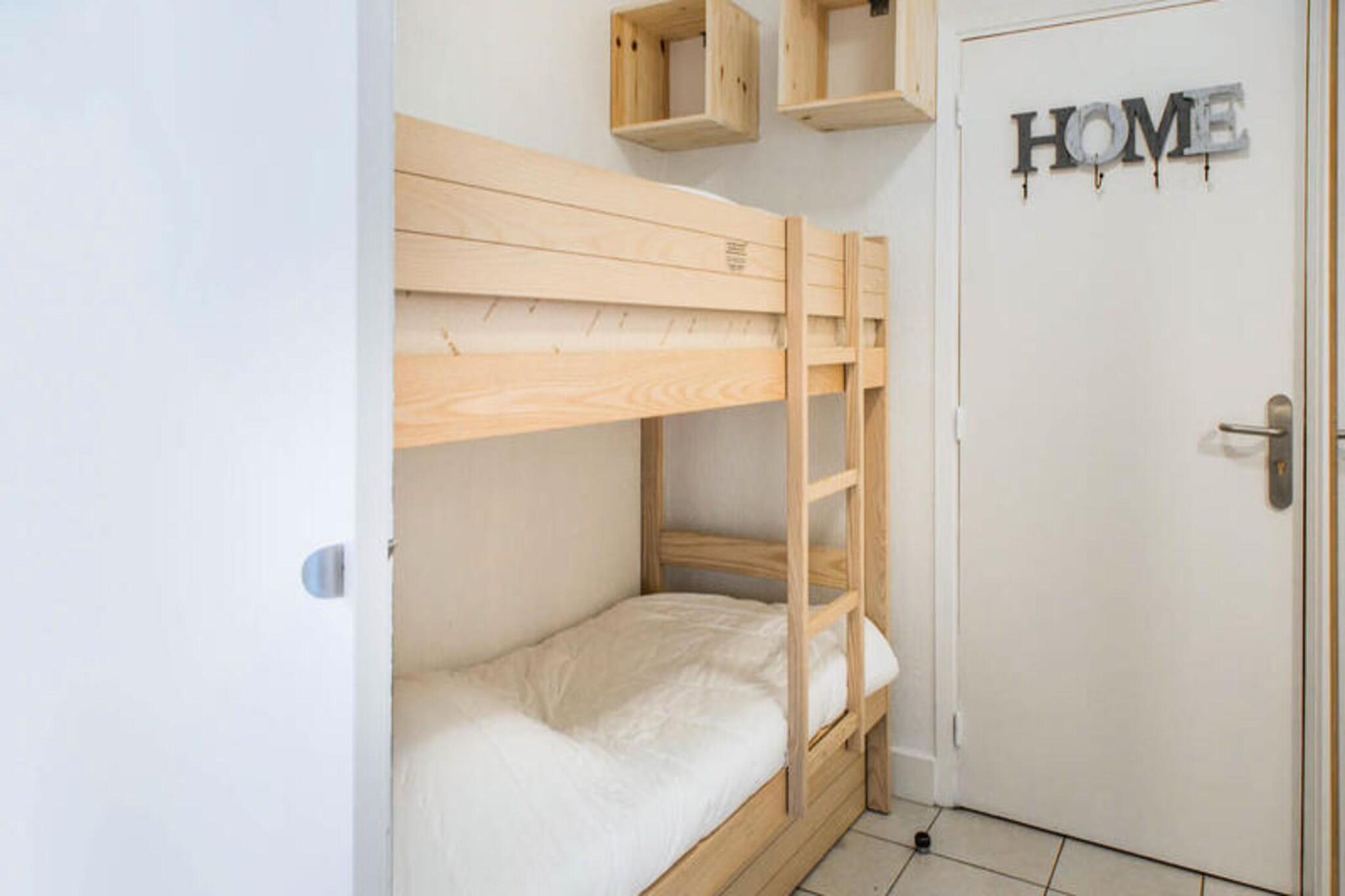 Denne charmerende lejlighed kan rumme op til 4 gæster med en sovesofa i stuen (sover 2) og et kabineområde med 1 køjeseng. Ejendommen er kæledyrsvenlig, men gæster rådes til at forespørge direkte for yderligere detaljer. Det omfatter også en møbleret balkon med 2 stole og en vogn til udendørs afslapning. Lejligheden er designet til komfort, med rigelig opbevaringsplads og et tv til underholdning. Beliggende på et førsteklasses sted, er boligen kun 250 meter fra Deauvilles berømte strand, "Les Planches" og de pulserende lokale butikker. Gæsterne kan nyde det bedste fra både byen og havet, med nem adgang til den livlige Deauville strandpromenade samt nærliggende caféer og markeder. Området byder på en perfekt blanding af fritidsaktiviteter, charme ved havet og lokal kultur. Lejligheden har et hyggeligt køkkenområde åbent til stuen, som tilbyder bekvemmeligheden ved at tilberede dine måltider under dit ophold. Badeværelset er udstyret med badekar og toilet, hvilket giver komfort og privatliv. Yderligere faciliteter inkluderer en raclettemaskine, babykit (afhængigt af tilgængelighed) og forskellige tjenester til at forbedre gæstens oplevelse, såsom sengelinned og rengøringsmuligheder.