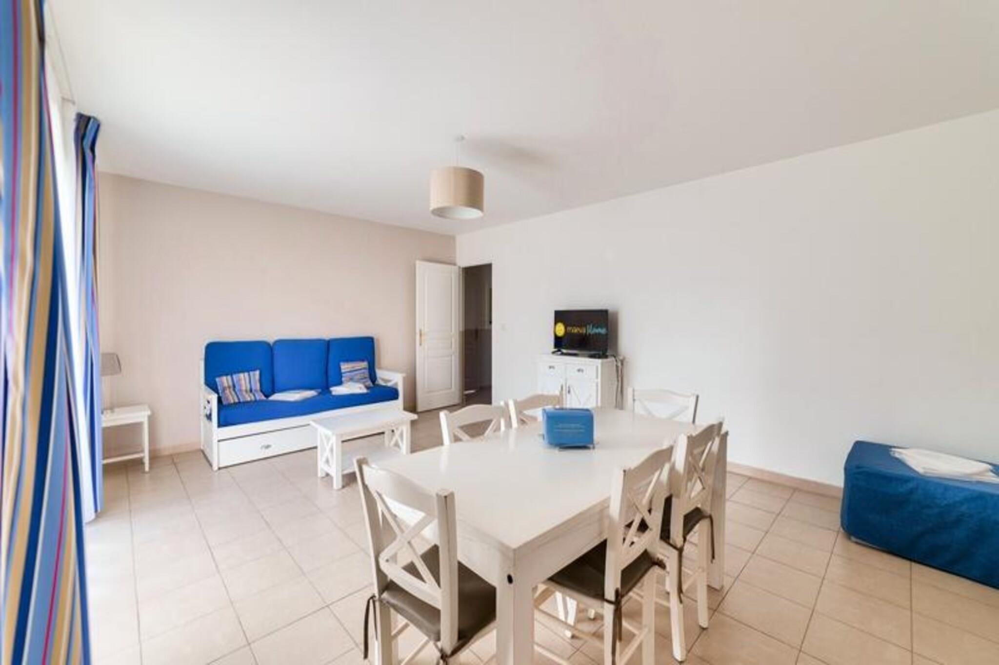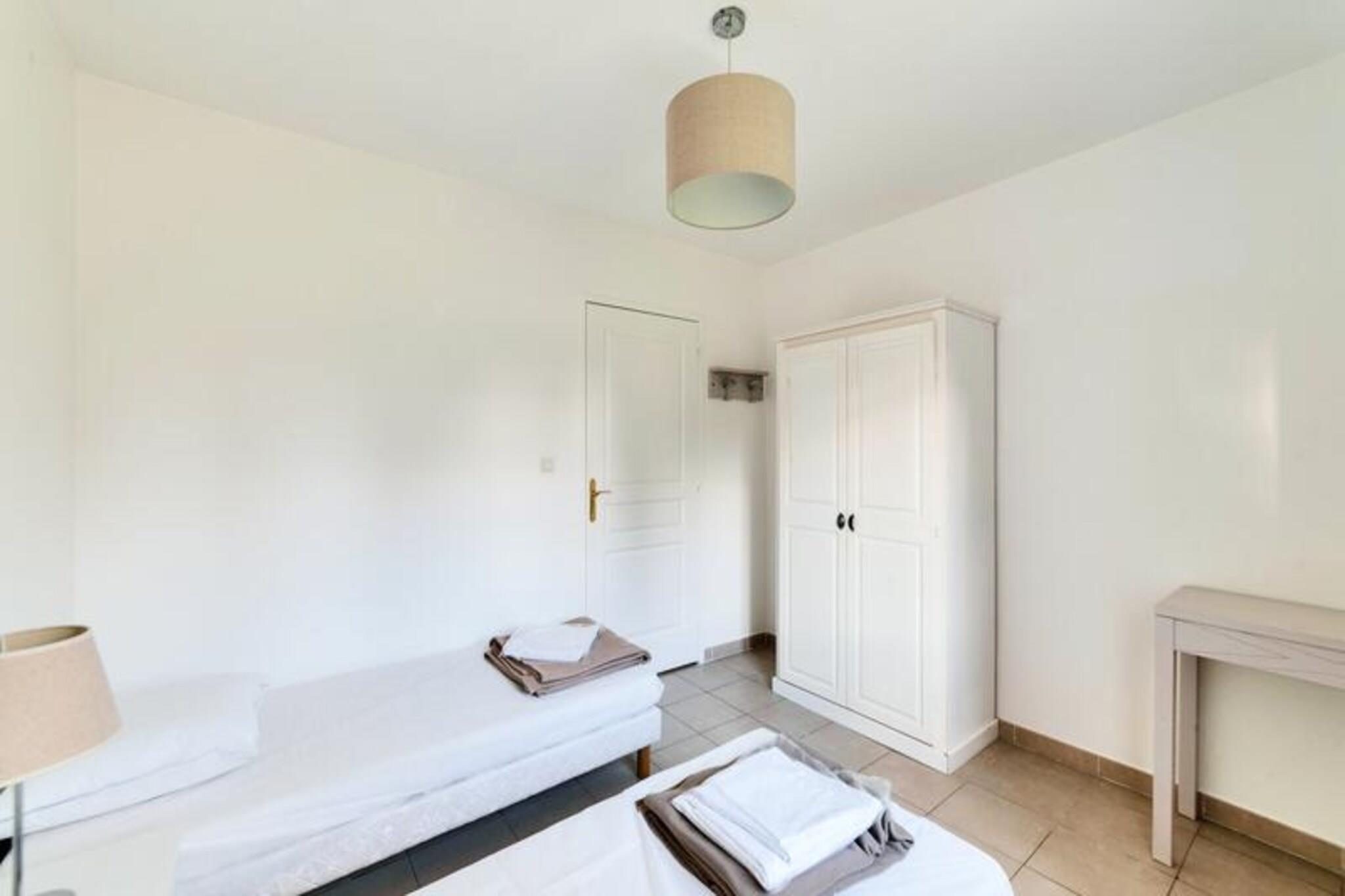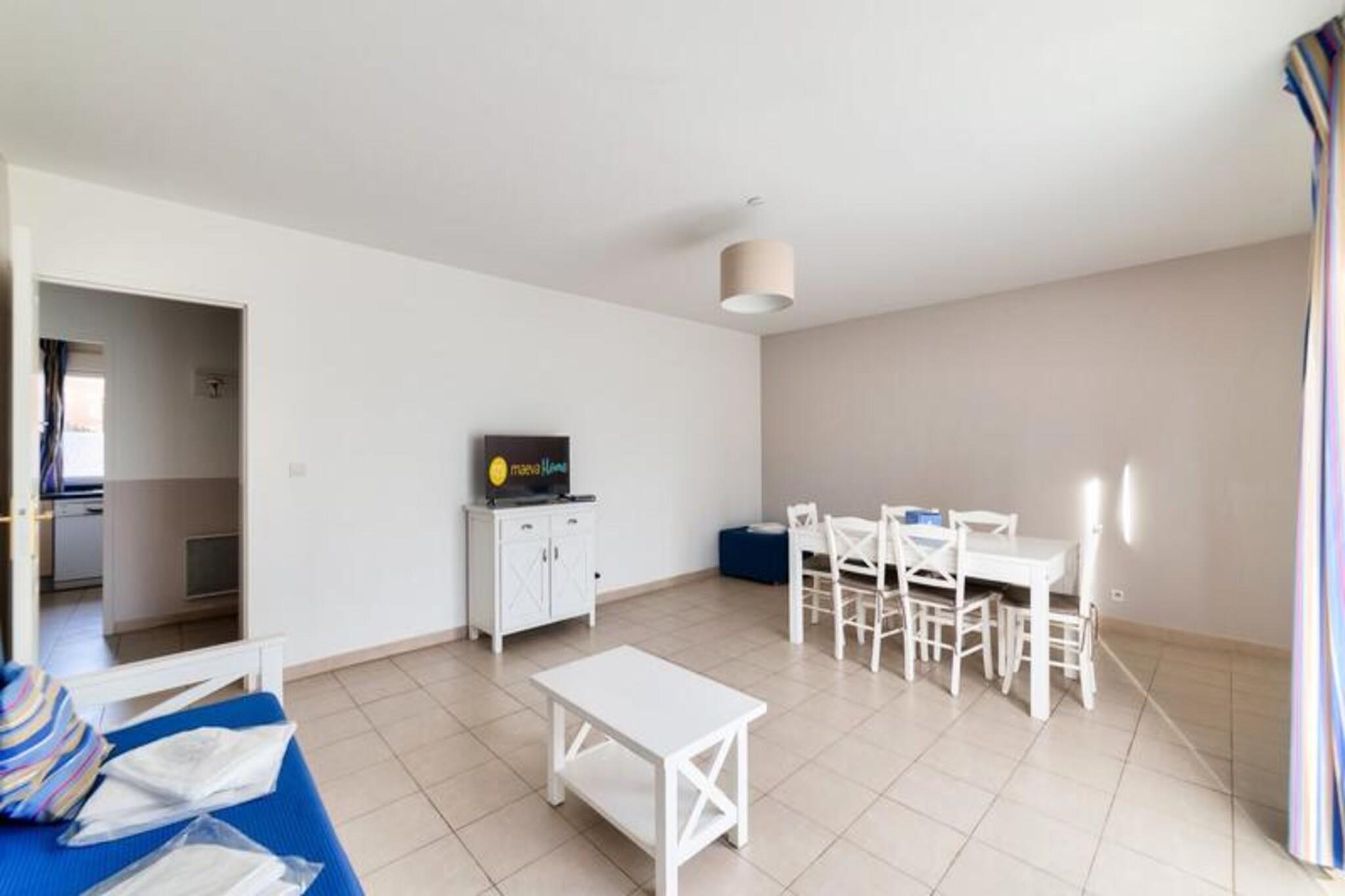 Denne lejlighed på 66 m² er beliggende i stueetagen i en bolig med en opvarmet indendørs swimmingpool (åben juli-august) og en multisportsbane i Saint Arnoult, Normandiet. Det kan rumme op til seks gæster og har en stue med en daybed, et køkken, to soveværelser, et badeværelse, et toilet og en udækket terrasse med privat parkering. Politikker for kæledyr er ikke specificeret. Ejendommen er beliggende i en rolig og fredfyldt beliggenhed, 3 km fra stranden, supermarkeder, butikker og restauranter. For dem, der kan lide udendørs aktiviteter, er et ridecenter og en golfbane 1 km væk. Deauville-La Touques Hippodrome, som ofte afholder hestevæddeløb om sommeren, er også i nærheden. Selve Deauville med sine strande, luksusbutikker og kasino ligger kun få kilometer væk. Lejligheden indeholder køkken, badeværelse, toilet og terrasse. Fjernsyn er ikke tilgængeligt på grund af et nyligt antenneproblem. Sengelinned, håndklæder, trådløs internetadgang og slutrengøring er alle tilgængelige mod et ekstra gebyr. Der kræves et depositum på EURO600.