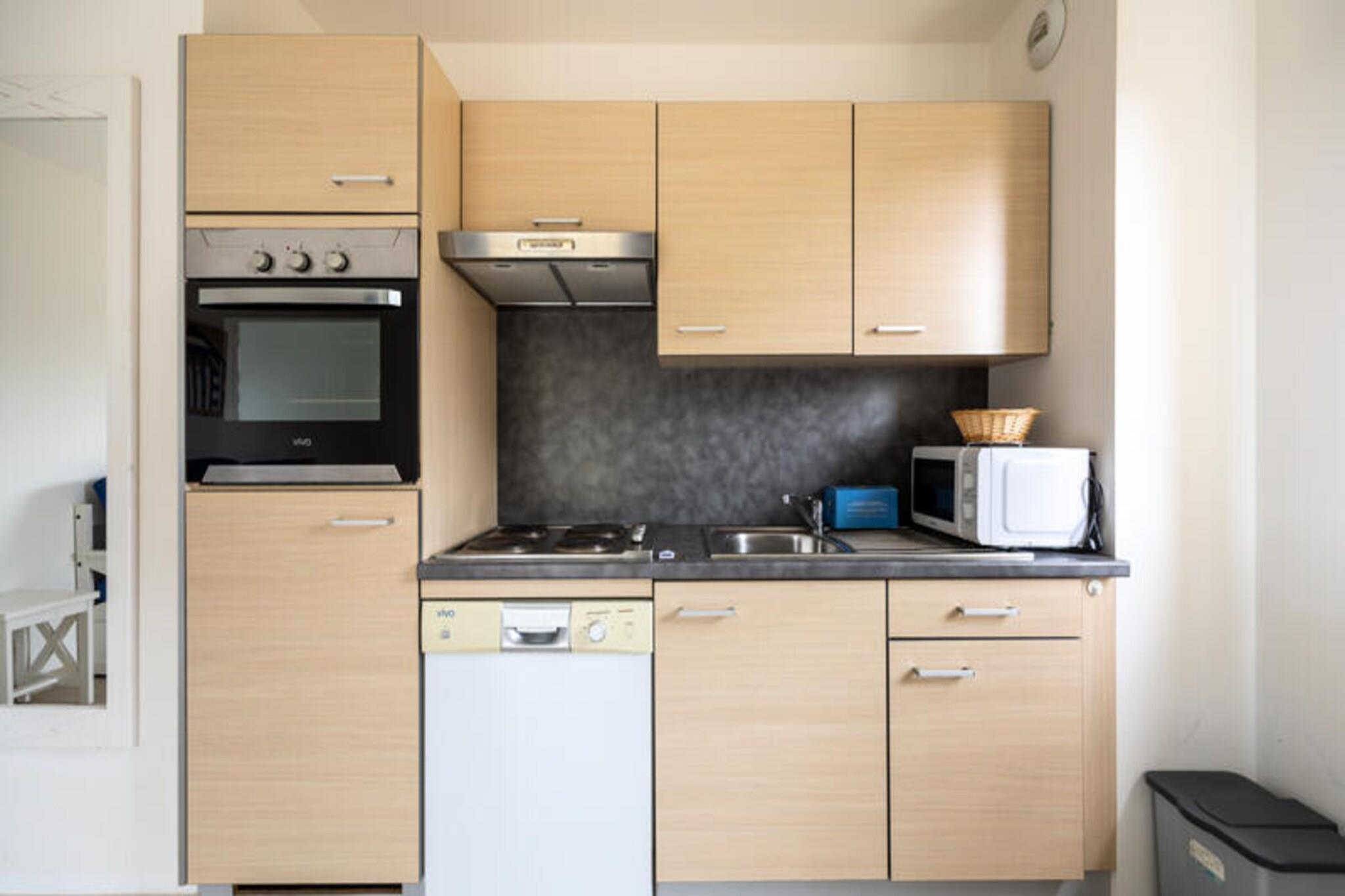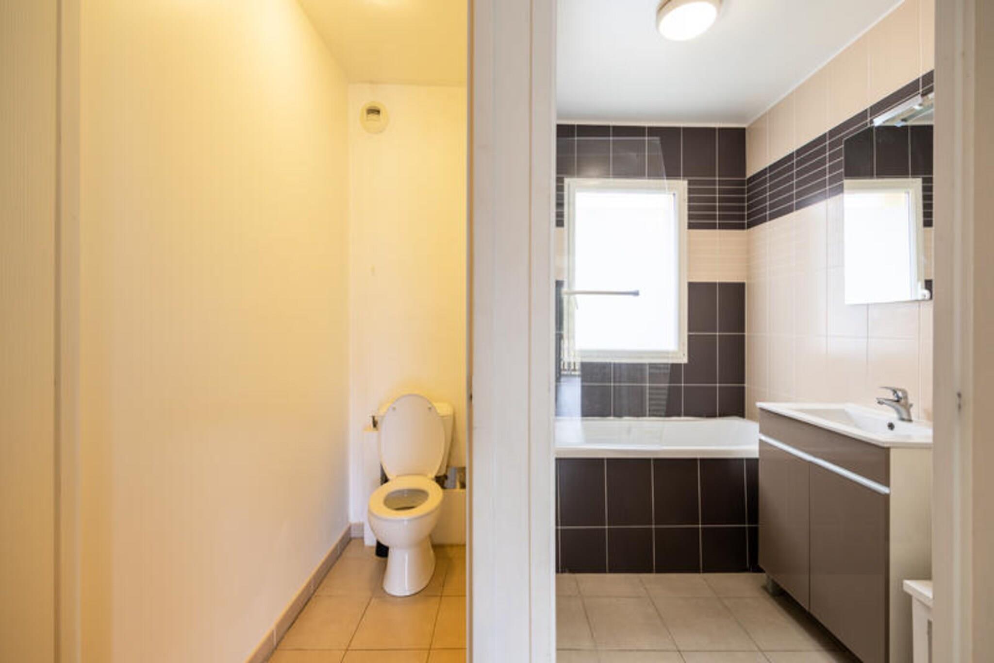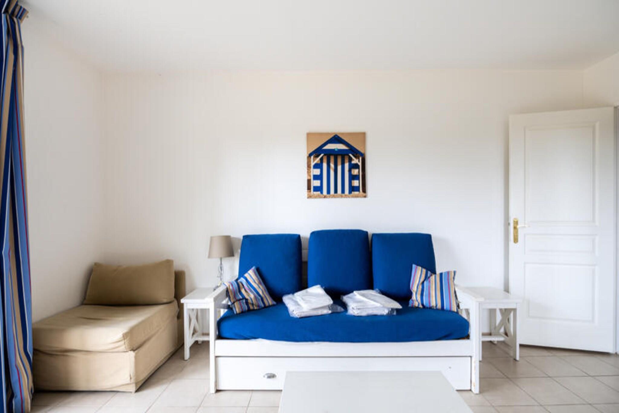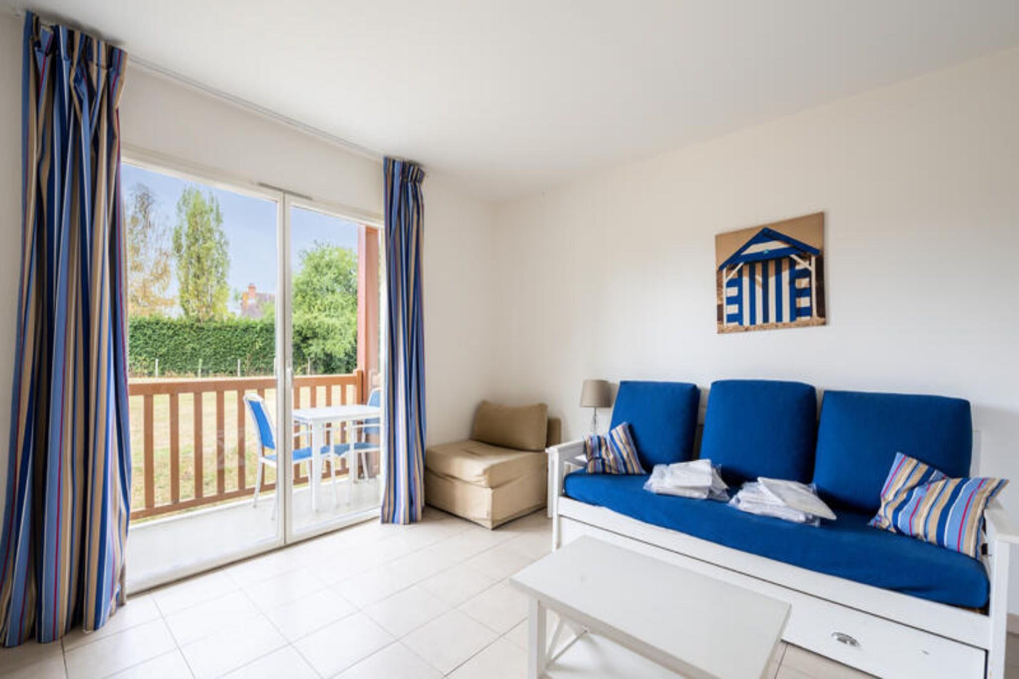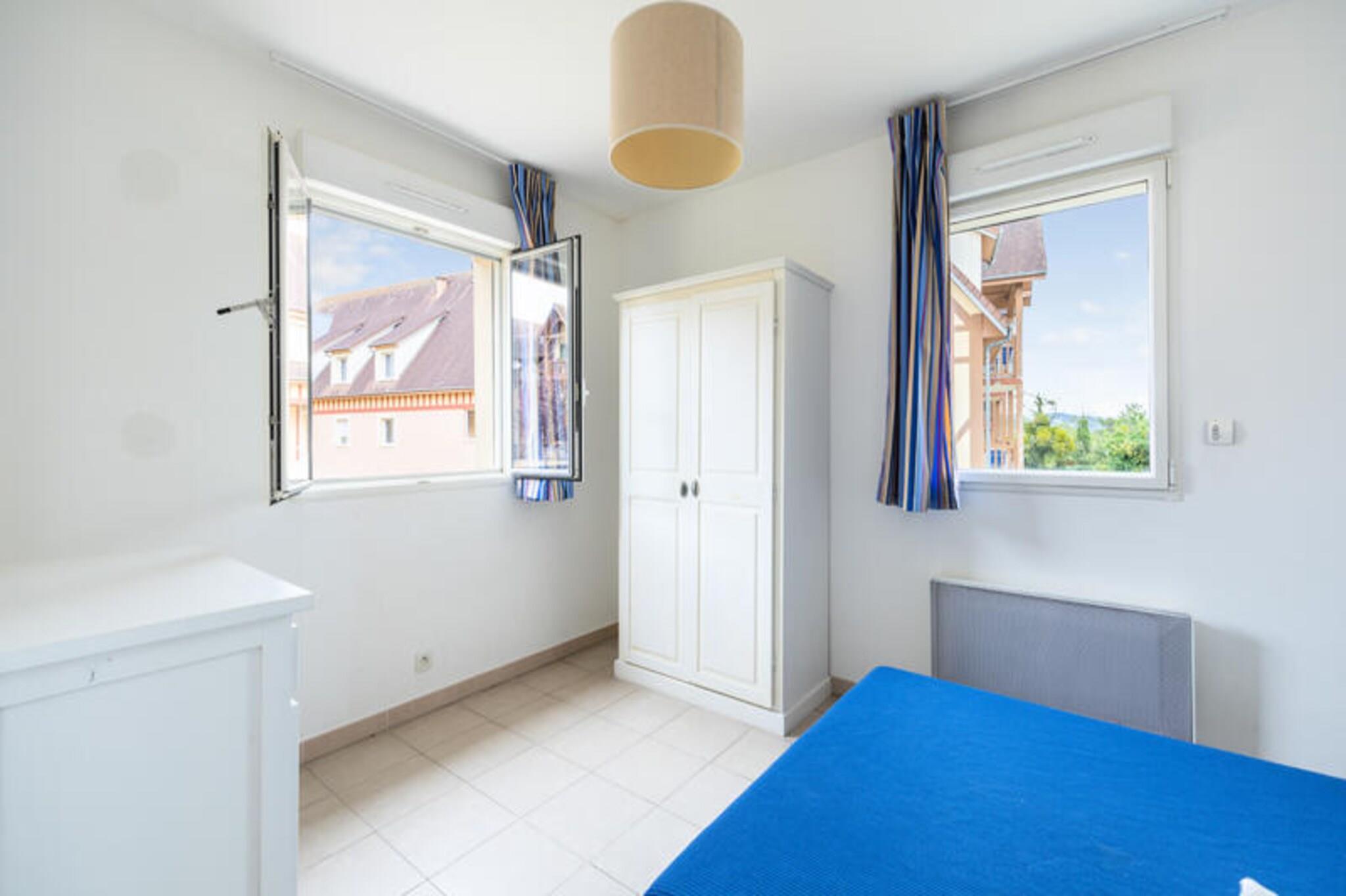 Denne charmerende lejlighed ligger i et fredeligt boligområde og er ideel til op til 4 personer. Indkvarteringen omfatter et komfortabelt soveværelse med dobbeltseng og en stue med udtræksseng og dagseng. Lejligheden er ikke kæledyrsvenlig, hvilket sikrer et roligt miljø for gæsterne. Den sydvendte terrasse byder på en dejlig plads til udendørs afslapning. Ejendommen ligger kun 3 km fra stranden og er omgivet af forskellige attraktioner. De berømte "Planches" i Deauville ligger kun 2,5 km væk, perfekt til en spadseretur langs kysten. For dem, der nyder naturen, byder Touques-dalen på fuglekikkeri og naturskønne udsigter. Deauville-La Touques Hippodrome, 2 km derfra, afholder jævnligt spændende hestevæddeløb. Derudover er boligen tæt på supermarkeder, butikker og restauranter, der giver alt det væsentlige til dit ophold. Lejligheden har et fuldt udstyret køkken og et badeværelse med badekar. Et separat toilet tilføjer bekvemmelighed, og der er en overdækket parkeringsplads til rådighed for gæsterne. I boligen kan du nyde den opvarmede indendørs swimmingpool (åben juli-august) og et separat soppebassin. Multisportsbanen er også perfekt til familieaktiviteter og fritid.