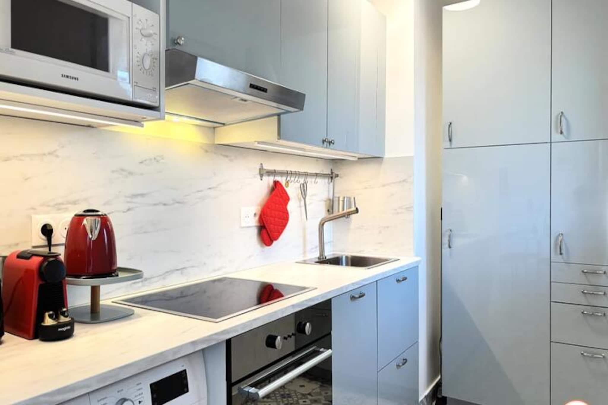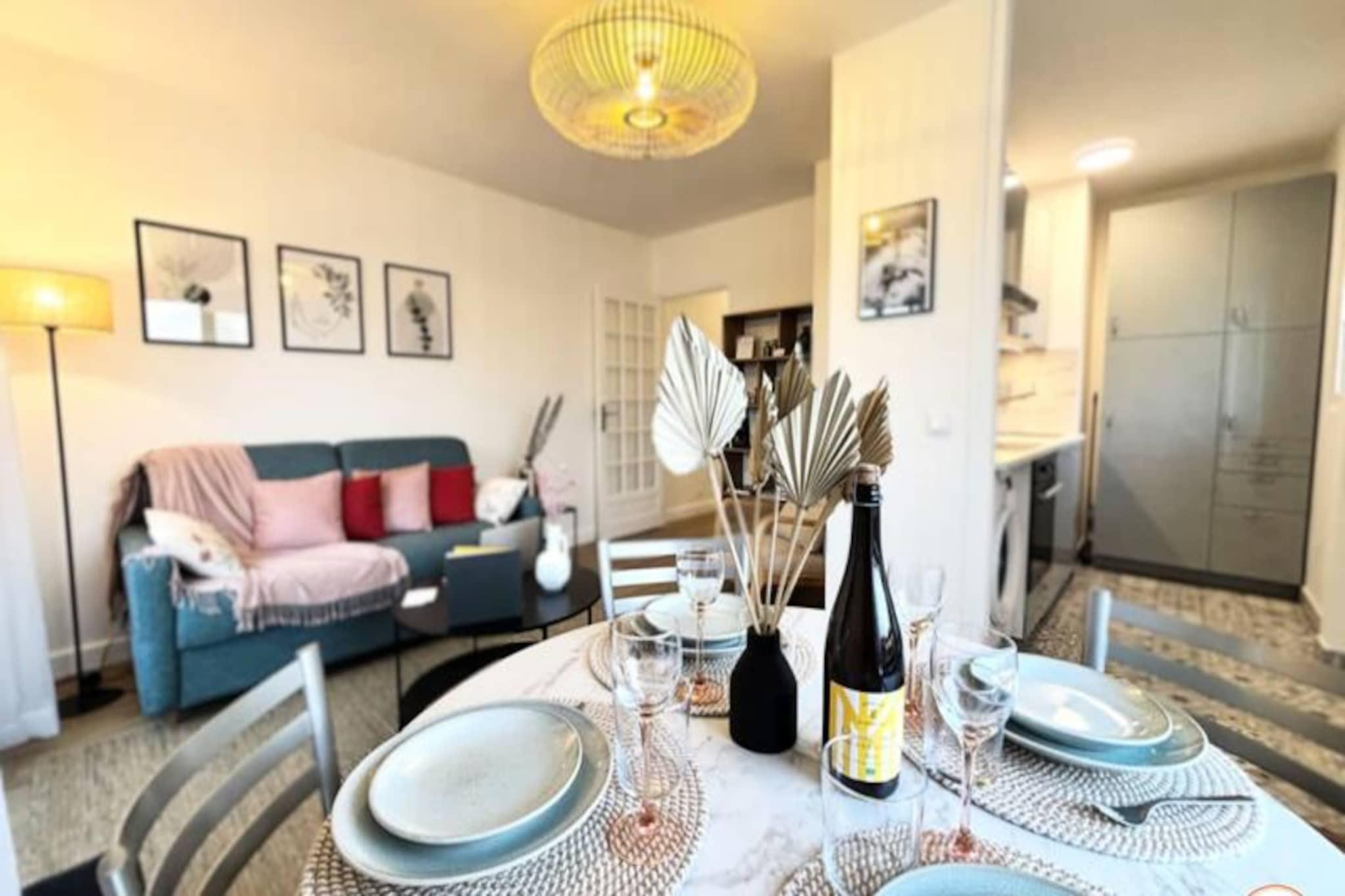 Vågn op til Normandiets charme i denne smukt renoverede lejlighed med et soveværelse, perfekt beliggende på Deauville-halvøen. Med en betagende panoramaudsigt over kajerne i Trouville-sur-Mer tilbyder dette rolige tilflugtssted en harmonisk blanding af moderne komfort og tidløs elegance. Kun 2 minutters gang fra togstationen er det et ideelt fristed for rejsende, der søger både bekvemmelighed og ro. Uanset om du planlægger en romantisk ferie eller en afslappende ferie med venner, lover denne lejlighed et uforglemmeligt ophold. Træd indenfor og oplev et gennemtænkt designet rum med plads til op til fire gæster. Opholds- og spisestuen kan prale af en sovesofa i høj kvalitet og et UHD Smart TV, perfekt til hyggelige aftener eller Netflix-maratoner. Det halvåbne køkken er fuldt udstyret og inviterer dig til nemt at tilberede lækre måltider. Det elegante soveværelse med en blød queensize-seng åbner ud til en privat balkon, hvor du kan nyde den fantastiske udsigt. Badeværelset, selvom det er kompakt, tilbyder alt det nødvendige for en forfriskende start på dagen. Beliggende kun en kort gåtur fra de pulserende bymidter i Deauville og Trouville, vil du blive fordybet i regionens charme. Udforsk sandstrandene, prøv lykken på de nærliggende kasinoer, eller nyd de lokale kulinariske lækkerier. For dem, der tager længere, giver tog- og busstationerne nem adgang til Honfleur, Caen og Le Havre. Med sin moderne indretning, dobbelte balkoner og en række faciliteter, herunder gratis Wi-Fi, en Nespresso-maskine og en privat garage, er denne lejlighed din port til det bedste af Normandiet. Uanset om du er her for at slappe af eller udforske, gør den panoramaudsigt og den centrale beliggenhed dette til et perfekt valg til din næste ferie.