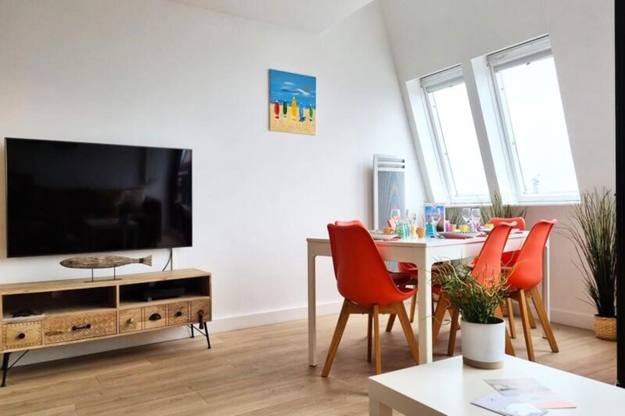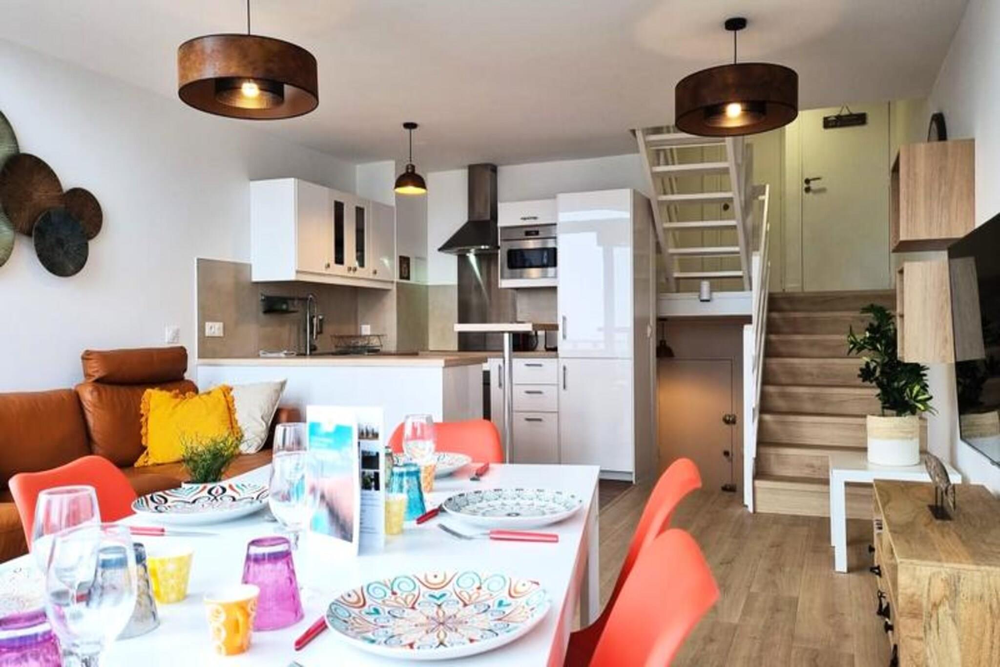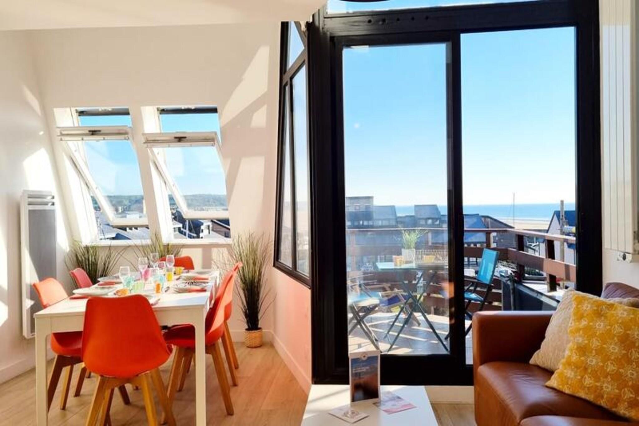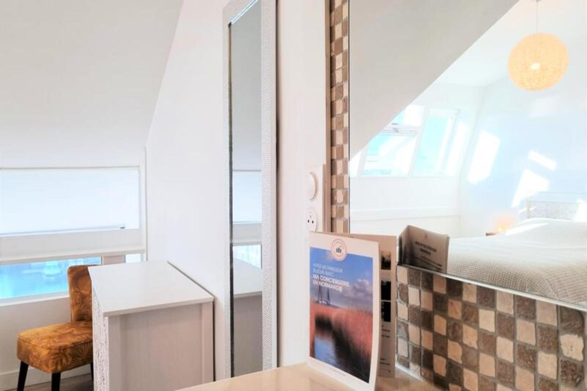 Denne elegante triplex i hjertet af Deauvilles lystb?dehavne tilbyder en betagende udsigt over land og hav. Lejligheden sp?nder over tre niveauer og rummer op til seks g?ster med tre queen-size sovev?relser, herunder et med en fantastisk havudsigt. To moderne badev?relser og en rummelig opholdsstue med et Smart TV sikrer komfort for alle. Altanen/terrassen giver et idyllisk sted at slappe af, mens det fuldt udstyrede ?bne k?kken g?r madlavning til en forn?jelse. Senget?j og h?ndkl?der, gratis WiFi, en vaskemaskine og en opvaskemaskine er inkluderet for din bekvemmelighed. Ejendommen har en perfekt beliggenhed, kun fem minutters gang fra Deauvilles centrum og kasino. Udforsk den maleriske fiskerihavn, n?rliggende strande og pulserende caf?er, der definerer omr?dets charme. Deauville-Trouville SNCF-stationen er en kort 10-minutters g?tur, som tilbyder nem adgang til lokale attraktioner. Denne sikre, luksusbolig sikrer fred og ro, mens du stadig placerer dig i hjertet af handlingen. Yderligere faciliteter omfatter strygefaciliteter, privat udend?rs parkering efter anmodning og en rolig atmosf?re perfekt til afslapning. Morgenmad er ikke inkluderet, men n?rheden til lokale markeder og bagerier g?r spisemuligheder rigelige. G?ster bedes venligst respektere stille timer mellem kl. og kl. 07.00 for at bevare det fredfyldte milj?. Din v?rt vil v?re tilg?ngelig under hele dit ophold, hvilket sikrer en problemfri og behagelig oplevelse.