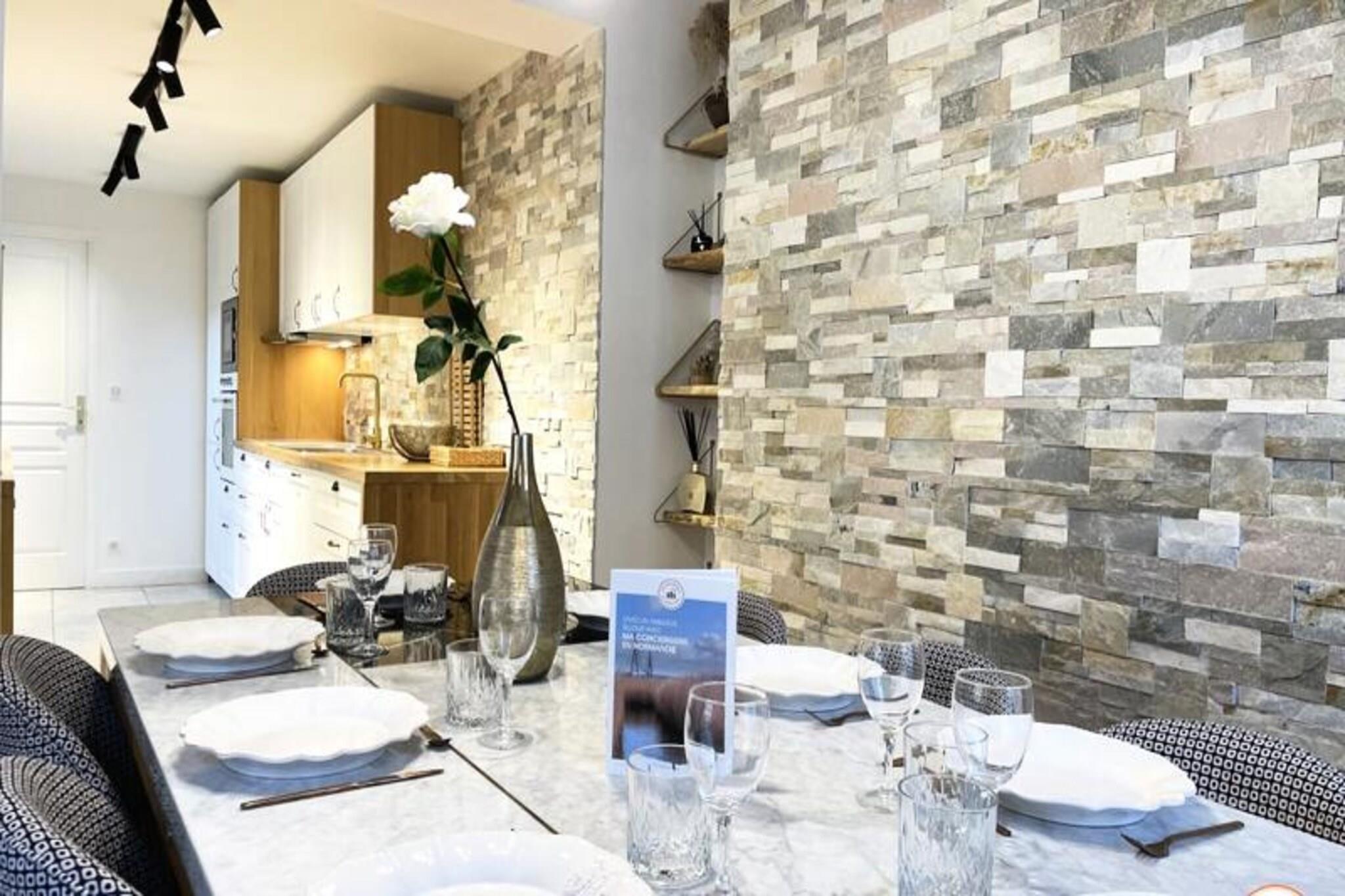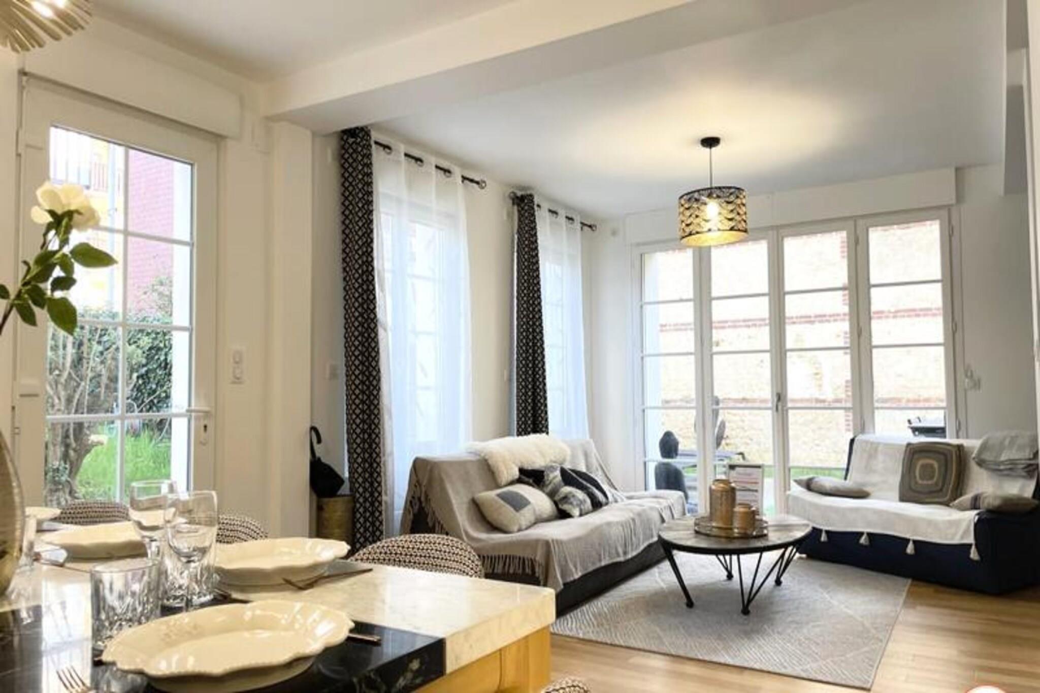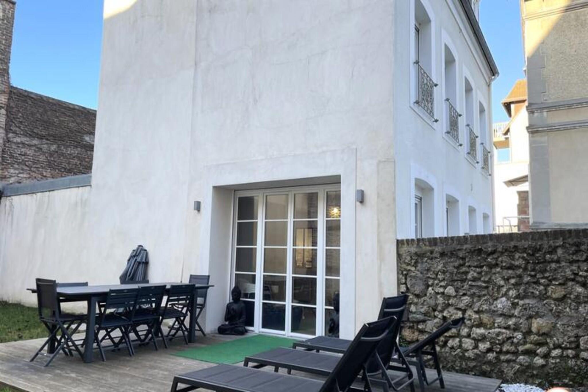 Denne fantastiske villa, der ligger kun f? skridt fra Place Morny og stranden, tilbyder et ideelt tilflugtssted for familier eller grupper p? op til 10 personer. Villaen er fordelt p? to etager og har fem rummelige sovev?relser, hvoraf fire har private badev?relser. Indkvarteringen omfatter et fuldt udstyret k?kken, en hyggelig stue med et Smart TV (Netflix-adgang) og en spisestue, der komfortabelt kan rumme 10 personer. Den udend?rs have giver et privat og fredeligt tilflugtssted, perfekt til at nyde solen. Bem?rk venligst, at ejendommen er ikke-ryger, og k?ledyr er ikke tilladt. Beliggende i hjertet af Deauville er denne villas beliggenhed perfekt til at udforske byen. Inden for 5 minutters gang finder du stranden, det ber?mte Deauville Casino og lokale markeder, butikker, restauranter og barer. Uanset om du ?nsker at slappe af p? stranden eller nyde den pulserende lokale kultur, er alt inden for r?kkevidde. Deauvilles charme og dets udvalg af aktiviteter, herunder den n?rliggende Algotherm Thalasso, g?r dette til et ideelt sted for enhver ferie. Villaen har et veludstyret k?kken, hvilket g?r madlavning til en leg. Badev?relserne, herunder et badekar og bruserum, giver komfort og bekvemmelighed. Et legerum for b?rn med spil og tv er tilg?ngeligt, hvilket sikrer sjov for yngre g?ster. Yderligere faciliteter omfatter gratis WiFi, vaskemaskine, opvaskemaskine og strygejern. G?sterne har ogs? adgang til privat parkering og en terrasse med havem?bler og liggestole.