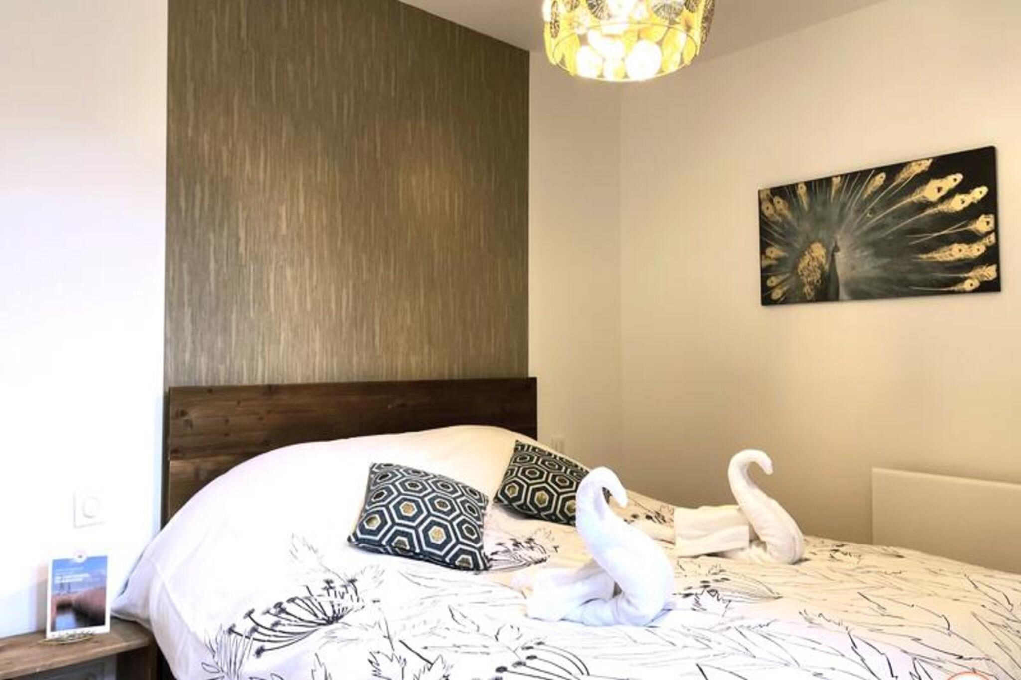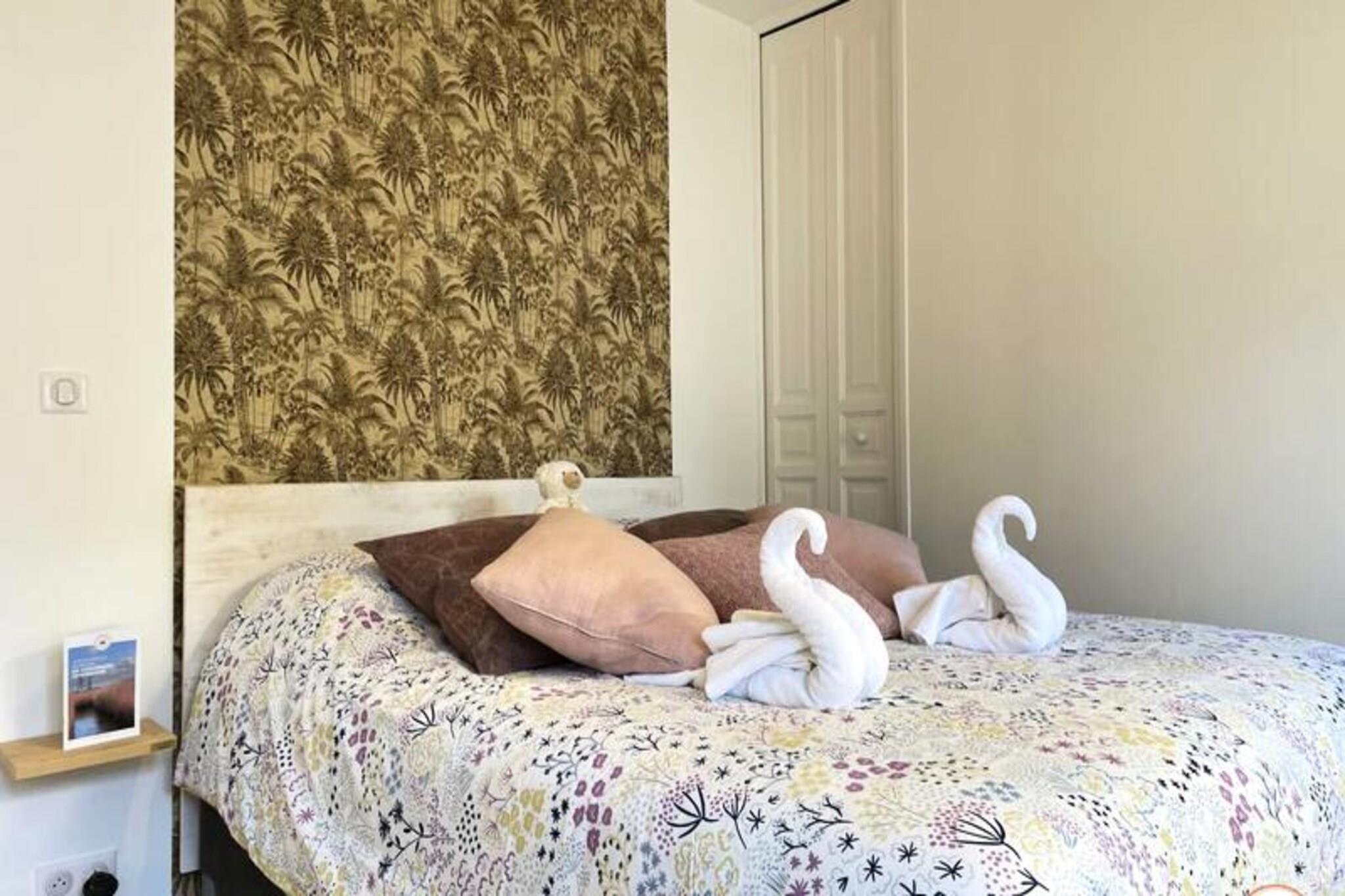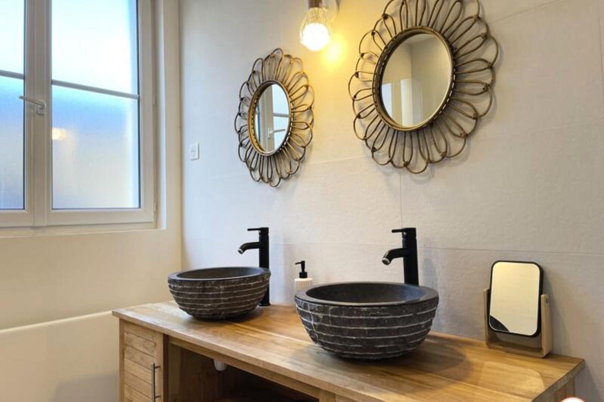 Denne fantastiske villa, der ligger kun f? skridt fra Place Morny og stranden, tilbyder et ideelt tilflugtssted for familier eller grupper p? op til 10 personer. Villaen er fordelt p? to etager og har fem rummelige sovev?relser, hvoraf fire har private badev?relser. Indkvarteringen omfatter et fuldt udstyret k?kken, en hyggelig stue med et Smart TV (Netflix-adgang) og en spisestue, der komfortabelt kan rumme 10 personer. Den udend?rs have giver et privat og fredeligt tilflugtssted, perfekt til at nyde solen. Bem?rk venligst, at ejendommen er ikke-ryger, og k?ledyr er ikke tilladt. Beliggende i hjertet af Deauville er denne villas beliggenhed perfekt til at udforske byen. Inden for 5 minutters gang finder du stranden, det ber?mte Deauville Casino og lokale markeder, butikker, restauranter og barer. Uanset om du ?nsker at slappe af p? stranden eller nyde den pulserende lokale kultur, er alt inden for r?kkevidde. Deauvilles charme og dets udvalg af aktiviteter, herunder den n?rliggende Algotherm Thalasso, g?r dette til et ideelt sted for enhver ferie. Villaen har et veludstyret k?kken, hvilket g?r madlavning til en leg. Badev?relserne, herunder et badekar og bruserum, giver komfort og bekvemmelighed. Et legerum for b?rn med spil og tv er tilg?ngeligt, hvilket sikrer sjov for yngre g?ster. Yderligere faciliteter omfatter gratis WiFi, vaskemaskine, opvaskemaskine og strygejern. G?sterne har ogs? adgang til privat parkering og en terrasse med havem?bler og liggestole.