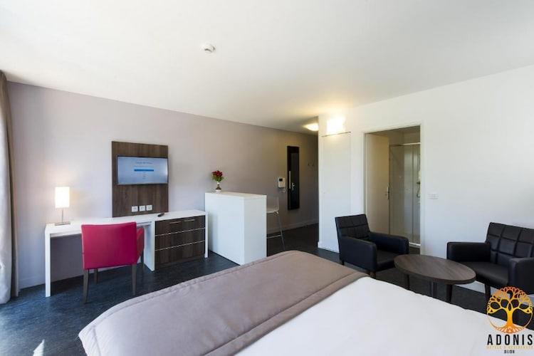 Adonis Dijon Maison Internationale byder dig velkommen året rundt til korte eller lange ophold, perfekt beliggende i hjertet af Bourgogne Universitetscampus i Dijon, kun 3 km fra Dijons udstillings- og konferencecenter. Gratis offentlig parkering er bekvemt placeret i nærheden af hotellet. Dette etablissement tilbyder komfortable og fuldt udstyrede værelser til dit ophold, hver med tekøkken, eget badeværelse, komfortabel sengetøj og linned. Gæsterne kan nyde gratis Wi-Fi, fladskærms-tv og adgang til et konferencerum, kontorlokaler, terrasse og morgenmadslokale. Adonis Dijon Residence kan prale af en unik og tilgængelig beliggenhed. Det er knap hundrede meter fra Dijons centrum og tæt på offentlig transport, med Porte Neuve togstation kun 2 km væk. Bourgogne Lufthavn ligger 8 km væk (15 minutters kørsel). For arrangementer ligger udstillingscentret 3 km fra boligen, og Zenith Showroom ligger 6 km væk. Kom hertil: Med fly/offentlig transport: Fra Bourgogne Lufthavn (9 km) tager du en taxa eller bus til Dijon Ville SNCF togstation. Tag derefter T1 sporvognen mod Quétigny og stå af ved stoppestedet "ERASME". Fortsæt langs sporene i samme retning i ca. 200 m, og tag derefter stien til venstre. Med tog: Dijon Ville SNCF togstation ligger ca. 3,5 km fra hotellet og er tilgængelig med offentlig transport. Med bil: Følg motorvejen til Rue Sully/D107 i Dijon, og tag derefter afkørsel D107 fra N274. Fortsæt ad Rue Sully/D107 og kør til Avenue Alain. Savary.