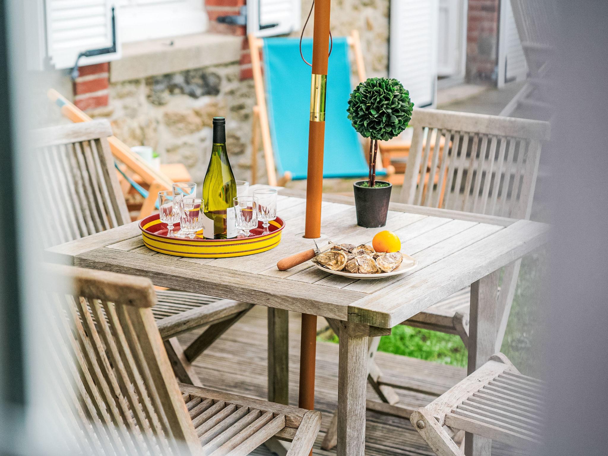 "La Floriette", 4-room house 90 m2, west facing position. Renovated in 2018, comfortable and tasteful furnishings: living/dining room with TV (flat screen). 1 room with 1 french bed (1 x 160 cm, length 200 cm), separate WC and shower. 1 room with 1 french bed (1 x 140 cm, length 190 cm). 1 room with 2 beds (90 cm, length 190 cm). Exit to the garden, to the terrace. Open kitchen (oven, dishwasher, 3 induction hot plates, toaster, kettle, microwave, freezer, electric coffee machine, Capsules for coffee machine (Nespresspo) extra). Shower, sep. WC. Gas heating. Terrace 15 m2, garden 200 m2, west facing position. Terrace furniture. Facilities: washing machine, children's high chair, baby cot for up to 2 year olds. Internet (WiFi, free). Please note: non-smokers only. Smoke alarm. Offer by a private individual according to Art. 155, IV of CGI.