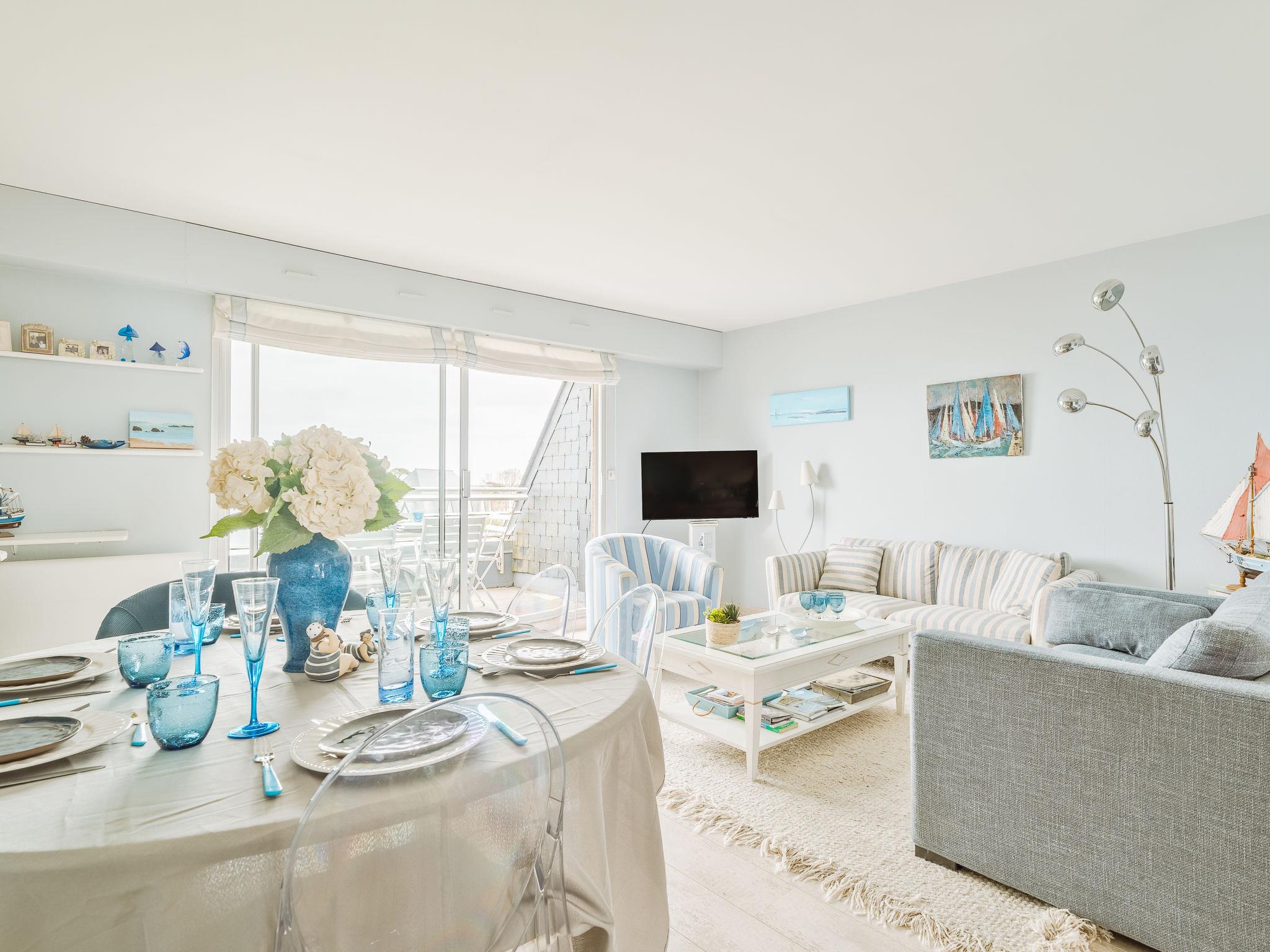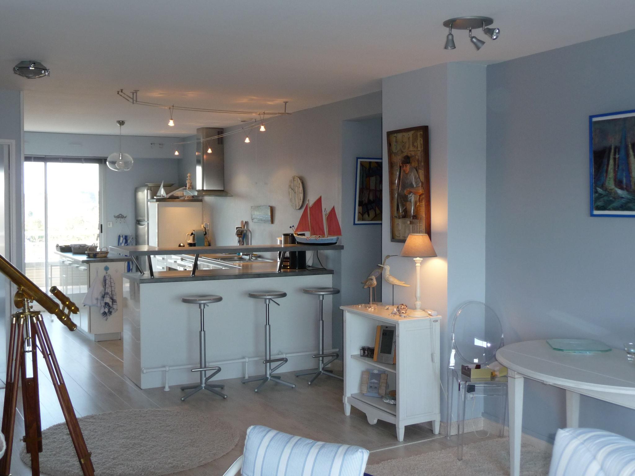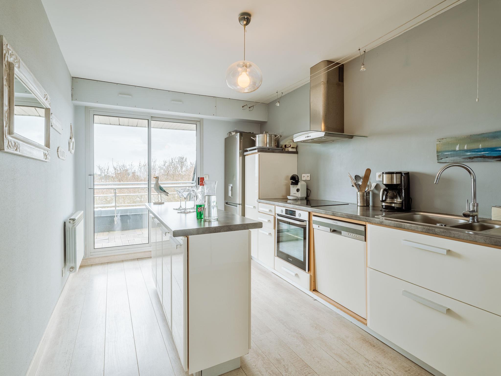 "Le Parc de La Ronceray 7 - L'Horizon", 4-room apartment 130 m2 on 3rd floor, south facing position. Spacious and bright, comfortable and modern furnishings: living/dining room with TV (flat screen), air conditioning. Exit to the terrace, north facing position. 1 room with 1 french bed (160 cm, length 200 cm). Exit to the terrace, south facing position. 1 room with 1 french bed (140 cm, length 190 cm). Exit to the terrace, north facing position. 1 room with 2 beds (90 cm, length 190 cm). Exit to the terrace, south facing position. Open kitchen (oven, dishwasher, 3 induction hot plates, toaster, kettle, microwave, freezer, electric coffee machine). Exit to the terrace, south facing position. Bathroom, shower, 2 sep. WC's. Electric heating. Terrace furniture. Very beautiful panoramic view of the sea. Facilities: washing machine, dryer, hair dryer. Internet (WiFi, free). Parking (roofed, 1 car), height 210 cm. Please note: suitable for families. Non-smokers only. Maximum 1 small pet/ dog allowed. Smoke alarm. Offer by a commercial proprietor according to Art. 155, IV, CGI