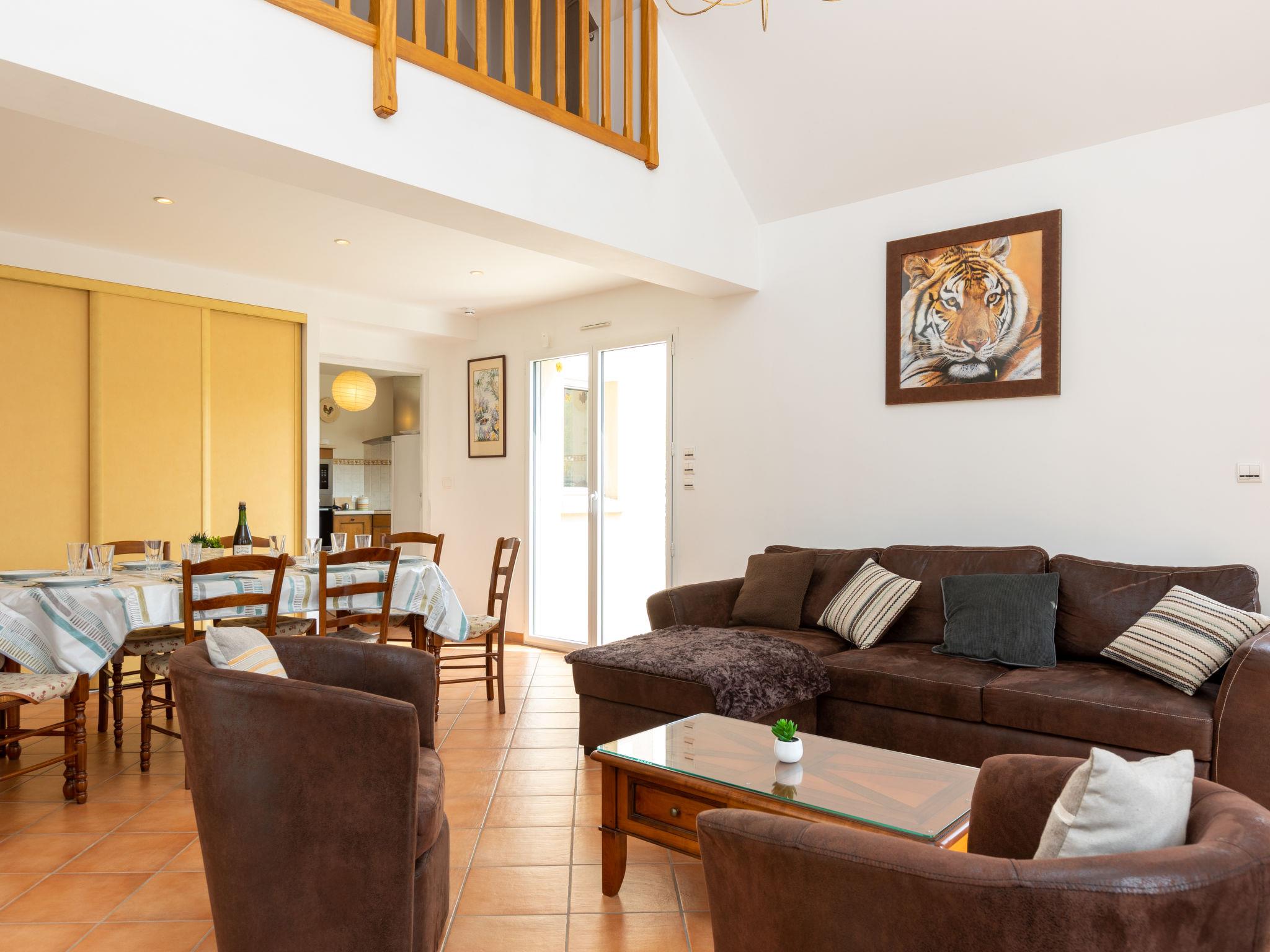5-room house 150 m2 on 2 levels, south-west facing position. Spacious, comfortable and beautiful furnishings: living/dining room with TV (flat screen). Exit to the garden, to the terrace. 1 large room with 1 french bed (140 cm, length 190 cm), shower. Kitchen (oven, dishwasher, 4 induction hot plates, toaster, kettle, microwave, freezer, electric coffee machine). Sep. WC. Floor heating. Upper floor: 1 room with 1 french bed (140 cm, length 190 cm). 1 room with 1 french bed (140 cm, length 190 cm). 1 room with 2 beds (80 cm, length 190 cm). Bathroom, shower, sep. WC. Electric heating. 2 large terraces 50 m2, south facing position and west facing position. Terrace furniture, barbecue. Facilities: washing machine, dryer, iron, baby cot. Internet (WiFi, free). Please note: non-smokers only. Smoke alarm. Offer by a private individual according to Art. 155, IV of CGI.
