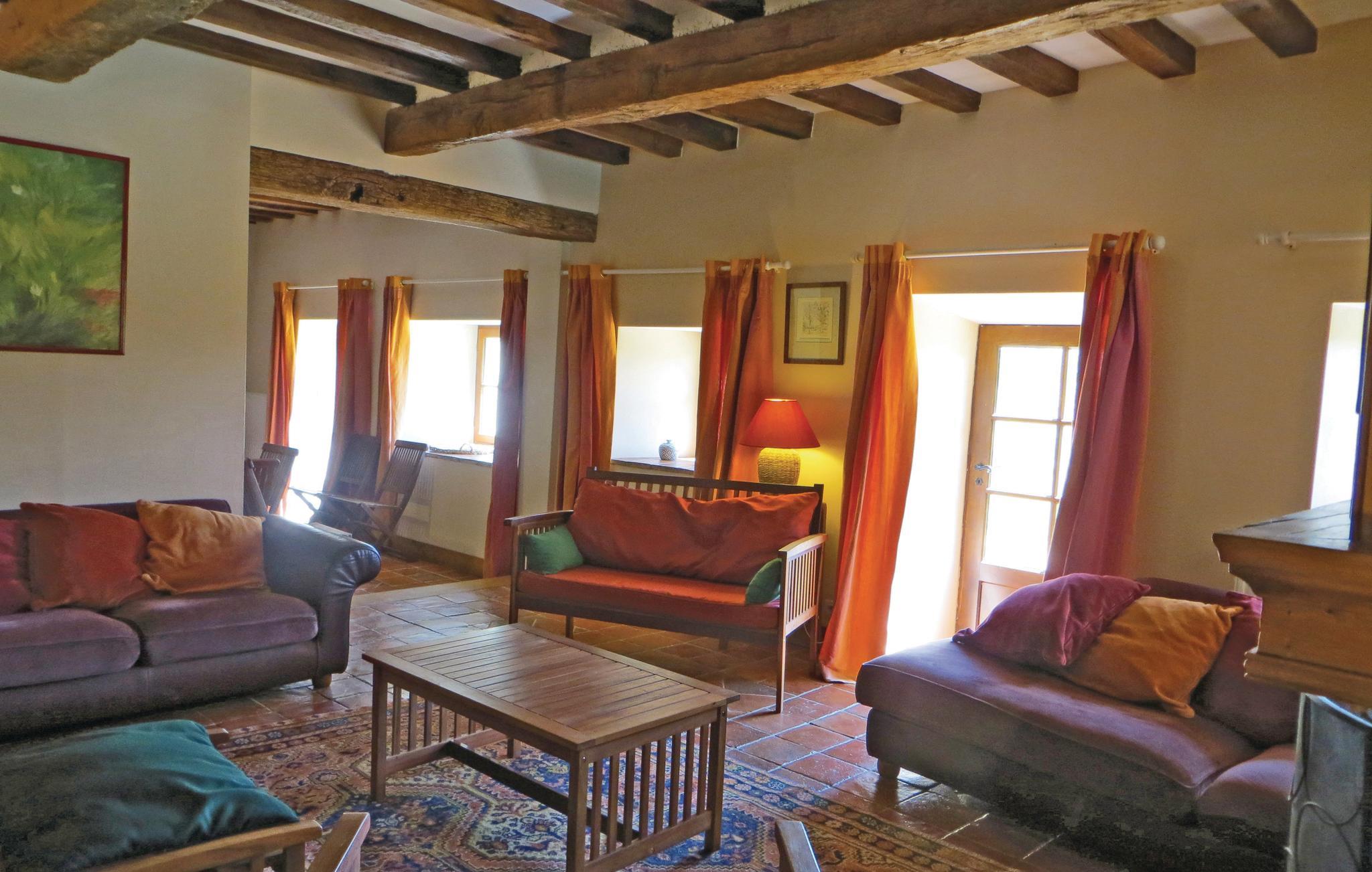 Til dette vidunderligt renoverede feriehus, en ombygget lade, hører der en stor have med græsplæne, blomsterbede og fantastiske udsigter. Poolen er overdækket, og kan opvarmes; den deles med ejeren, der bor i nabohuset. Poolen kan ikke ses fra ejerens hus. Landbyen Domfront ligger 2 km væk og har en restaurant og butikker, og 4 km væk, i Conlie, er der en tennisbane. Der ligger en sø ved Silla-le-Guillaume (15 km) og mange vandrestier i skovene. Der er halvanden times køretur til de imponerende slotte langs Loire, to timer til Mont de St. Michel. 20 km til racerbanen Le Mans.