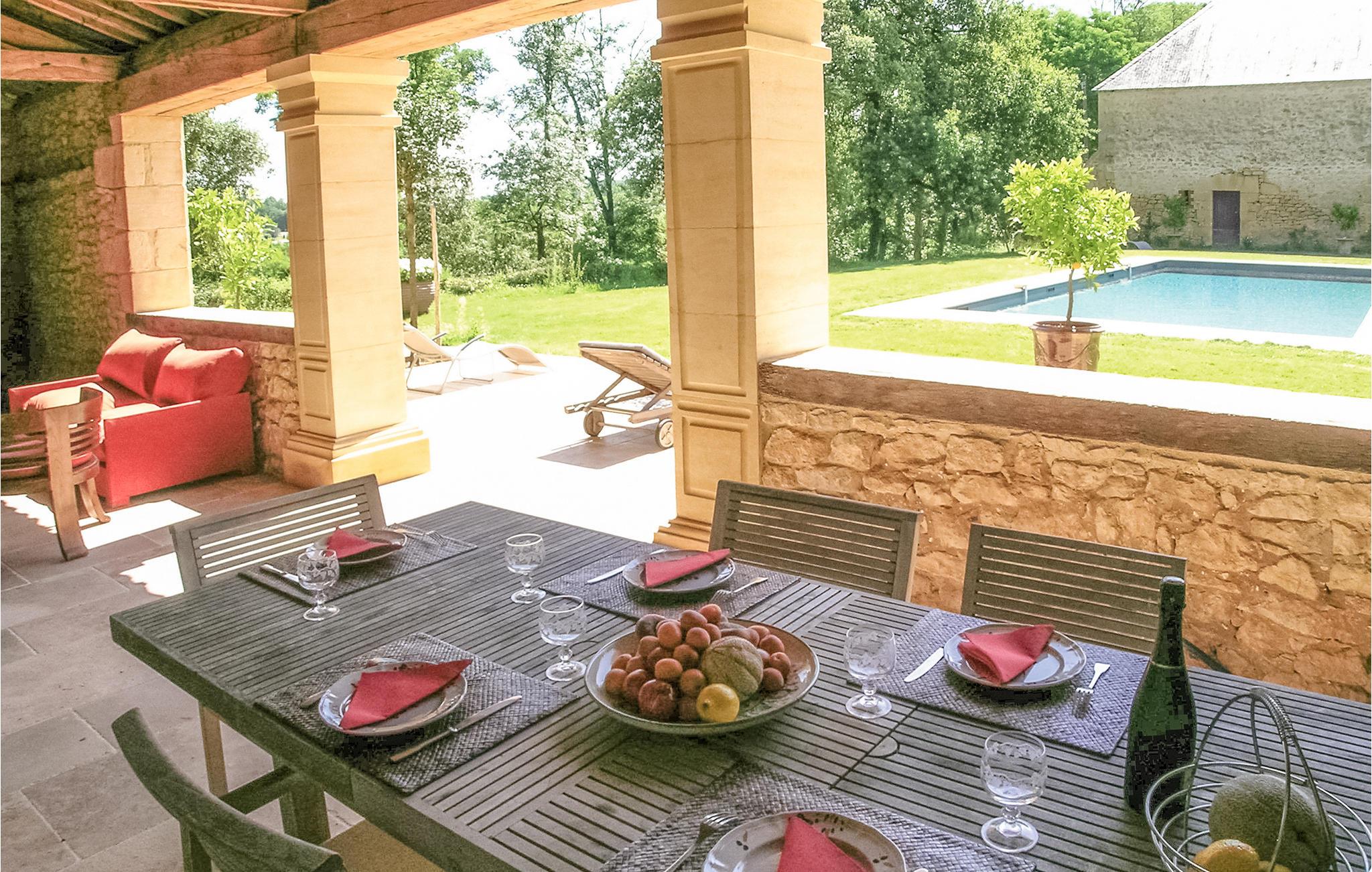 Tilbring jeres ferie i dette vidunderlige feriehus med en pool og en rummelig have, indlejret i de storslåede omgivelser på et historisk slot. Beliggende for enden af en lang allé byder dette nænsomt renoverede hus velkommen med en charmerende atmosfære og indbydende udendørsarealer, ideelt til udendørs spisning. Indenfor byder nogle af soveværelserne på øverste etage på luksusen af en-suite badeværelser. Stien gennem en havebue fører jer direkte til poolen, mens flodstranden ligger blot et par minutter væk. Domme og omegn lægger op til en bred vifte af oplevelser. Udforsk de storslåede haver omkring slottet eller oplev de imponerende slotte Beynac og Castelnaud. Historieinteresserede vil glæde sig over Dordognes rige kultur, mens naturelskere kan nyde de naturskønne vandrestier og flodbredden. Perfekt til en ferie fuld af afslapning og kulturelle højdepunkter.