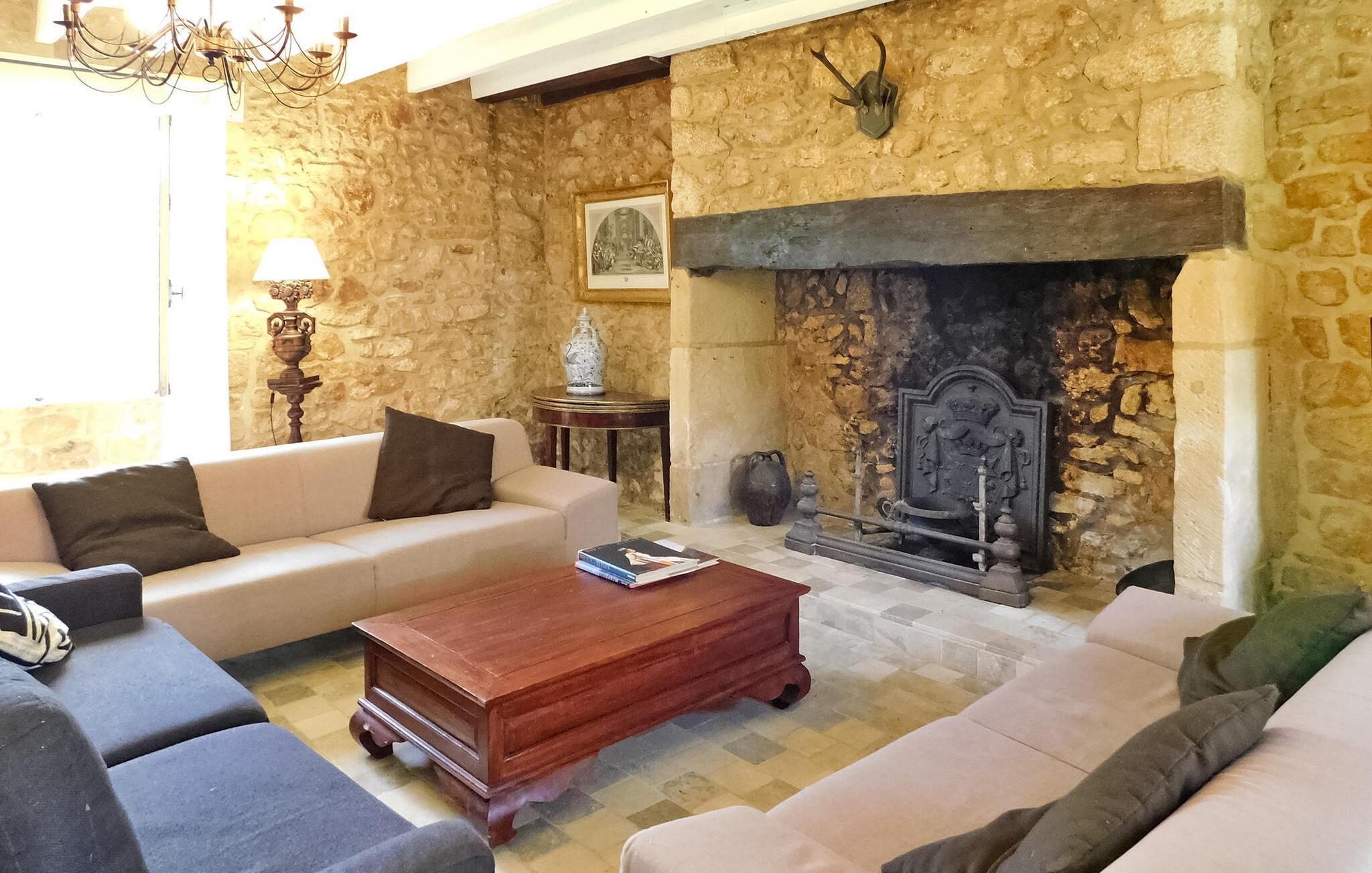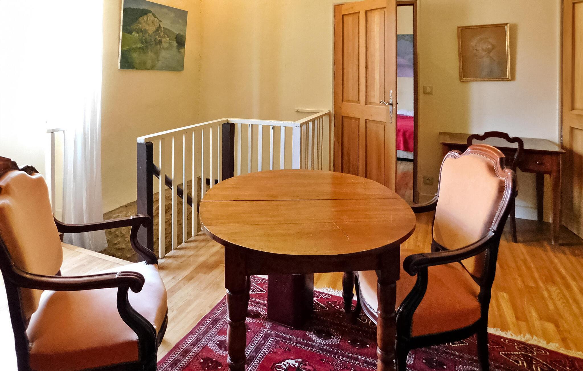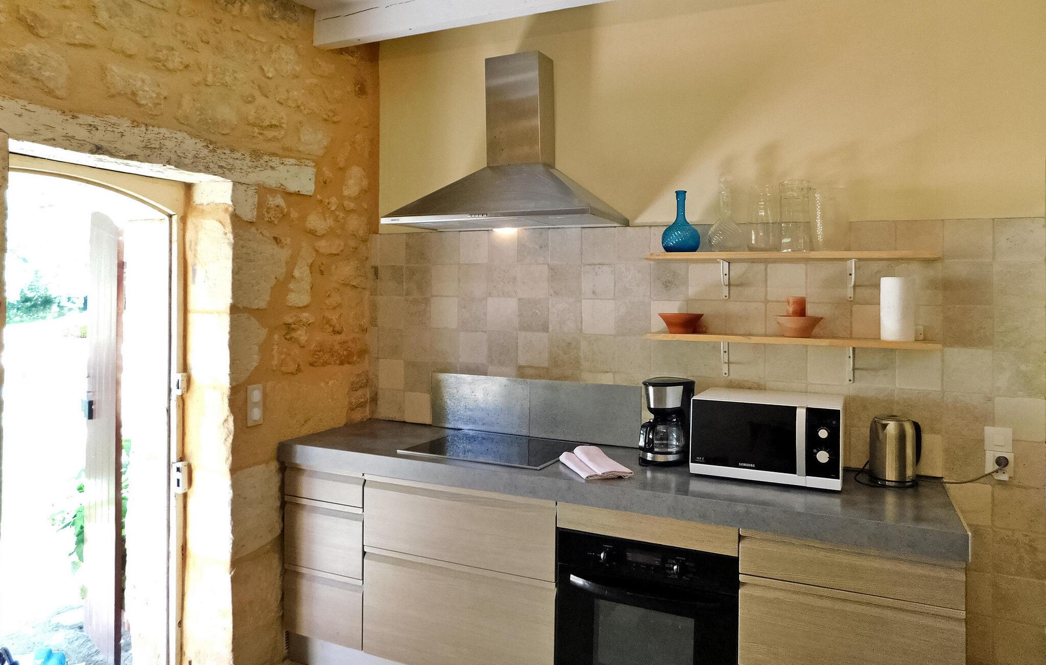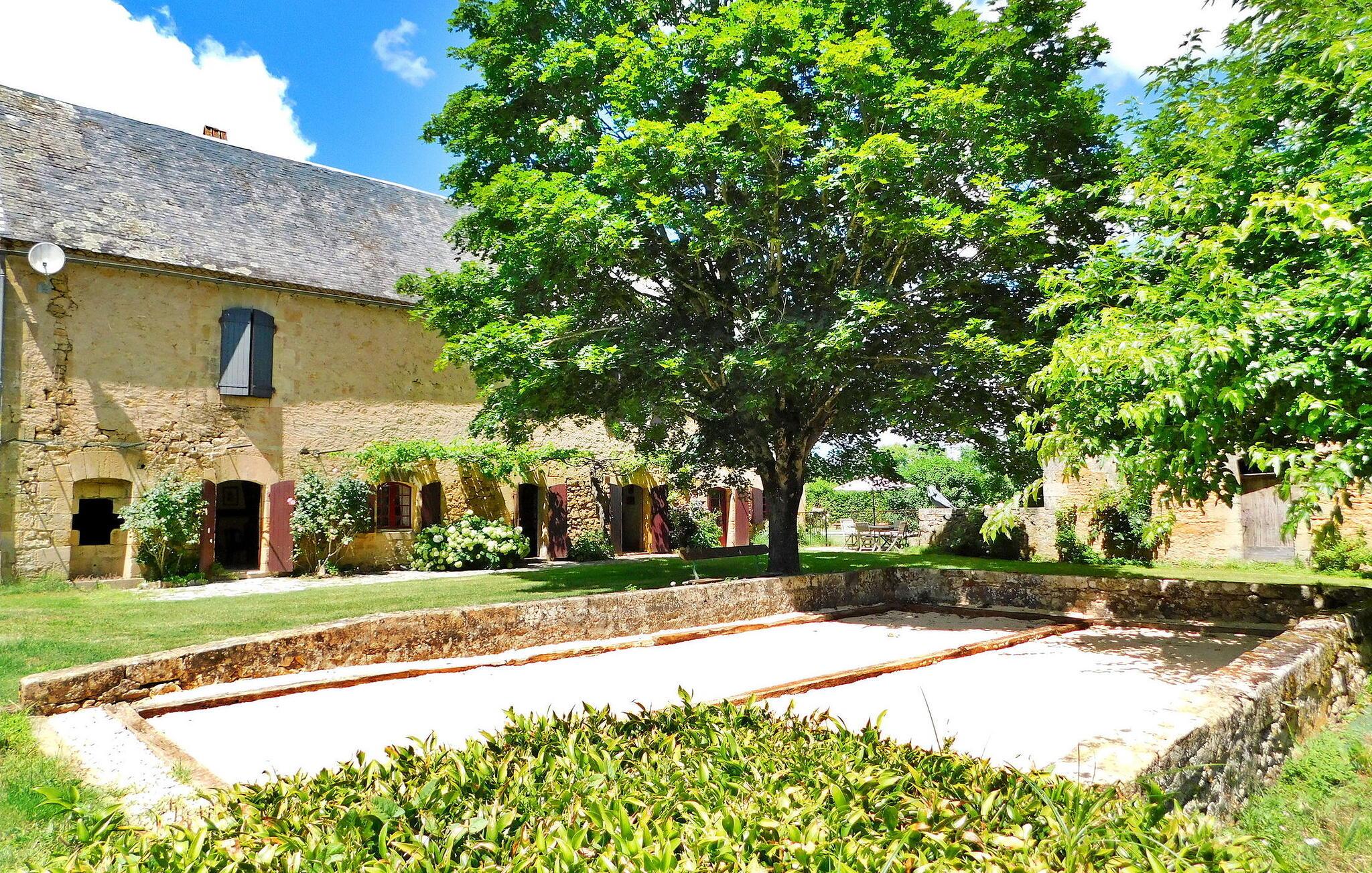 Velkommen til dette stilfulde landsted omgivet af Perigords maleriske natur og kun et stenkast fra middelalderbyen Domme. Det hyggelige interiør tilbyder alt hvad I behøver for en afslappende ferie: et veludstyret køkken, opholds- og spisestue samt flere komfortable soveværelser med tilhørende badeværelser. Udenfor inviterer den brolagte terrasse med havemøbler til at blive hængende, mens det indhegnede poolområde med liggestole og parasoller sørger for afslappende timer. Omgivelserne i Domme og Dordogne byder på uforglemmelige oplevelser. Gå en tur gennem middelalderbyens charmerende gader, udforsk den nærliggende flod på en bådtur eller slap af på dens bredder. Seværdigheder såsom landsbyen Vitrac og regionens berømte slotte ligger i umiddelbar nærhed. Perfekt til både natur- og kulturelskere.