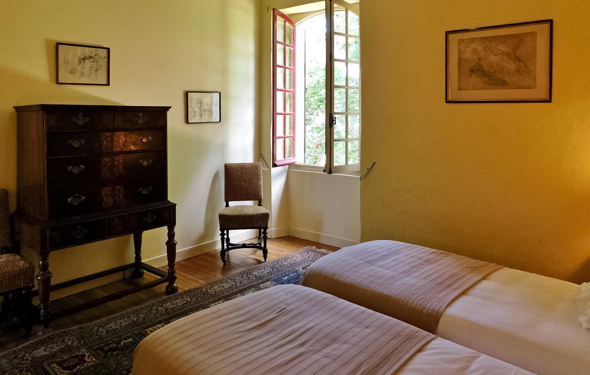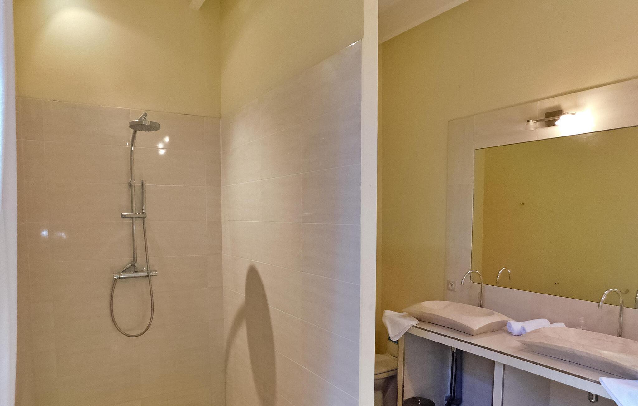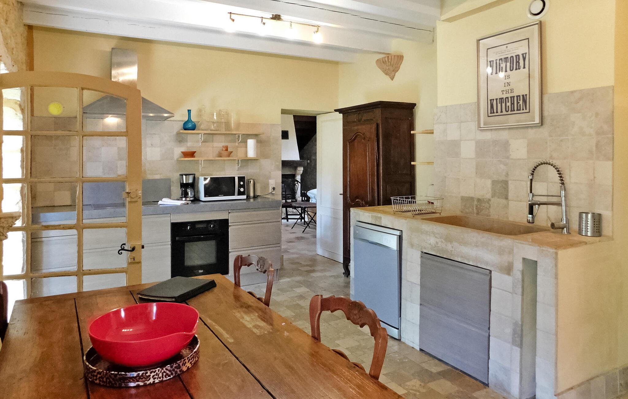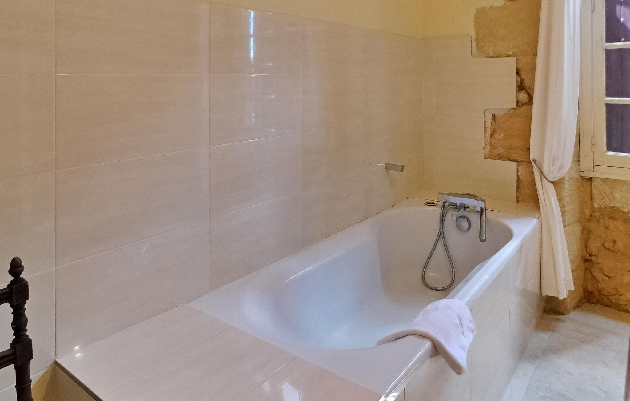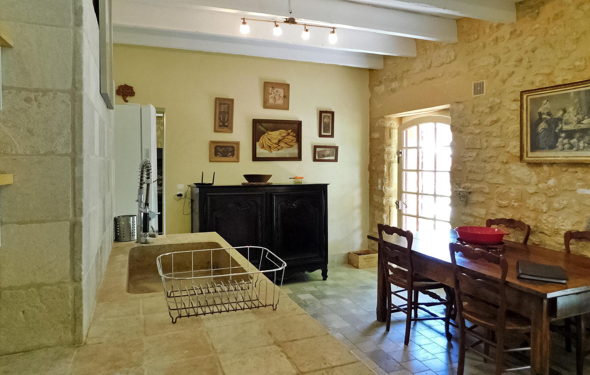 Velkommen til dette stilfulde landsted omgivet af Perigords maleriske natur og kun et stenkast fra middelalderbyen Domme. Det hyggelige interiør tilbyder alt hvad I behøver for en afslappende ferie: et veludstyret køkken, opholds- og spisestue samt flere komfortable soveværelser med tilhørende badeværelser. Udenfor inviterer den brolagte terrasse med havemøbler til at blive hængende, mens det indhegnede poolområde med liggestole og parasoller sørger for afslappende timer. Omgivelserne i Domme og Dordogne byder på uforglemmelige oplevelser. Gå en tur gennem middelalderbyens charmerende gader, udforsk den nærliggende flod på en bådtur eller slap af på dens bredder. Seværdigheder såsom landsbyen Vitrac og regionens berømte slotte ligger i umiddelbar nærhed. Perfekt til både natur- og kulturelskere.