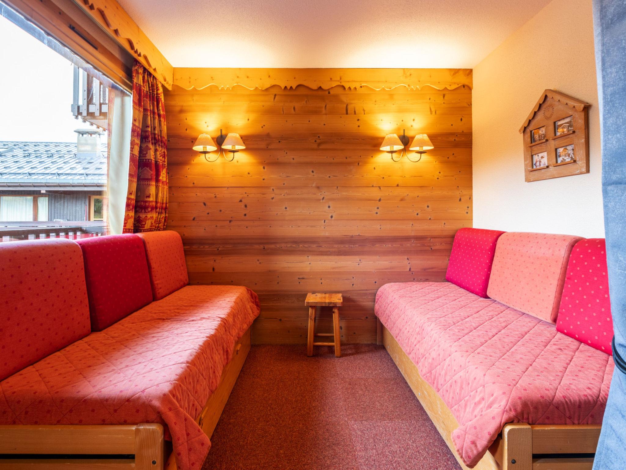 "Les Arcades A", 2-room apartment 27 m2 on 3rd floor. Object suitable for 4 adults. 1 room with 2 sofabeds and TV. Living room with 1 sofabed and 1 pull-out bed. Open kitchen (dishwasher, 4 ceramic glass hob hotplates, kettle, microwave, electric coffee machine). Bath/WC. Balcony. View of the ski run. Facilities: iron, hair dryer. Please note: non-smokers only. Smoke alarm. Offer by a commercial proprietor according to Art. 155, IV, CGI