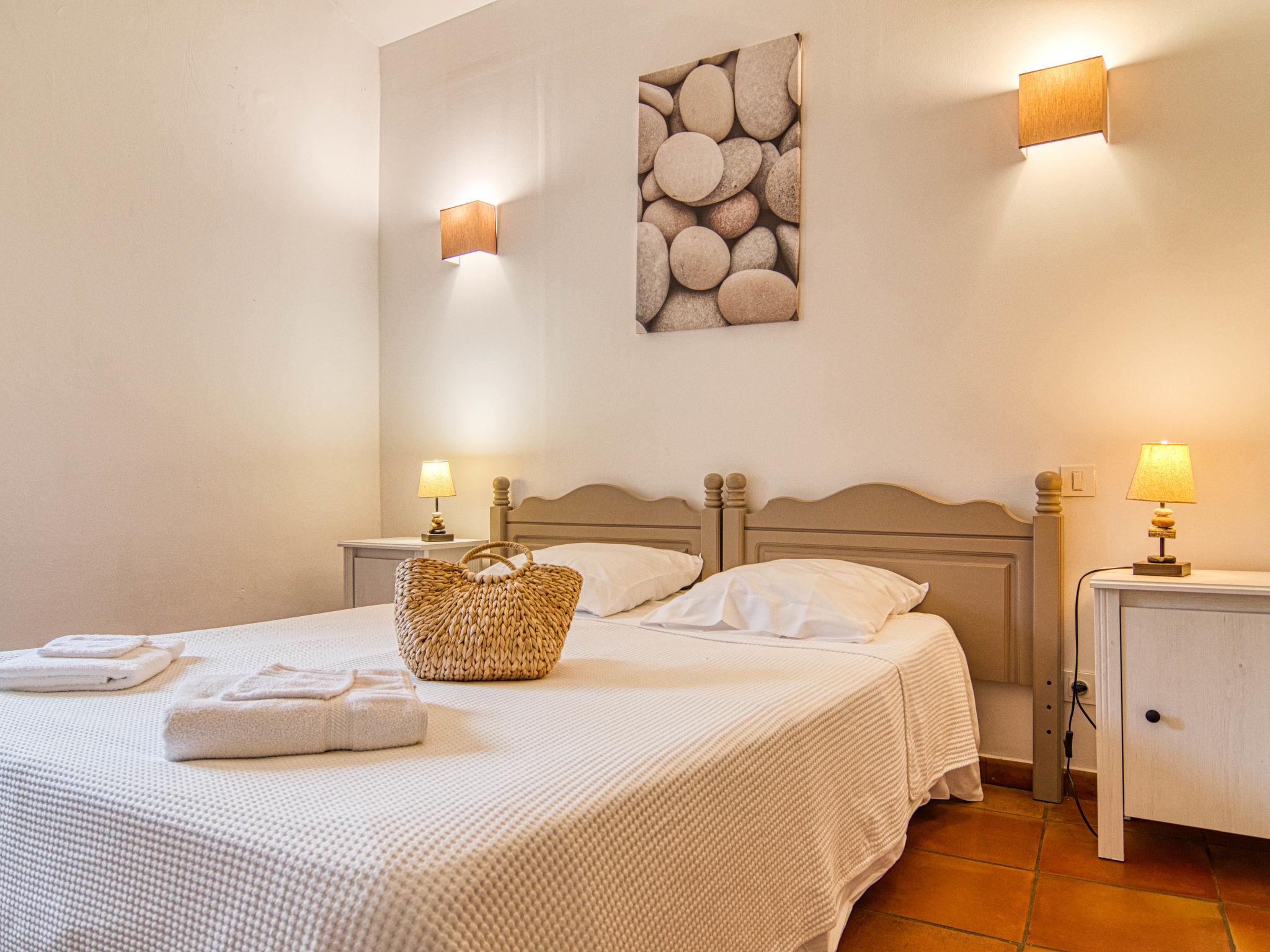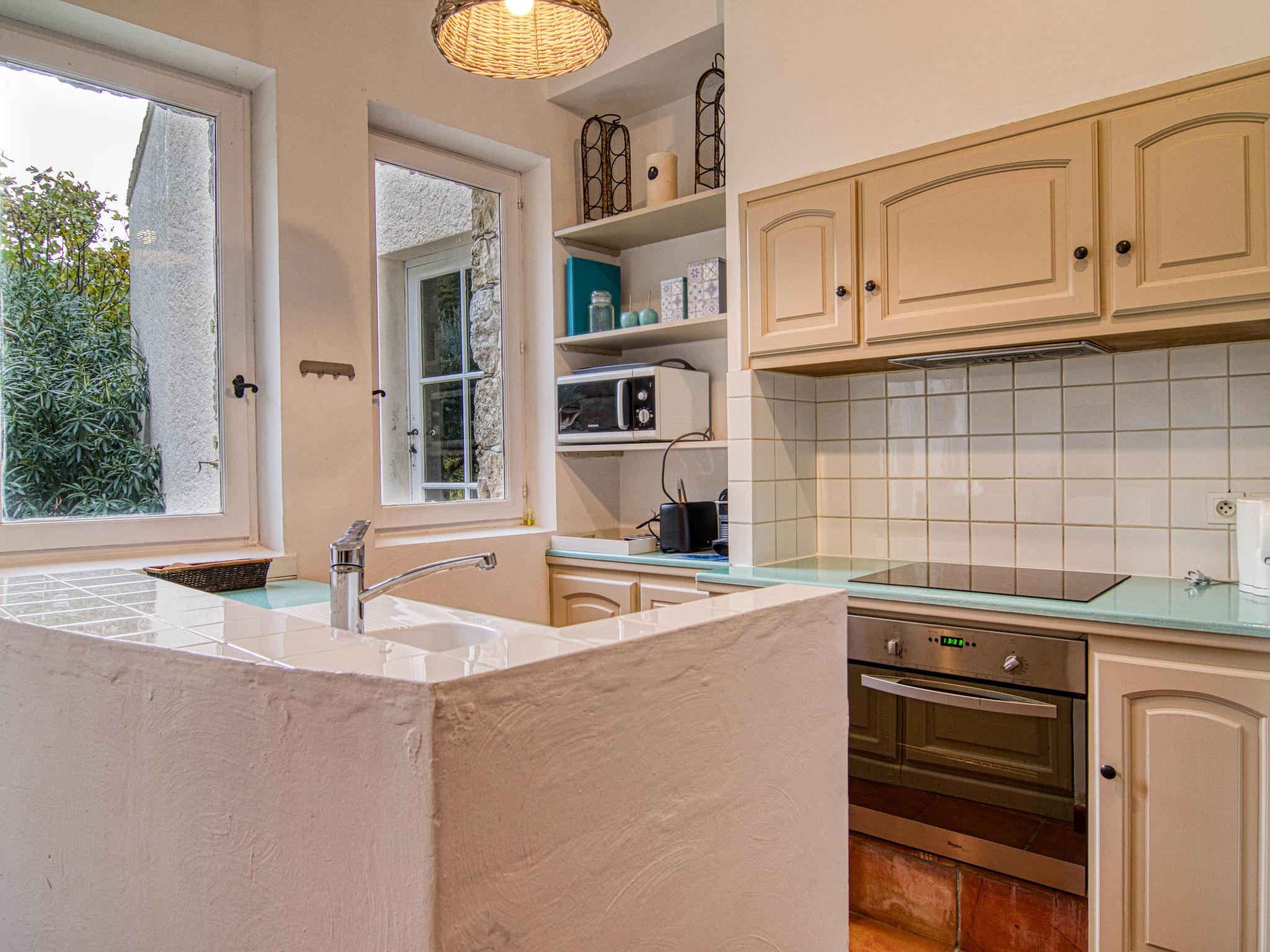 "Les Grenaches", 4-room terraced house 130 m2 on 2 levels. Comfortable and beautiful furnishings: living room with open-hearth fireplace (only for decoration), TV and air conditioning. 1 room with 3 beds (90 cm, length 190 cm), shower/WC. Exit to the terrace. Open kitchen (oven, dishwasher, 4 ceramic glass hob hotplates, toaster, microwave, electric coffee machine). Upper floor: 1 room with 3 beds (90 cm, length 190 cm), bath/WC. 1 room with 1 french bed (160 cm, length 190 cm), shower/WC. Electric heating. Terrace 30 m2. Terrace furniture, barbecue. Facilities: washing machine, iron, baby cot for up to 3 year olds. Internet (WiFi, free). Parking at the house. Please note: one double bedroom is outside the apartment. Non-smoking house. Smoke alarm. Offer by a commercial proprietor according to Art. 155, IV, CGI