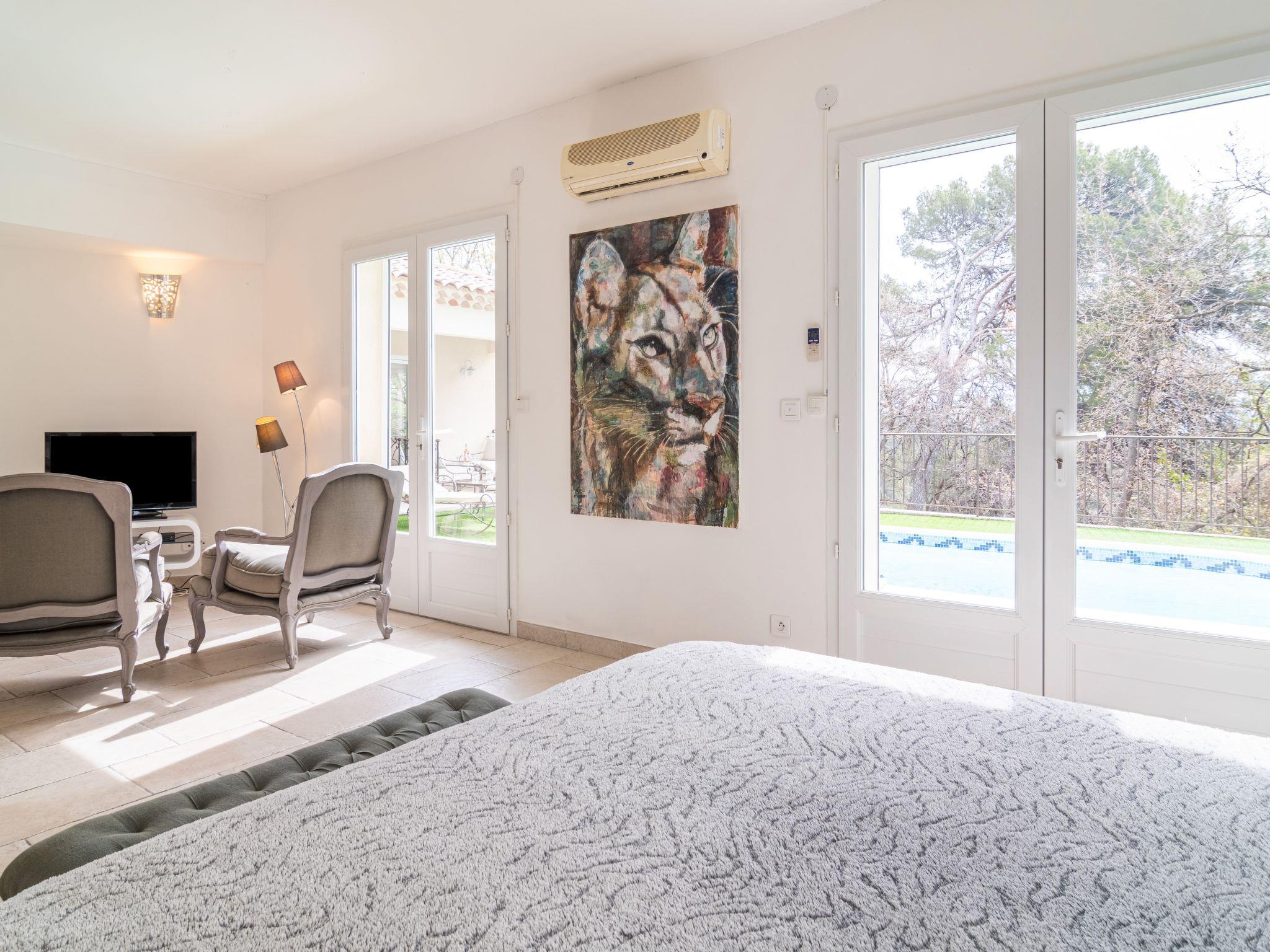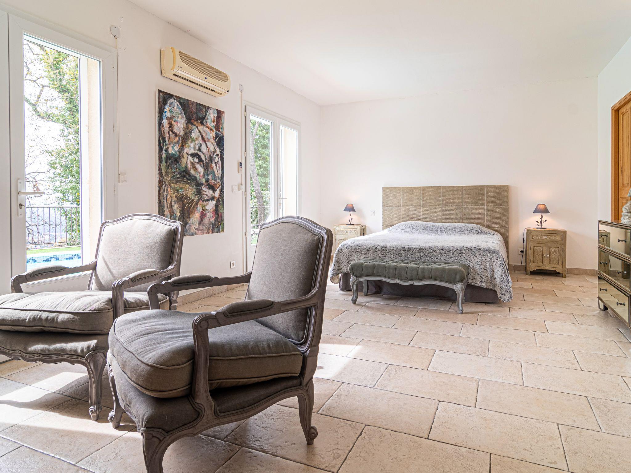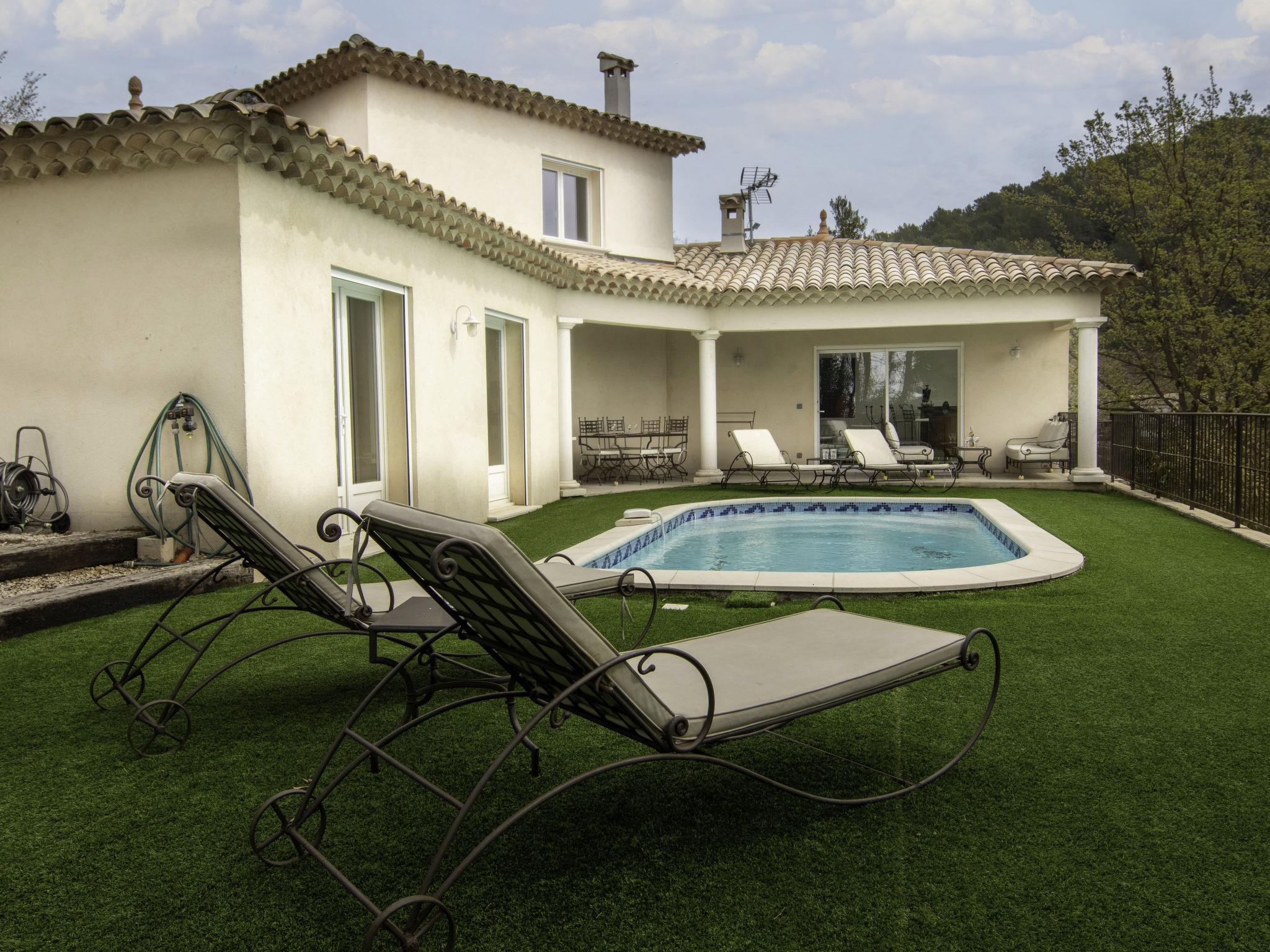 Beautiful, comfortable house "L'Esquirou". 2.5 km from the centre of Draguignan, 55 km from the centre of Saint Tropez, 71 km from the centre of Cannes, on a slope, in the residential district, 35 km from the sea. Private: natural state property 1'500 m2 with trees, swimming pool (7 x 4 m, depth 150 cm, seasonal availability: 18.Apr. - 10.Oct.). Outdoor shower, boules. In the house: storage room for bicycles. Parking (for 2 cars) on the premises. Supermarket 2.5 km, bus stop 600 m, railway station "Les Arcs Draguignan" 13 km, sandy beach "Fréjus" 35 km, bathing lake "Lac de Sainte Croix" 45 km. Golf course (18 hole) 18 km. Nearby attractions: Abbaye du Thoronet, Grottes de Villecroze, Moustiers Saint Marie, Cotignac, Vallon Sourn, Gorges du Verdon. Well-known lakes can easily be reached: Lac de Sainte Croix 46 km, Lac de Carces (péche uniquement) 38 km.