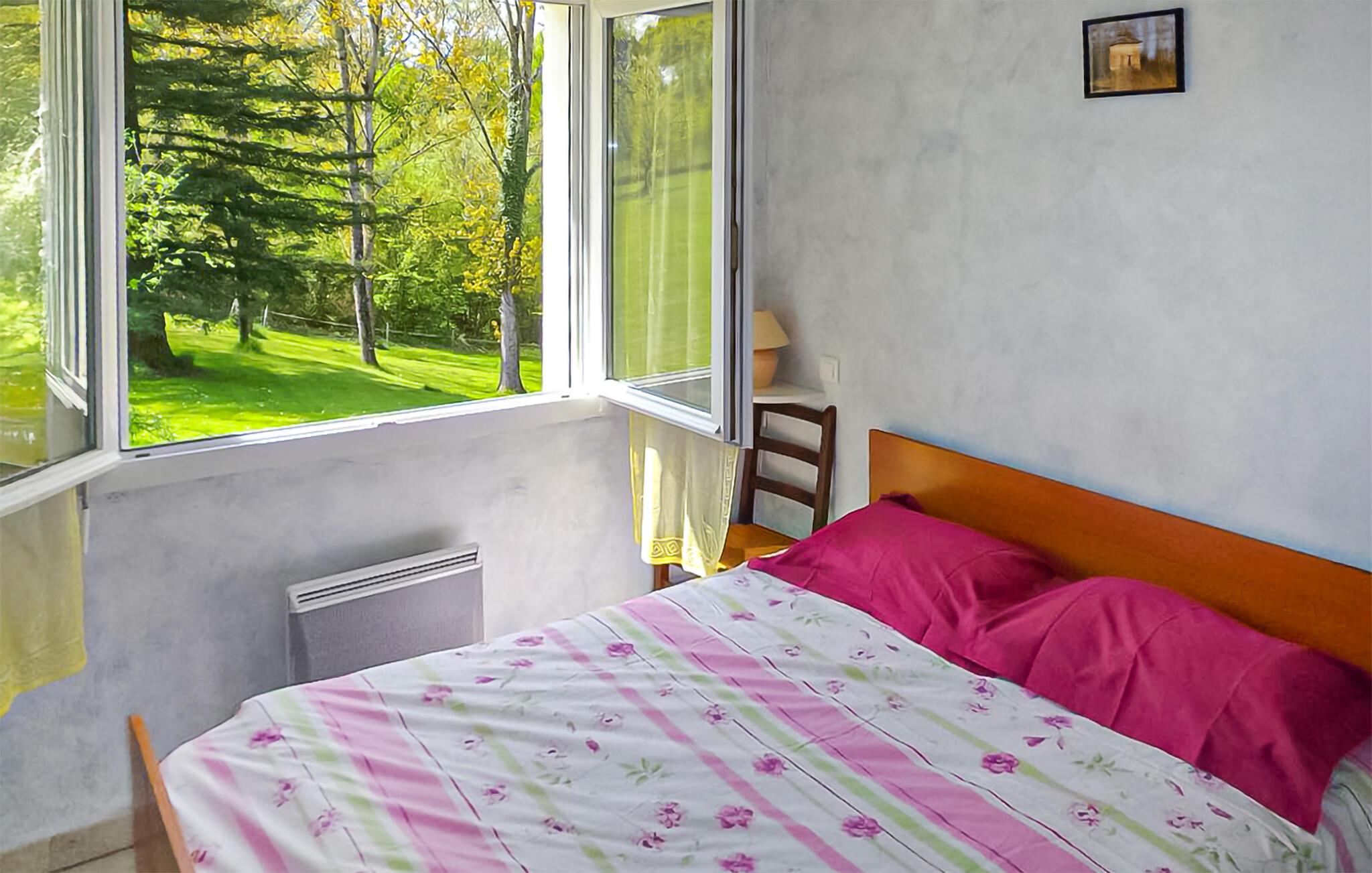 Dette indbydende feriehus ligger i en stor have i udkanten af ??skoven og tilbyder et fredeligt tilflugtssted omgivet af frodig natur. Her kan I trylle lækre retter frem, nyde hyggelige måltider og planlægge jeres udflugter sammen. Hold hyggelige spilleaftener ved spisebordet eller fordyb jer i en god bog, som I ikke har tid til i jeres daglige rutine.