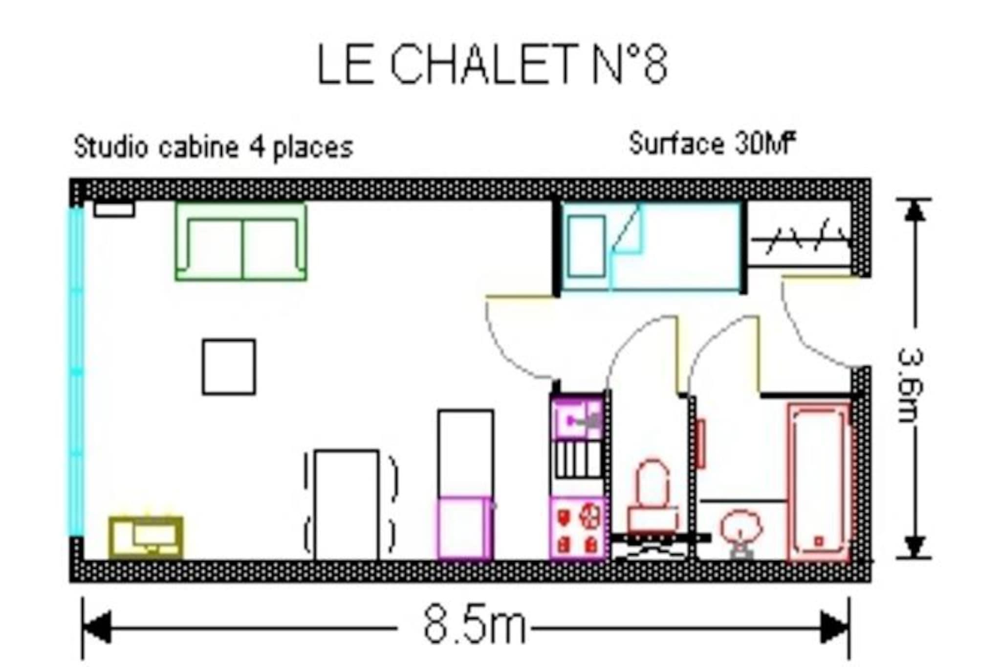 Residence "Le Chalet" – Komfort og afslapning i hjertet af skisportsstedet Beliggende på 12 Route du Col d'Aubisque (nummer 14 på skisportsstedets kort) har residensen en central beliggenhed, kun 150 meter fra butikker og pisterne. Den tilbyder kvalitetsfaciliteter til et afslappende ophold: en opvarmet indendørs pool med spabad, sauna, fitnesscenter, Wi-Fi-adgang og et privat skiskab med støvletørrer. Til dine måltider kan du nyde dine måltider i restauranten på stedet, Le Schuss. Residens LE CHALET med swimmingpool, studiolejlighed til 4 personer, 1. sal, udsigt til pisten, 30 m², sydvestvendt, opvarmet skiskab, elektrisk opvarmning. Entré med en sovealkove med 2 køjesenge. Badeværelse med håndvask, badekar og hårtørrer. Separat toilet. Stue med en dobbelt sovesofa og TV. Køkken: 4-brænder keramisk kogeplade, ovn, køleskab, opvaskemaskine, mikrobølgeovn, filterkaffemaskine, brødrister, foodprocessor. IKKE-RYGNING. Sengelinned inkluderet. Gratis WIFI. Sportsfaciliteterne (swimmingpool, spabad, sauna og fitnesscenter) er åbne om vinteren fra juleferien indtil resortet lukker, og om sommeren fra 1. juli til 15. september. Yderligere gebyrer gælder: turistskat. Kæledyr er velkomne mod et gebyr. Valgfrie tjenester inkluderer: måltidsplaner (morgenmad, aftensmad, halvpension), håndklæder, daglig og slutrengøring samt tidlig indtjekning. Vaskeriservice er tilgængelig i receptionen mod et gebyr. Vintertilbud: Rabatter for alle vores kunder på leje af skiudstyr (SKILOC) og på skilifter (SKIPASS) med det særlige SKIPLUS-tilbud, der kombinerer begge tjenester. Depositum (i euro) - 250 Opvarmning - 1