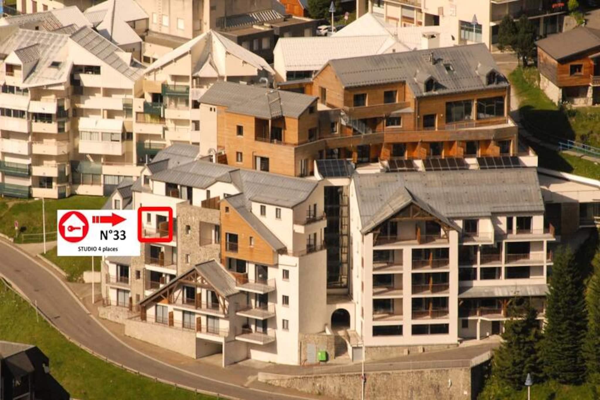 Denne indbydende studiolejlighed i Le Portillo Residence ligger ved indgangen til de majestætiske Pyrenæer og tilbyder en perfekt blanding af komfort og bekvemmelighed til både vinter- og sommereventyr i bjergene. Forestil dig at vågne op til en storslået udsigt over pisterne og feriestedet fra din sydvestvendte terrasse, indånde den friske alpine luft og træde ind i en dag fyldt med udendørs spænding. Med pisterne kun 150 meter væk og vandrestier, der starter lige uden for døren, er denne ejendom et paradis for både naturentusiaster og spændingssøgende. \n\nLejligheden, der er designet til op til fire gæster, har en hyggelig sovealkove med køjesenge og en stue med en komfortabel dobbeltsovesofa. Det åbne køkken er fuldt udstyret med moderne apparater, herunder køleskab, keramisk kogeplade, ovn, mikrobølgeovn og opvaskemaskine, hvilket gør det nemt at tilberede måltider efter en dag med udforskning. Et rummeligt badeværelse med badekar og separat toilet sikrer bekvemmelighed, mens gennemtænkte detaljer som hårtørrer og sengetøj bidrager til komforten under dit ophold. Le Portillo Residence kan prale af exceptionelle faciliteter, herunder en opvarmet indendørs swimmingpool, jacuzzi, børnepool, fitnesscenter og spillerum, der sikrer afslapning og underholdning for alle aldre. Yderligere tjenester såsom ski-in/ski-out adgang, overdækket parkering og cykelopbevaring er tilgængelige efter reservation, hvilket gør dit ophold endnu mere problemfrit. Uanset om du snor dig gennem snedækkede pister om vinteren eller vandrer på naturskønne stier om sommeren, gør denne ejendoms førsteklasses beliggenhed og omfattende faciliteter det til et ideelt valg til at skabe uforglemmelige bjergminder. Med rabatter på leje af skiudstyr og liftkort venter din alpine flugt på Le Portillo Residence.