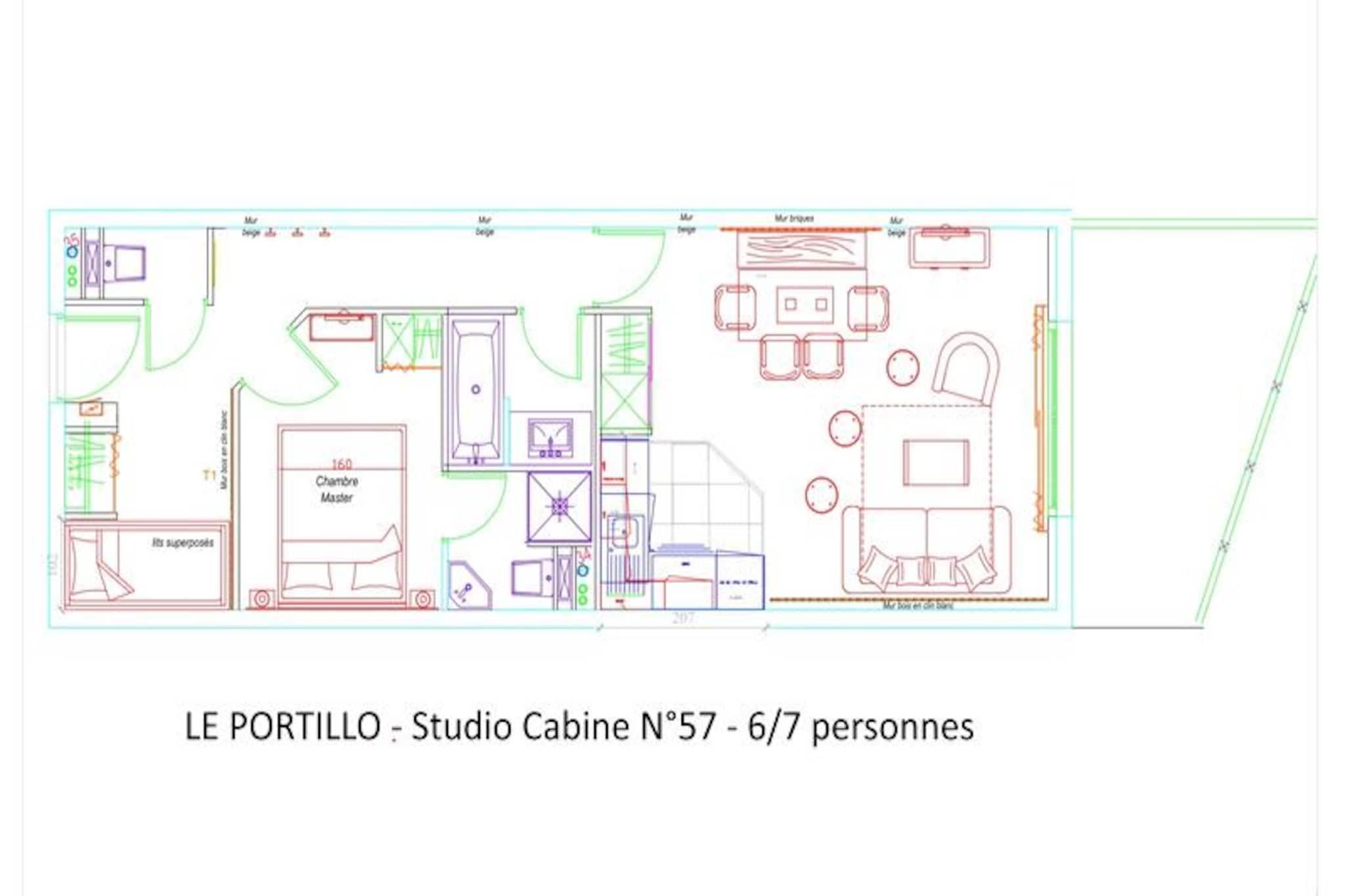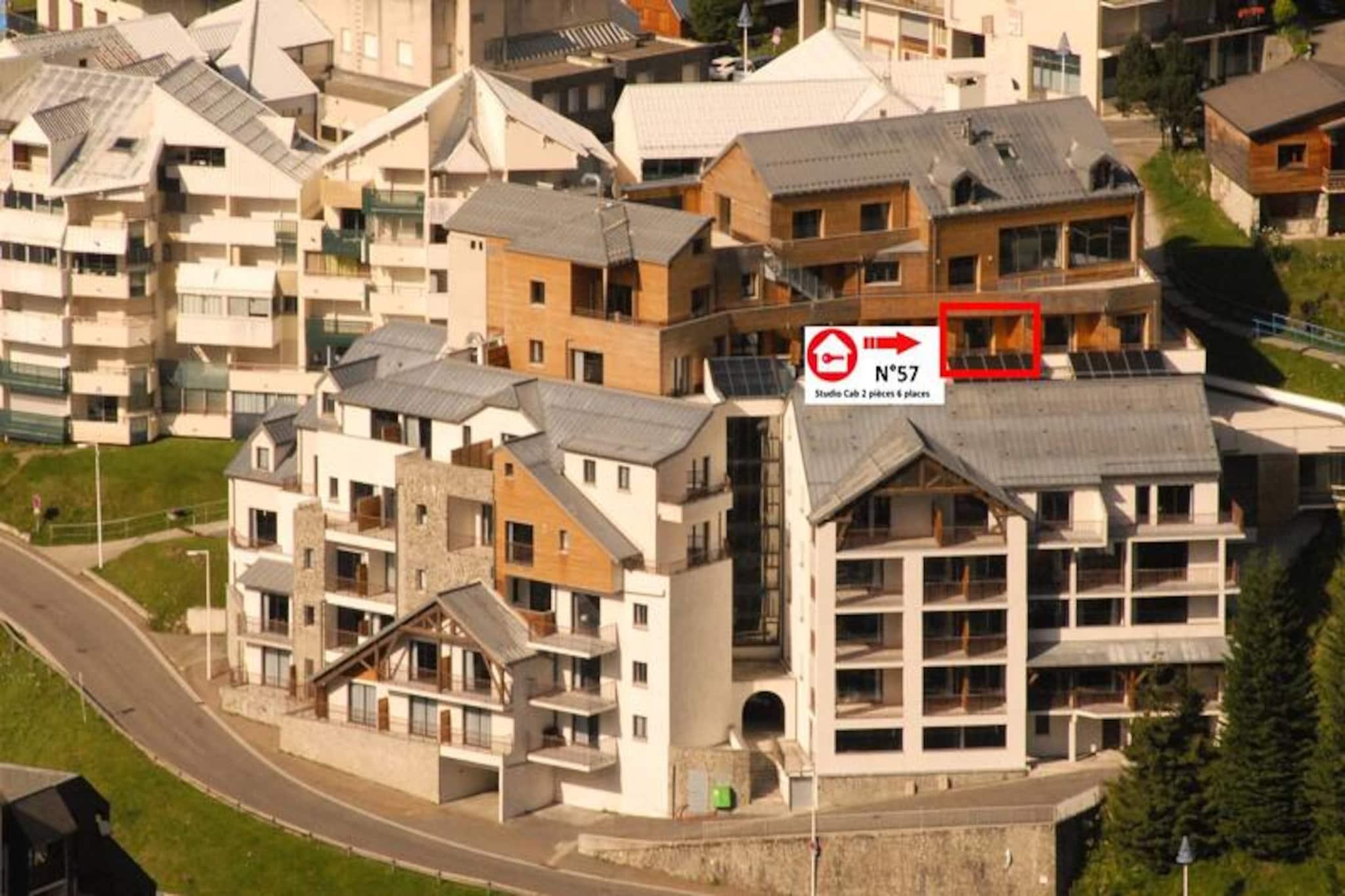 Med Pyrenæernes fantastiske baggrund tilbyder denne indbydende studiolejlighed i Le Portillo Residence en perfekt blanding af komfort og bekvemmelighed til din bjergferie. Ejendommen ligger på 16 Route du Col d'Aubisque, kun 150 meter fra pisterne, 100 meter fra butikker og lige ved udgangspunktet for naturskønne vandrestier, hvilket gør den til en ideel base for både vinter- og sommereventyr. Uanset om du er her for at stå på ski, vandre eller blot slappe af, sikrer denne bolig, at du altid er tæt på begivenhederne. \n\nLejligheden, der ligger på 5. sal, kan prale af en sydvendt terrasse med betagende udsigt over pisterne. Med 50 m² gennemtænkt designet plads kan den komfortabelt rumme op til 7 gæster. Indretningen inkluderer en sovealkove med tre enkeltkøjesenge, et soveværelse uden vinduer med en dobbeltseng og eget brusebad samt en stue med en dobbeltsovesofa. Køkkenet i amerikansk stil er fuldt udstyret med moderne apparater, herunder køleskab, ovn, mikrobølgeovn og opvaskemaskine, så du nemt kan tilberede måltider. Yderligere faciliteter såsom gratis Wi-Fi, sengelinned og et skirum med individuelle støvletørrere forbedrer dit ophold.\n\nLe Portillo Residence tilbyder exceptionelle faciliteter, herunder en opvarmet indendørs swimmingpool, jacuzzi, børnepool, fitnesscenter og spillerum, alt sammen tilgængeligt i vinter- og sommersæsonen. Valgfrie tjenester som ski-in/ski-out adgang, overdækket parkering og måltidspakker gør din ferie endnu mere behagelig. Gæsterne får også eksklusive rabatter på leje af skiudstyr og liftkort gennem SKIPLUS-tilbuddet.\n\nUanset om du slapper af i spabadet efter en dag på pisterne eller nyder panoramaudsigten fra din terrasse, lover denne ejendom en uforglemmelig oplevelse i hjertet af Pyrenæerne. Book nu for at skabe varige minder i dette bjergparadis.