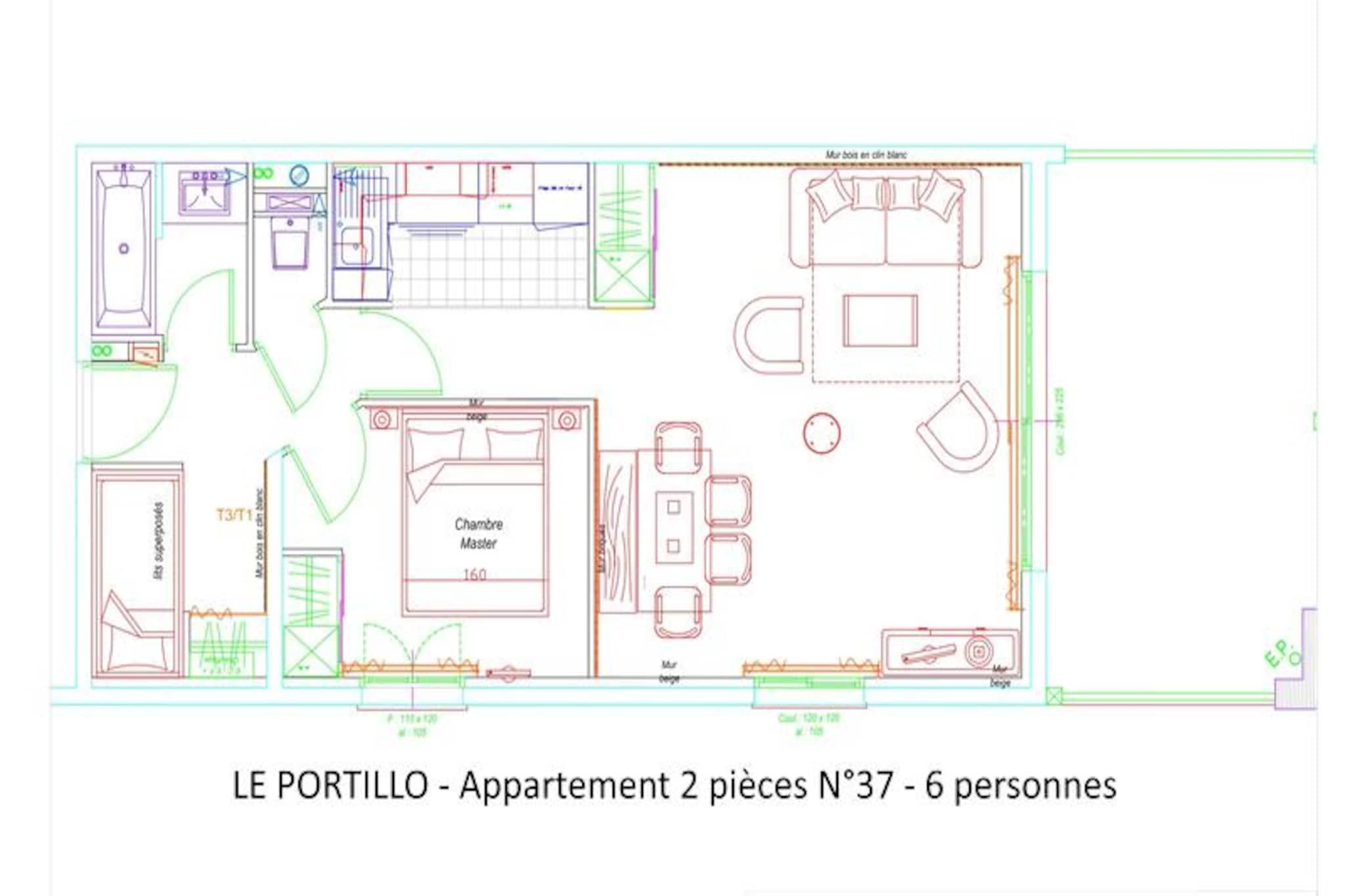 Ved indgangen til Pyrenæerne, hvor majestætiske tinder møder fredfyldte alpine stier, inviterer Le Portillo Residence dig til at opleve en harmonisk blanding af komfort og eventyr. Denne sydvendte lejlighed, beliggende på tredje sal, tilbyder en betagende udsigt over pisterne og direkte adgang til det pulserende hjerte af feriestedet på 16 Route du Col d'Aubisque. Uanset om du er her for vinterskiløb eller sommervandreture, er boligen perfekt beliggende kun 150 meter fra pisterne og 100 meter fra lokale butikker, hvilket sikrer bekvemmelighed i alle områder. \n\nIndenfor er den 49 m² store lejlighed omhyggeligt designet til op til seks gæster. Sovelkoven har hyggelige køjesenge, mens det største soveværelse har en queensize-seng og eget tv. Stuen med en dobbelt sovesofa og tv åbner ud til en terrasse, hvor du kan nyde bjergudsigten. Det åbne køkken er fuldt udstyret med moderne apparater, herunder keramisk kogeplade, ovn, mikrobølgeovn og opvaskemaskine, hvilket gør det nemt at tilberede måltider. Yderligere faciliteter såsom gratis Wi-Fi, sengelinned og et skirum med individuelle støvletørrere forbedrer dit ophold. \n\nLe Portillo Residence er mere end bare et sted at bo; det er et centrum for afslapning og rekreation. Dyk ned i den opvarmede indendørs swimmingpool, slap af i jacuzzien, eller lad børnene plaske i deres dedikerede pool. Fitnessentusiaster vil sætte pris på fitnesscentret, mens spillelokalet tilbyder sjov for alle aldre. Valgfrie tjenester som cykelopbevaring, overdækket parkering og måltidsplaner sikrer en skræddersyet oplevelse. \n\nMed rabatter på leje af skiudstyr og liftkort gennem det eksklusive SKIPLUS-tilbud bliver dine vintereventyr endnu mere tilgængelige. Uanset om du udforsker pisterne eller opdager Pyrenæernes skønhed, lover Le Portillo Residence en uforglemmelig alpin flugt.
