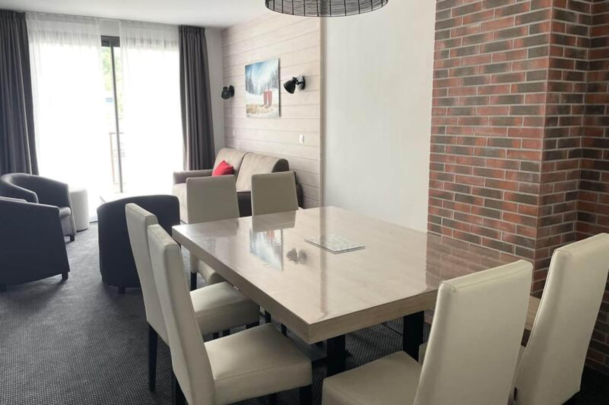 Ved porten til de majestætiske Pyrenæer tilbyder dette indbydende bjergparadis en blanding af komfort og bekvemmelighed, perfekt egnet til både vinter- og sommerferier. Beliggende på Route du Col d'Aubisque 16, ligger ejendommen kun 150 meter fra pisterne, 100 meter fra lokale butikker og få skridt fra naturskønne vandrestier, hvilket gør den til en ideel base for at udforske regionens betagende naturlige skønhed. Uanset om du søger snefyldte eventyr eller rolige sommervandreture, placerer denne ejendom dig i hjertet af det hele. \n\nIndenfor kan ejendommen prale af en række faciliteter designet til at forbedre dit ophold. Slap af i den opvarmede indendørs swimmingpool, slap af i jacuzzien, eller lad de små plaske i børnebassinet. Fitnessentusiaster vil sætte pris på fitnesscentret, mens spillelokalet tilbyder underholdning for alle aldre. Skirummet med individuelle støvletørrere sikrer, at dit udstyr er klar til næste dags eventyr, og gratis Wi-Fi holder dig forbundet under hele dit ophold. Den rummelige lejlighed på 66 m² har plads til op til otte gæster og har en sydvestvendt terrasse med en fantastisk udsigt over bjergene og feriestedet. Den gennemtænkte planløsning inkluderer en sovealkove med køjesenge, en hyggelig stue med en dobbeltsovesofa og et soveværelse med et luksuriøst badeværelse med bruser. \n\nUd over ejendommen tilbyder regionen uendelige muligheder for udendørsaktiviteter. Om vinteren kan du drage fordel af ski-in/ski-out-adgang og rabatter på leje af udstyr og liftkort. Sommeren byder på livlige stier, cykelruter og Pyrenæernes fredfyldte skønhed. Med yderligere tjenester såsom måltidspakker, vaskeri og overdækket parkering sikrer denne bolig en problemfri og mindeværdig ferieoplevelse. Uanset om du er her for at stå på ski, vandre eller blot slappe af, er dette bjergferiested din port til uforglemmelige øjeblikke.